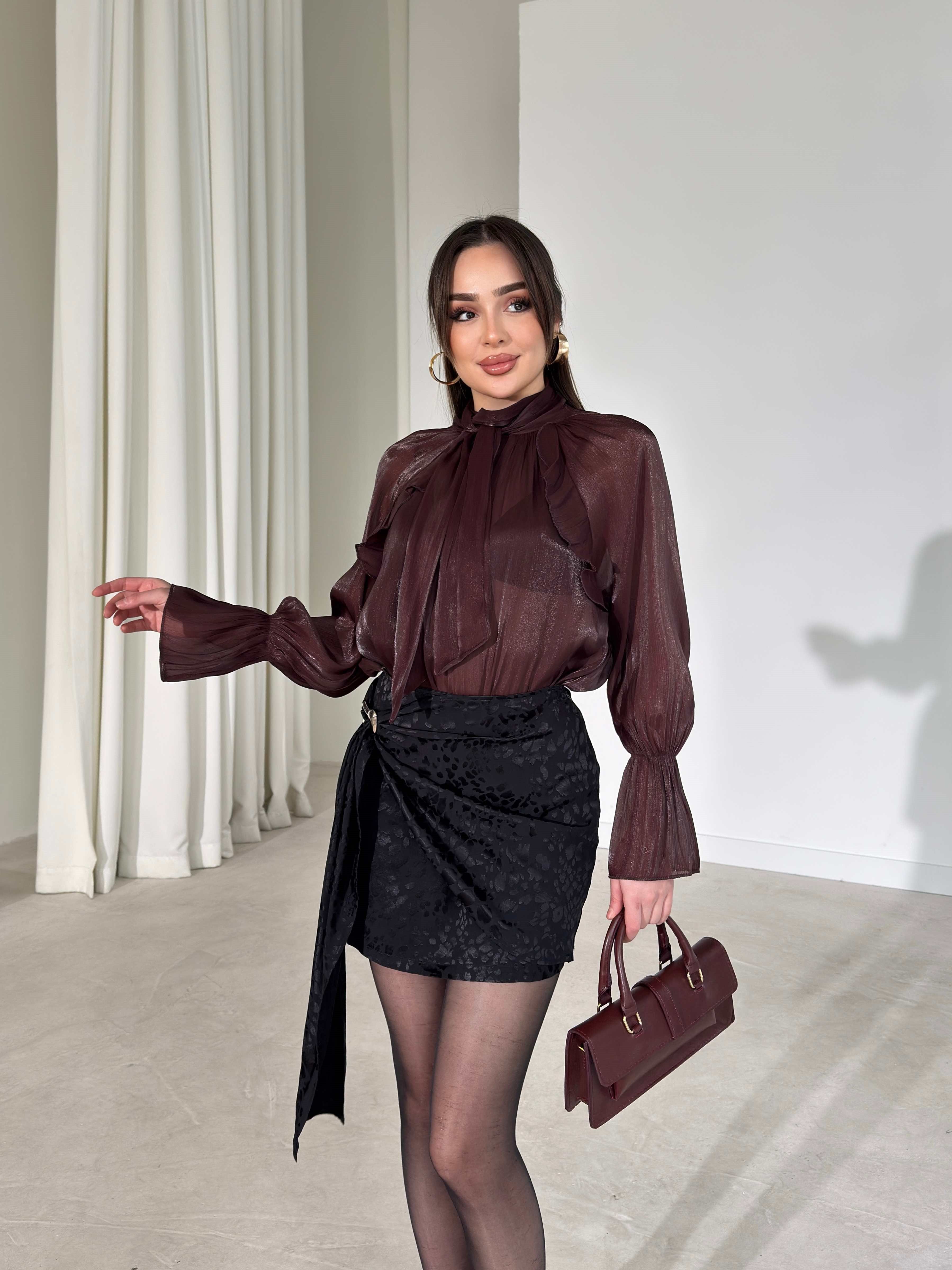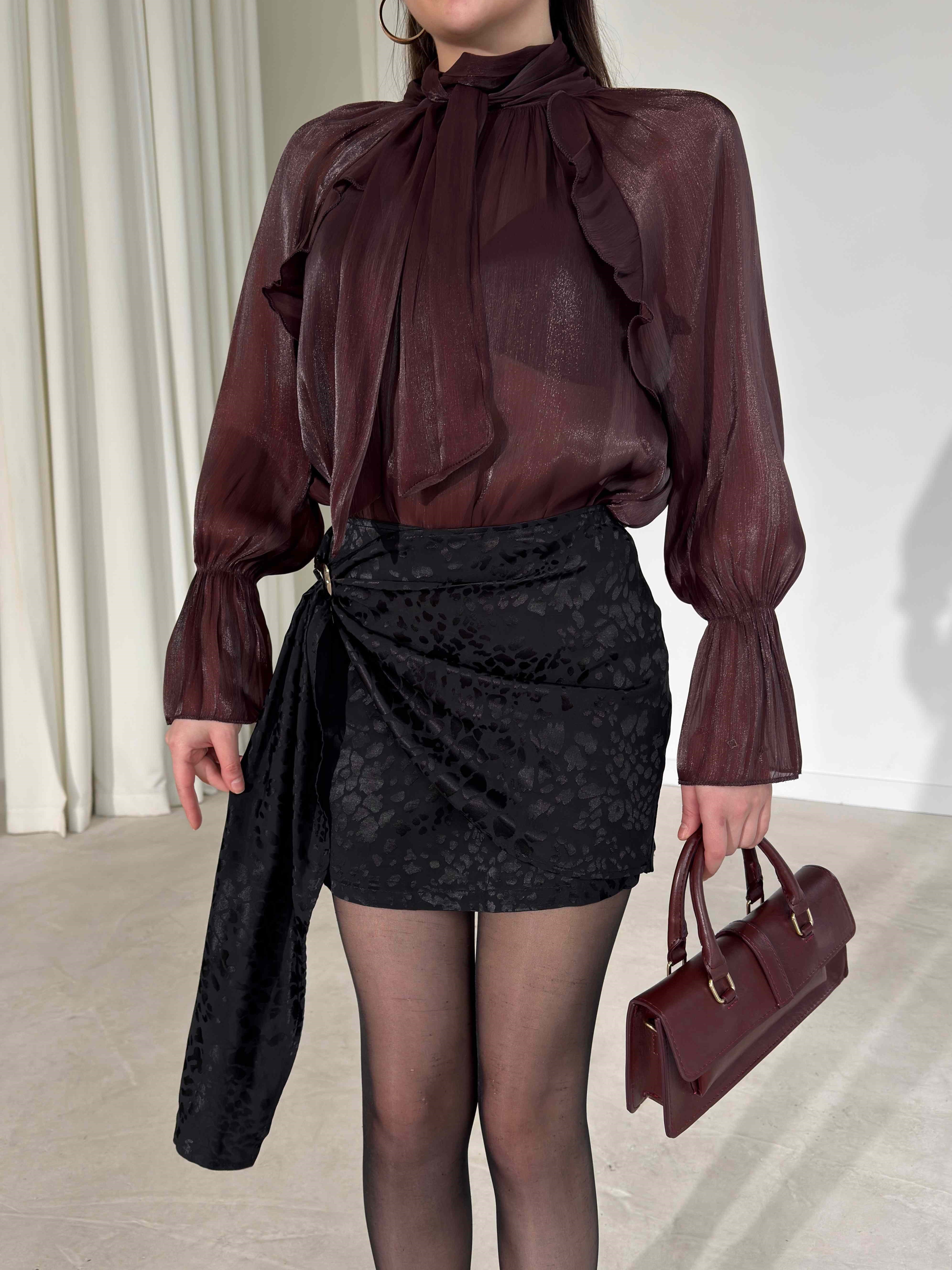 Aksesuar Detaylı Saten Mini Füme Talya Kadın Etek 26Y157 Aksesuar Detaylı Saten Mini Bordo Talya Kadın Etek 26Y157