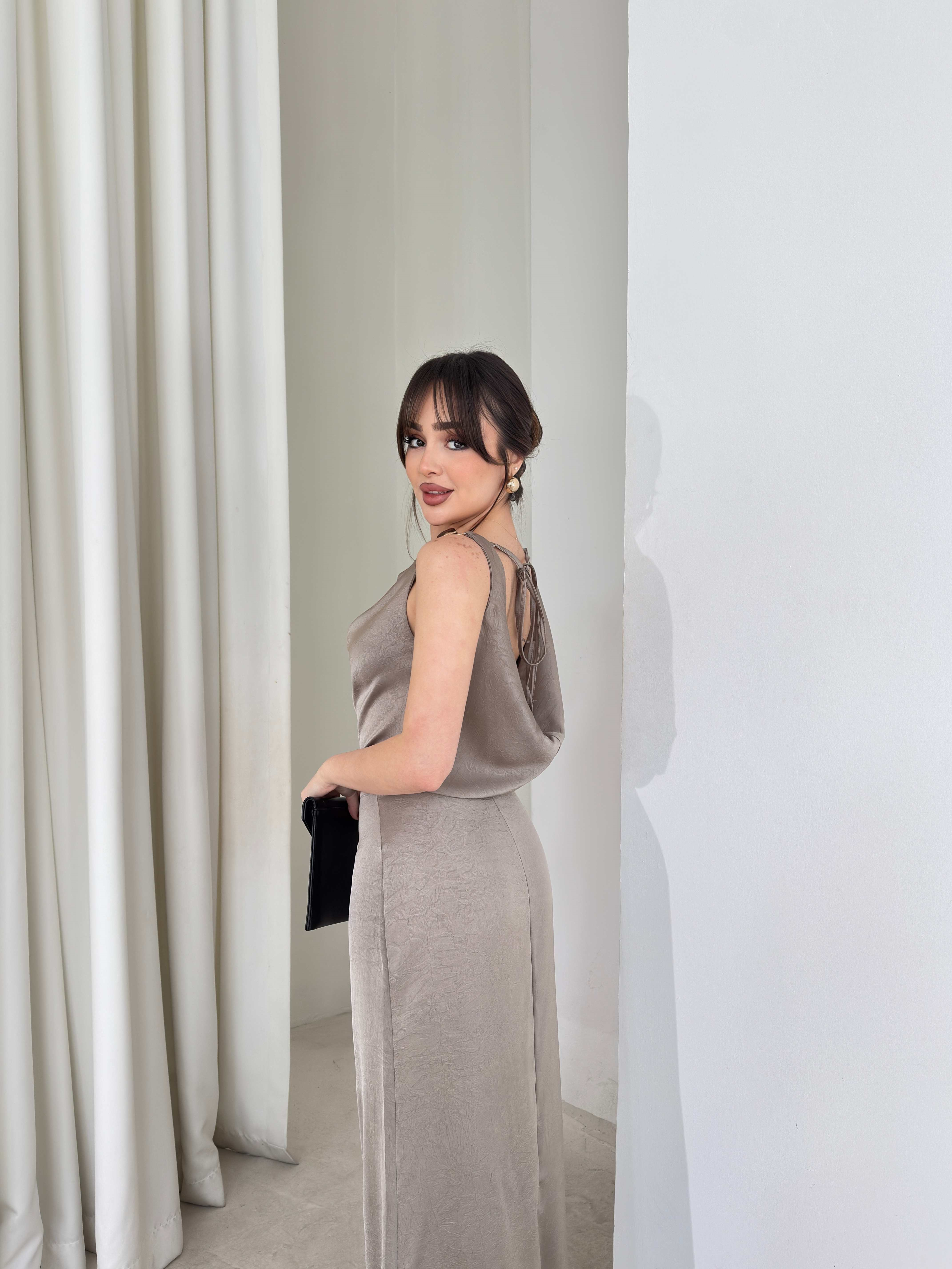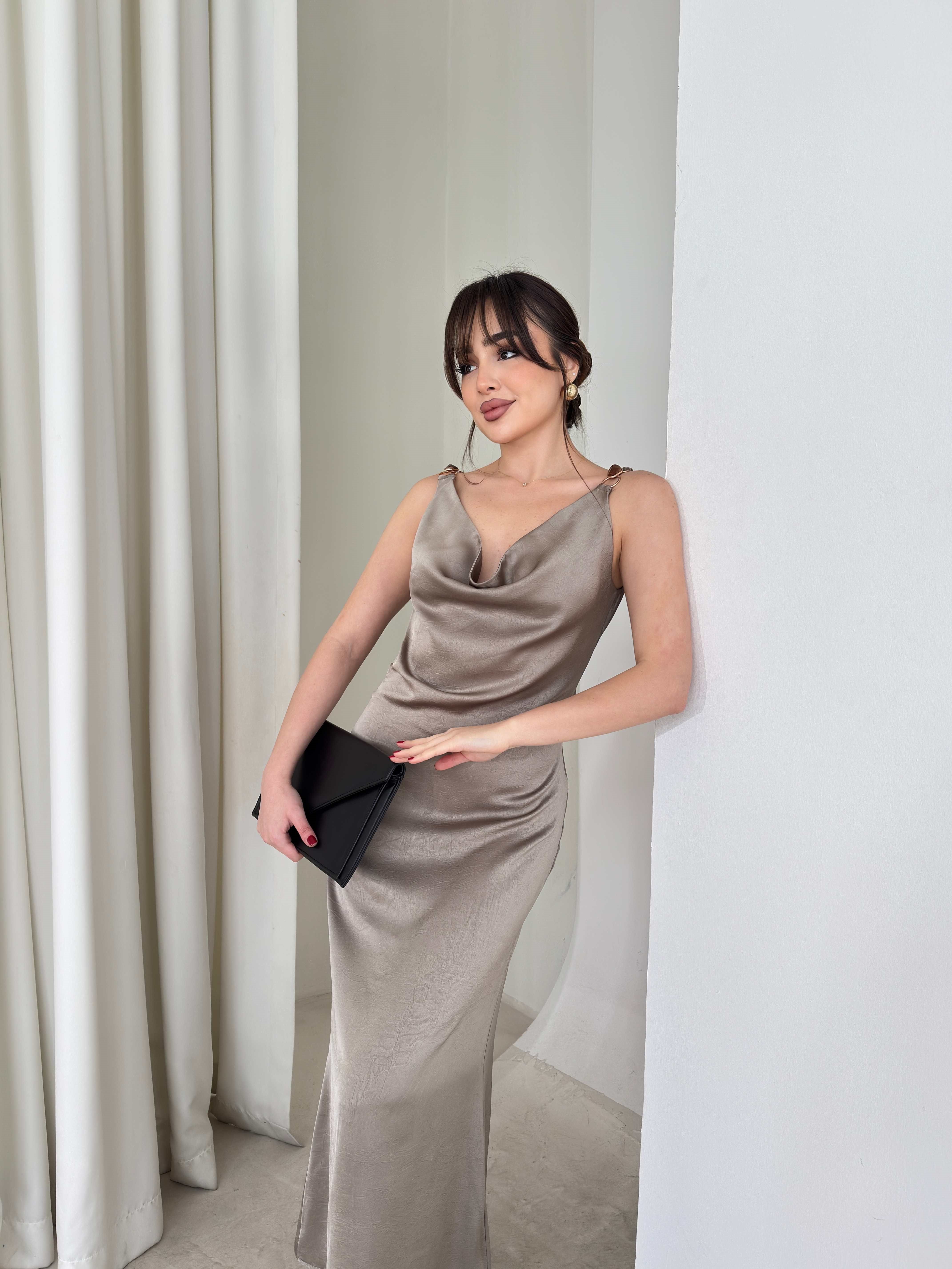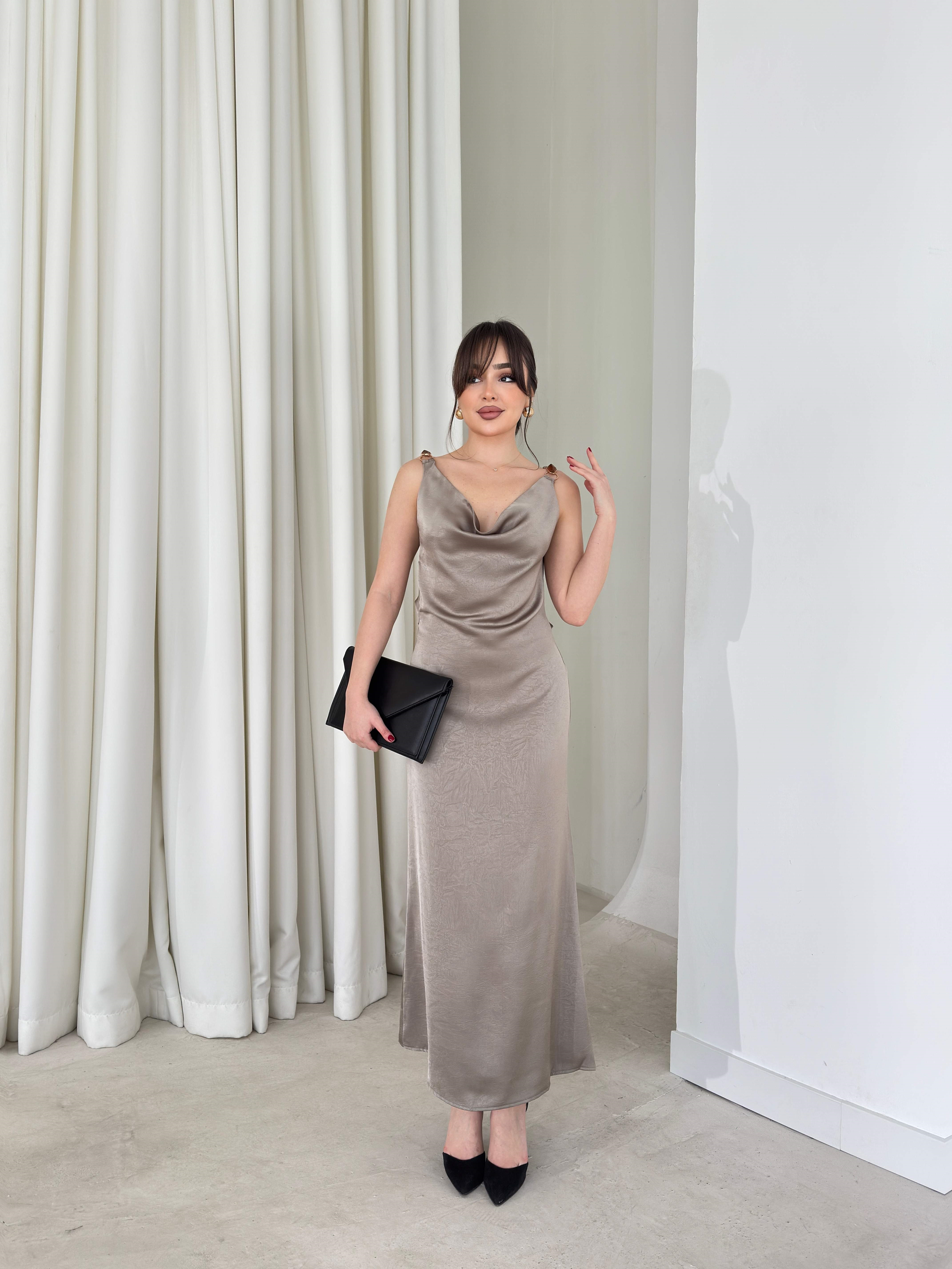 Aksesuar Detaylı Sırtı İp Ve Degaje Detaylı Haki Midi Fabiola Kadın Elbise 26Y135 (26Y135)