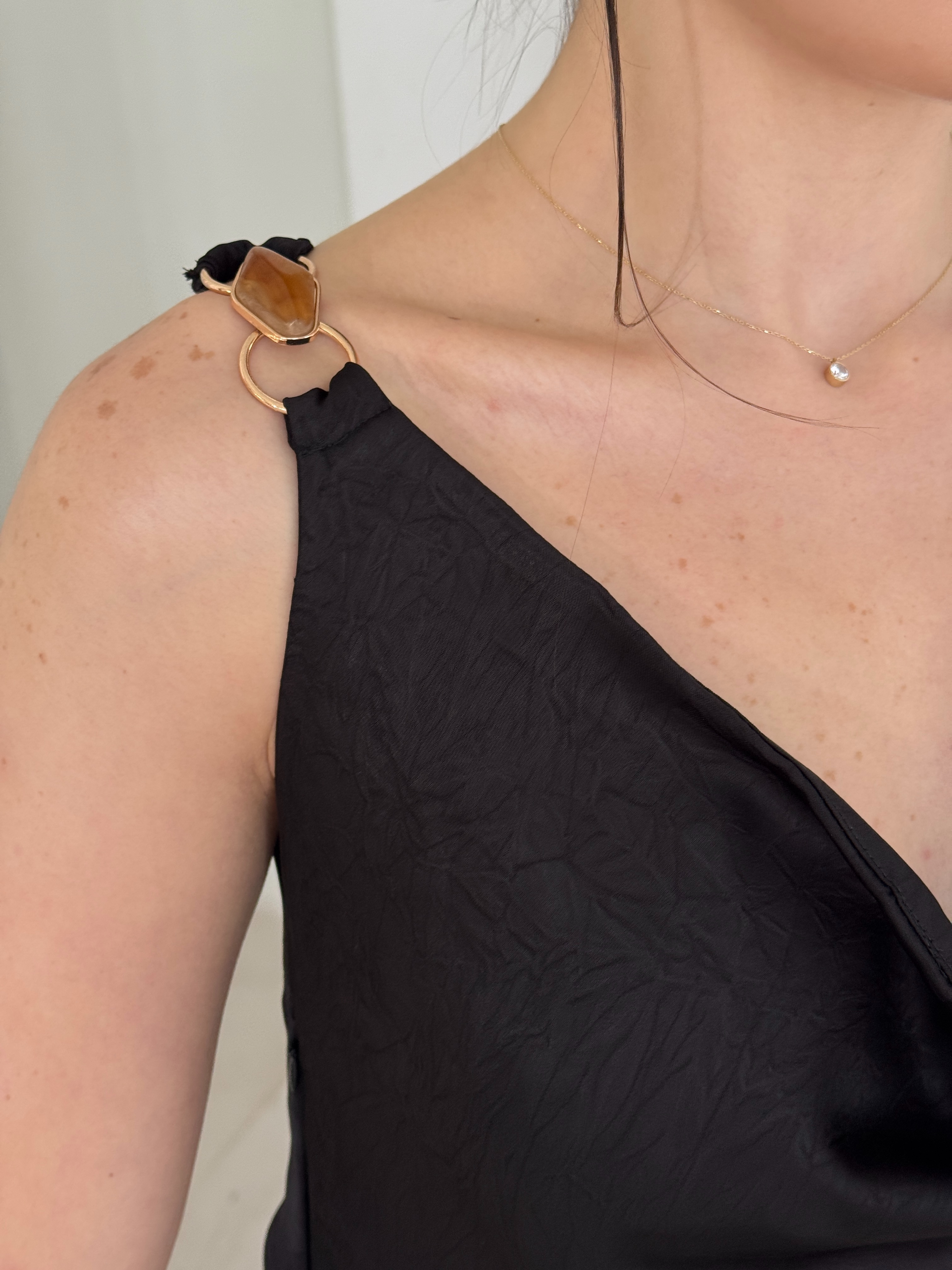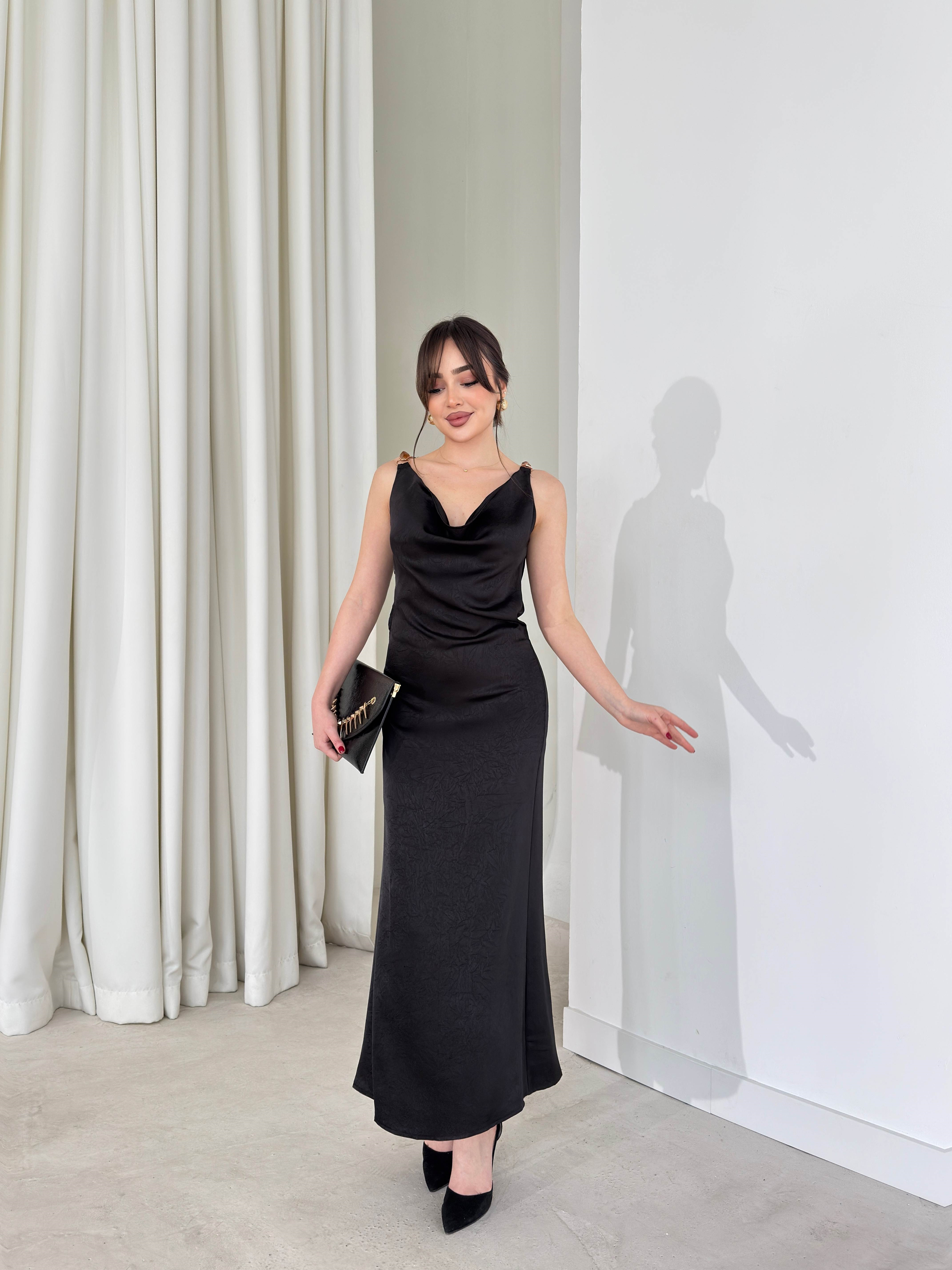 Aksesuar Detaylı Sırtı İp Ve Degaje Detaylı Siyah Midi Fabiola Kadın Elbise 26Y135 (26Y135)