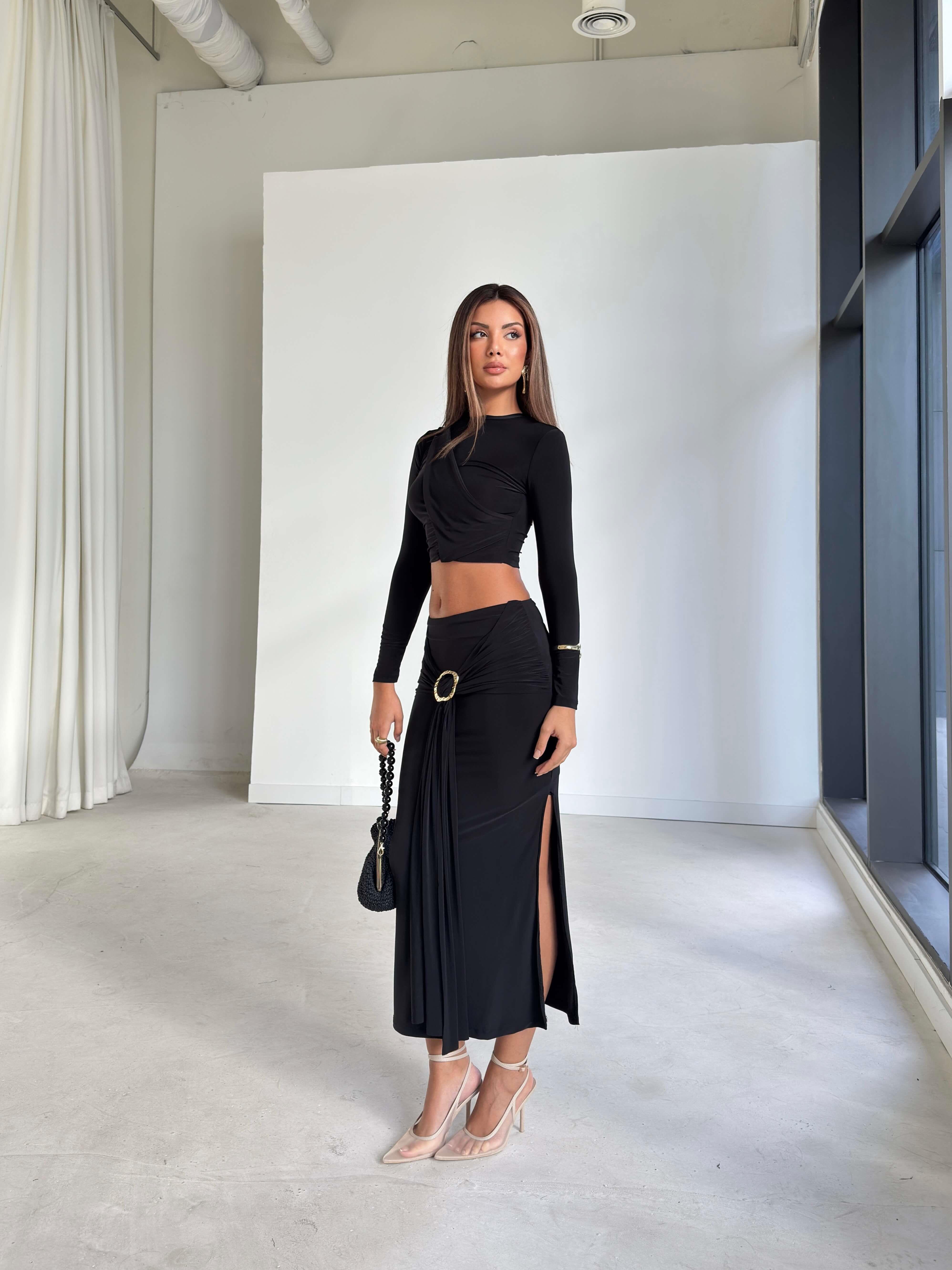 Aksesuarlı Eteği Yırtmaçlı Sendi Siyah Kadın İkili Takım 26K117 (26K117)