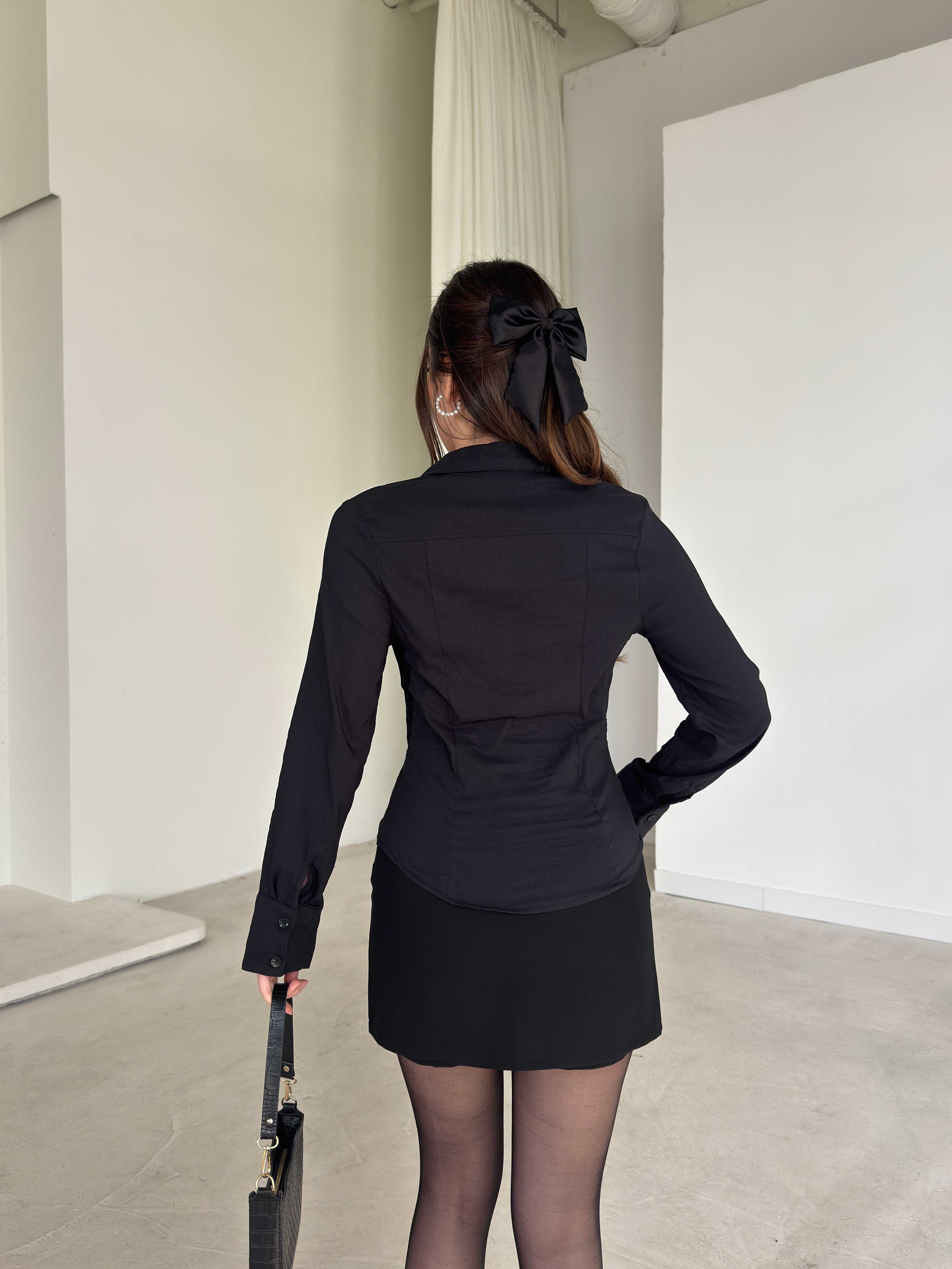 Belden Oturtmalı Benglin Siyah Kadın Gömlek 26Y060 (26Y060)