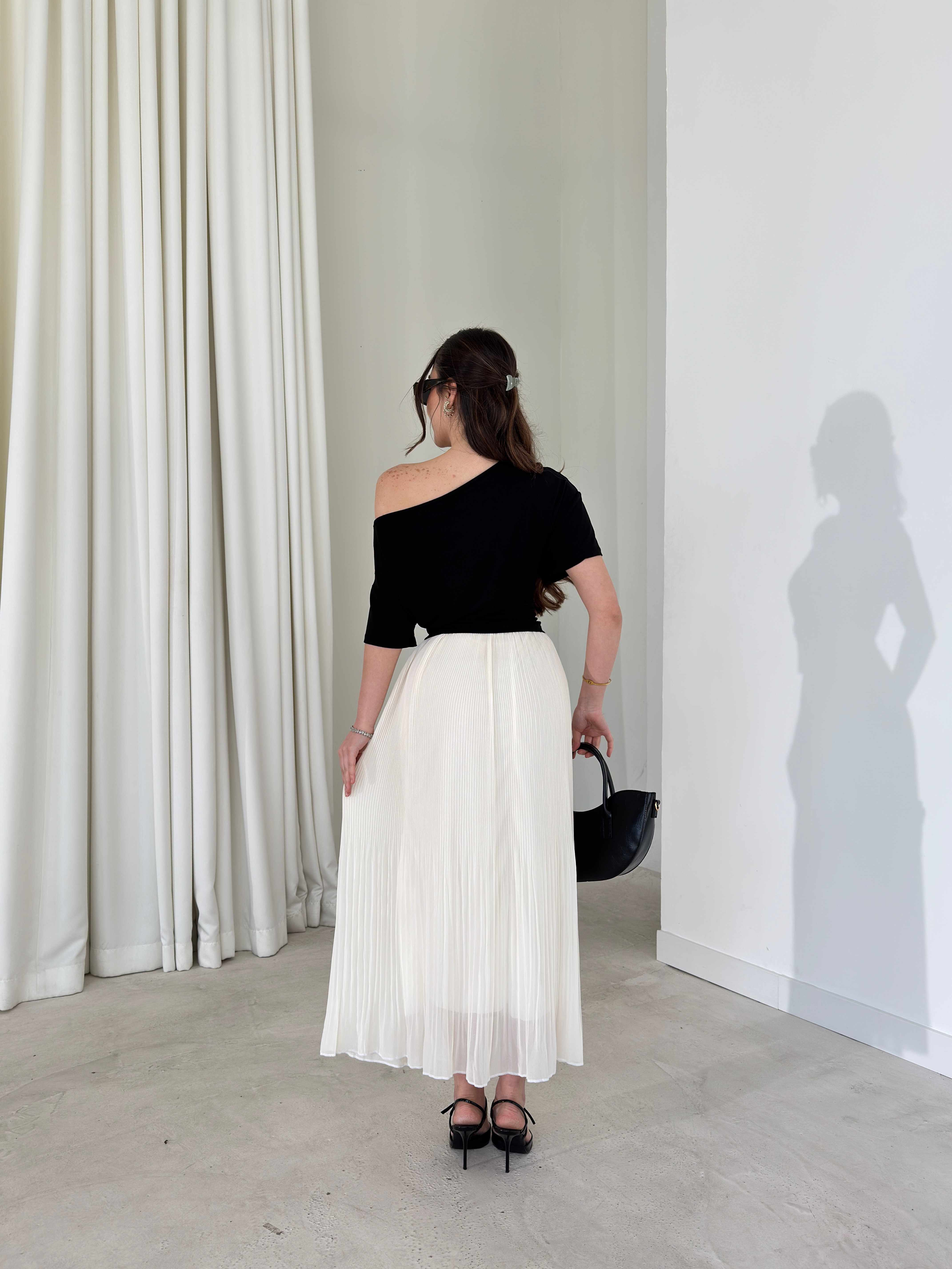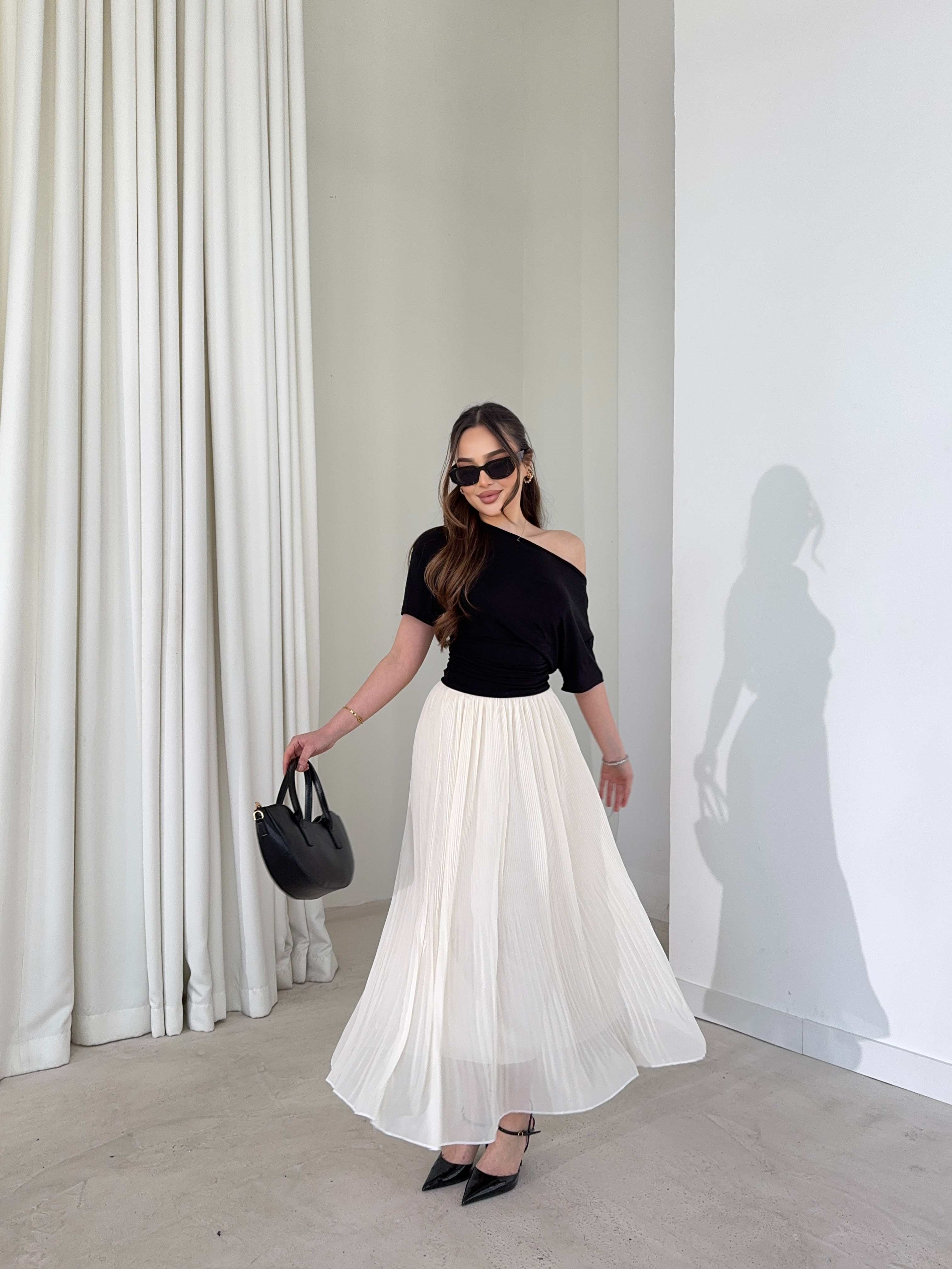 Beli Lastikli Şifon Pileli Larn Siyah Kadın Etek 26Y087 Beli Lastikli Şifon Pileli Larn Kahve Kadın Etek 26Y087