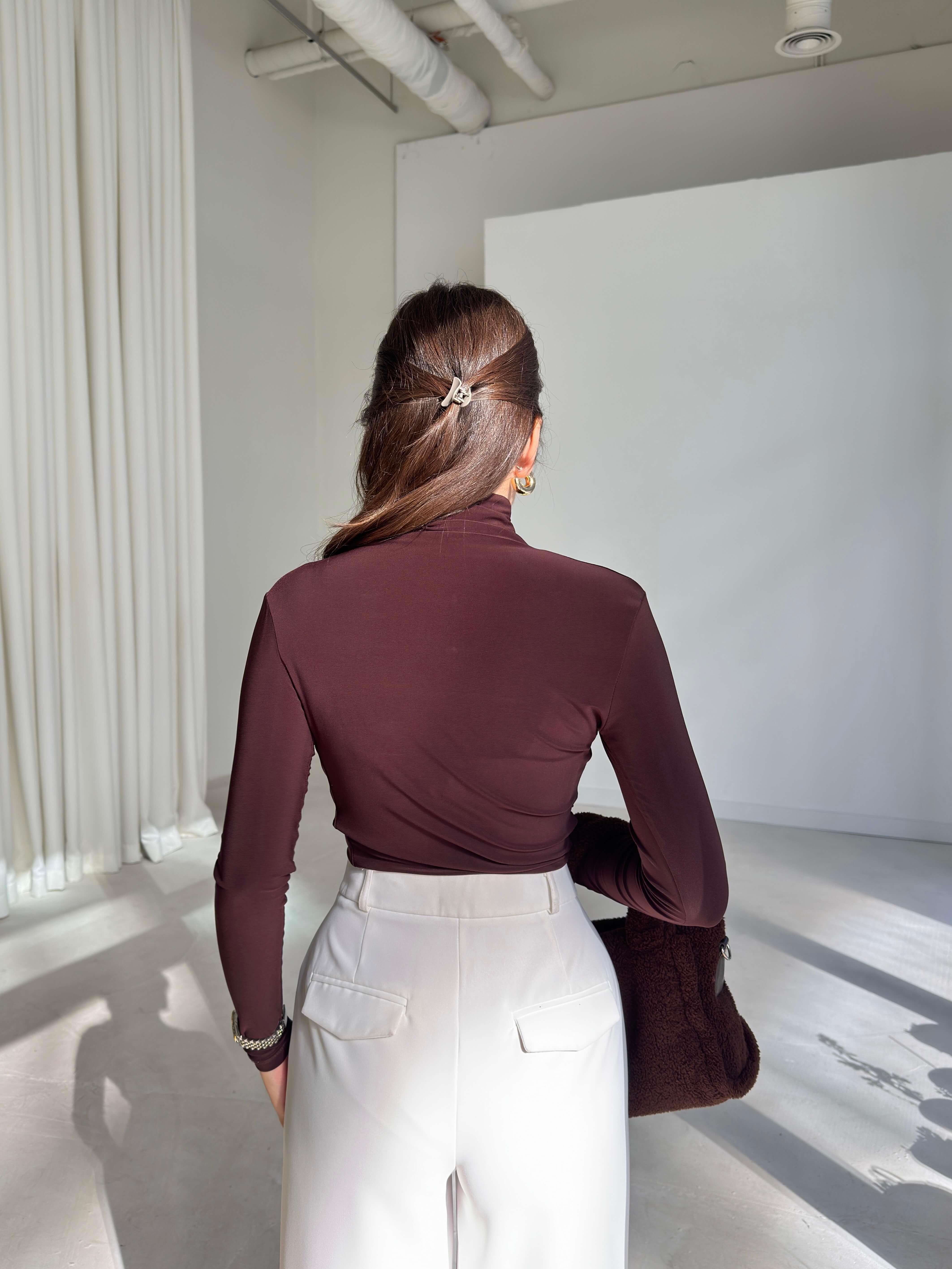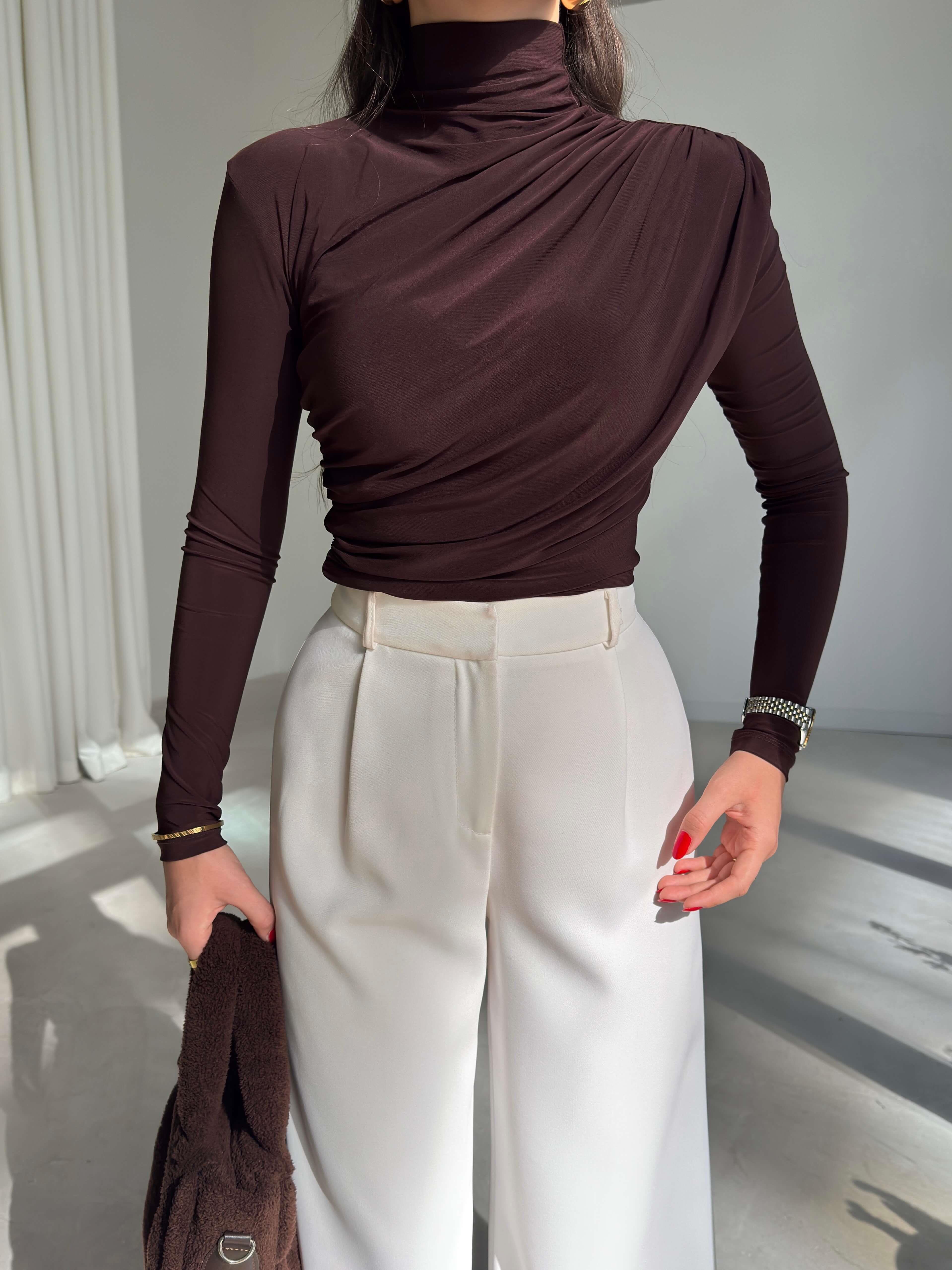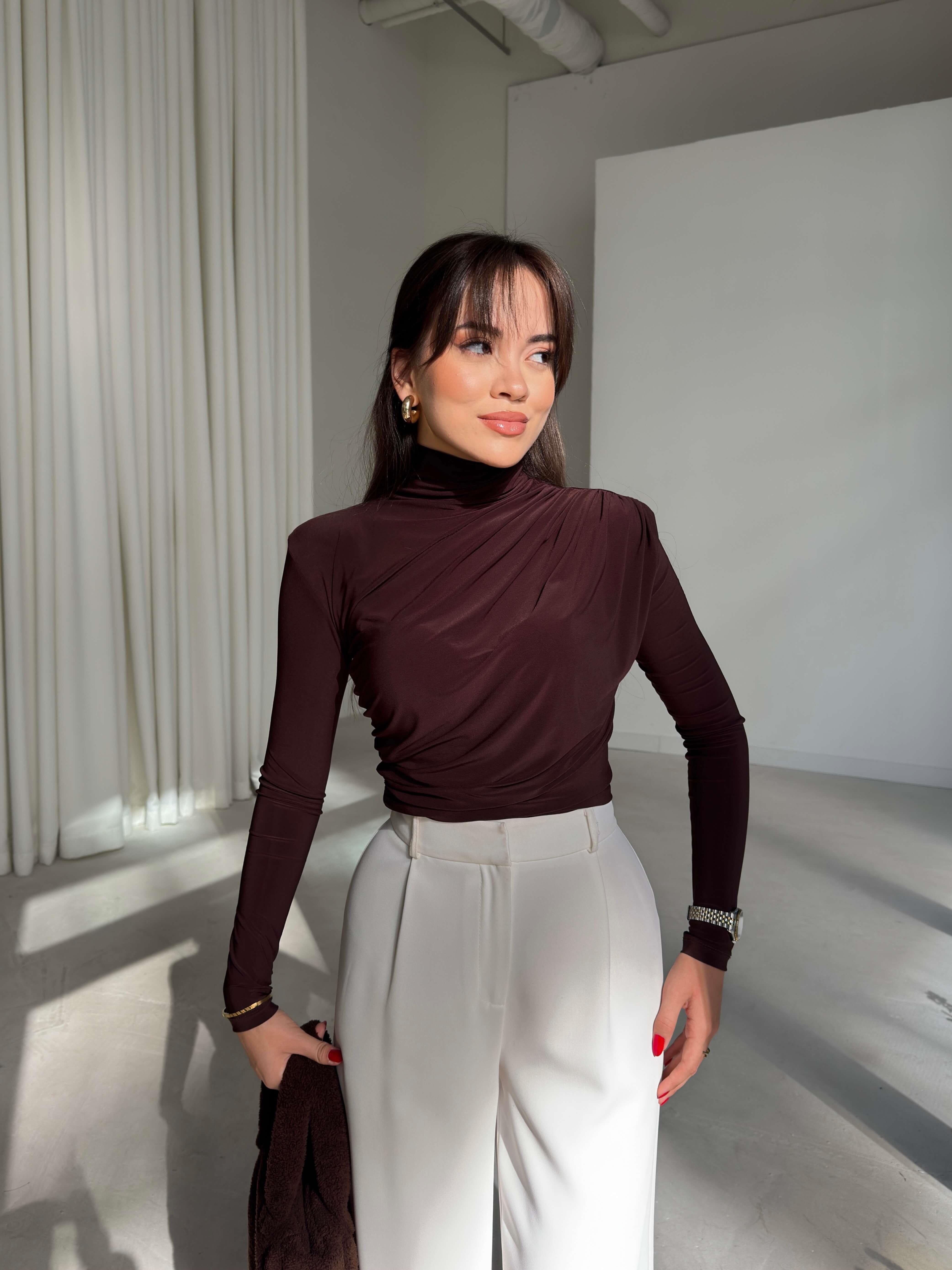 Boğazlı Yanı Drape Detaylı Belmade Kahve Kadın Bluz 26K113 (26K113)