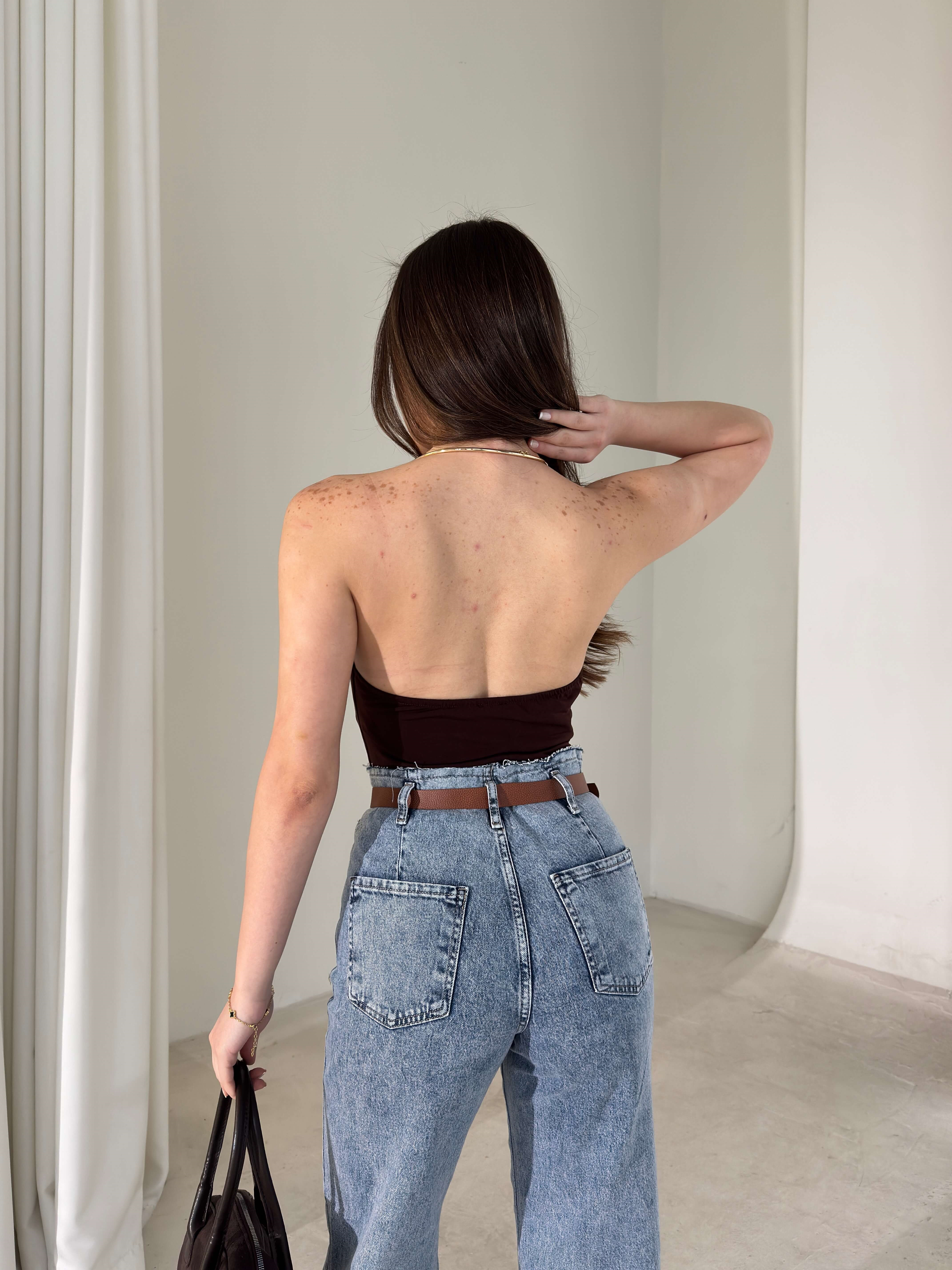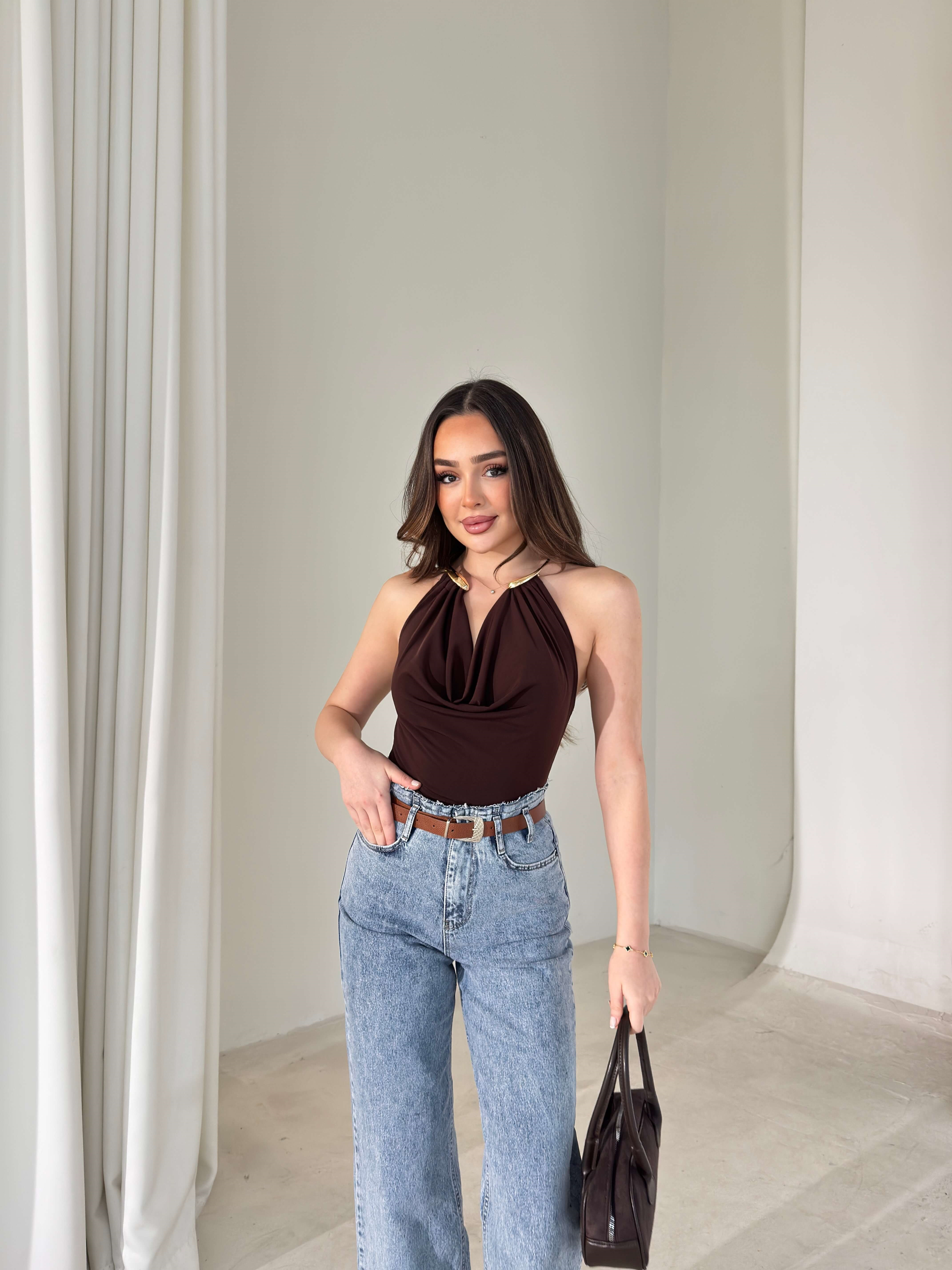 Boyundan Aksesuarlı Degaje Yaka Eolen Kahve Kadın Bodysuit 26Y018 (26Y018)