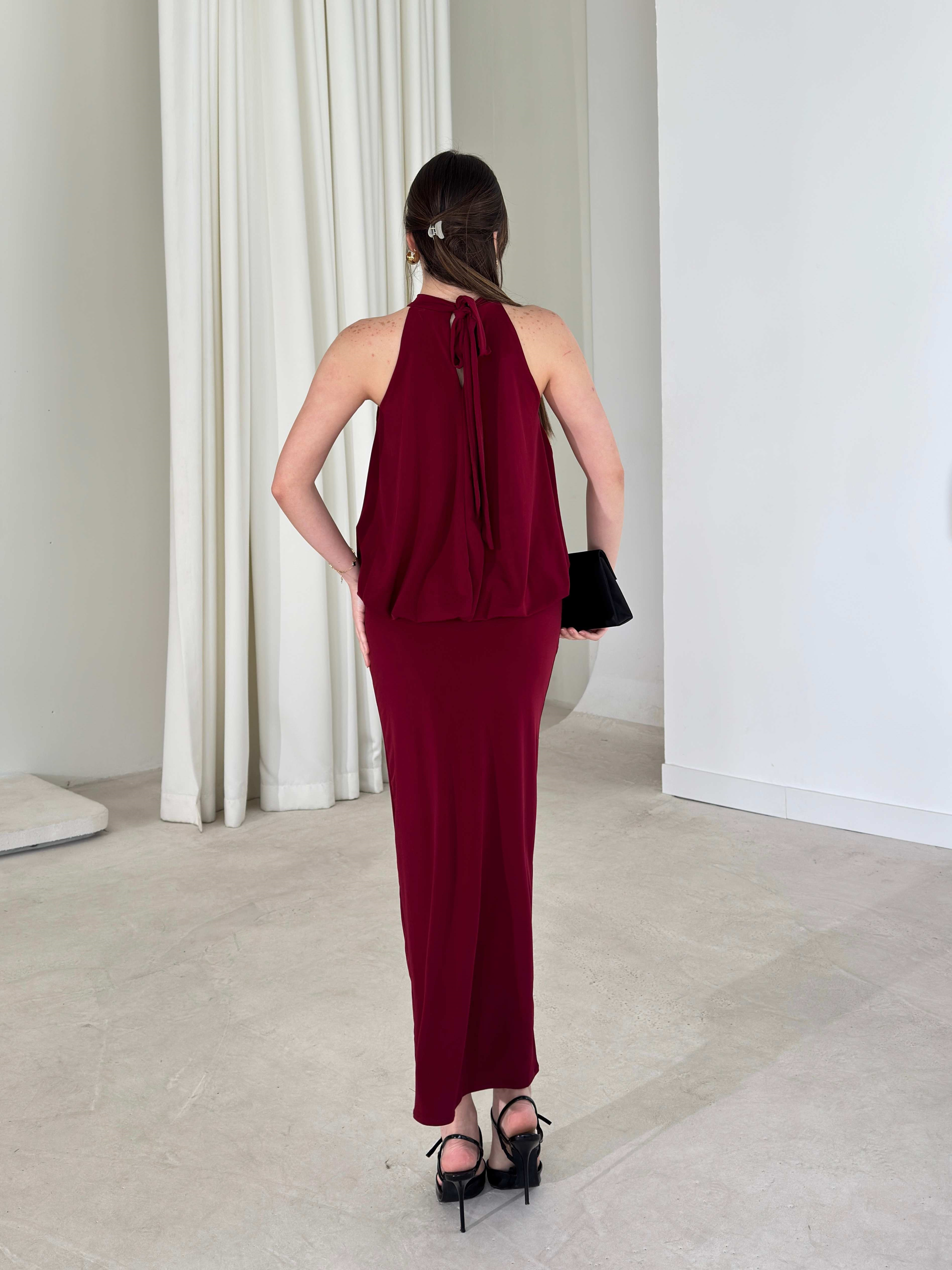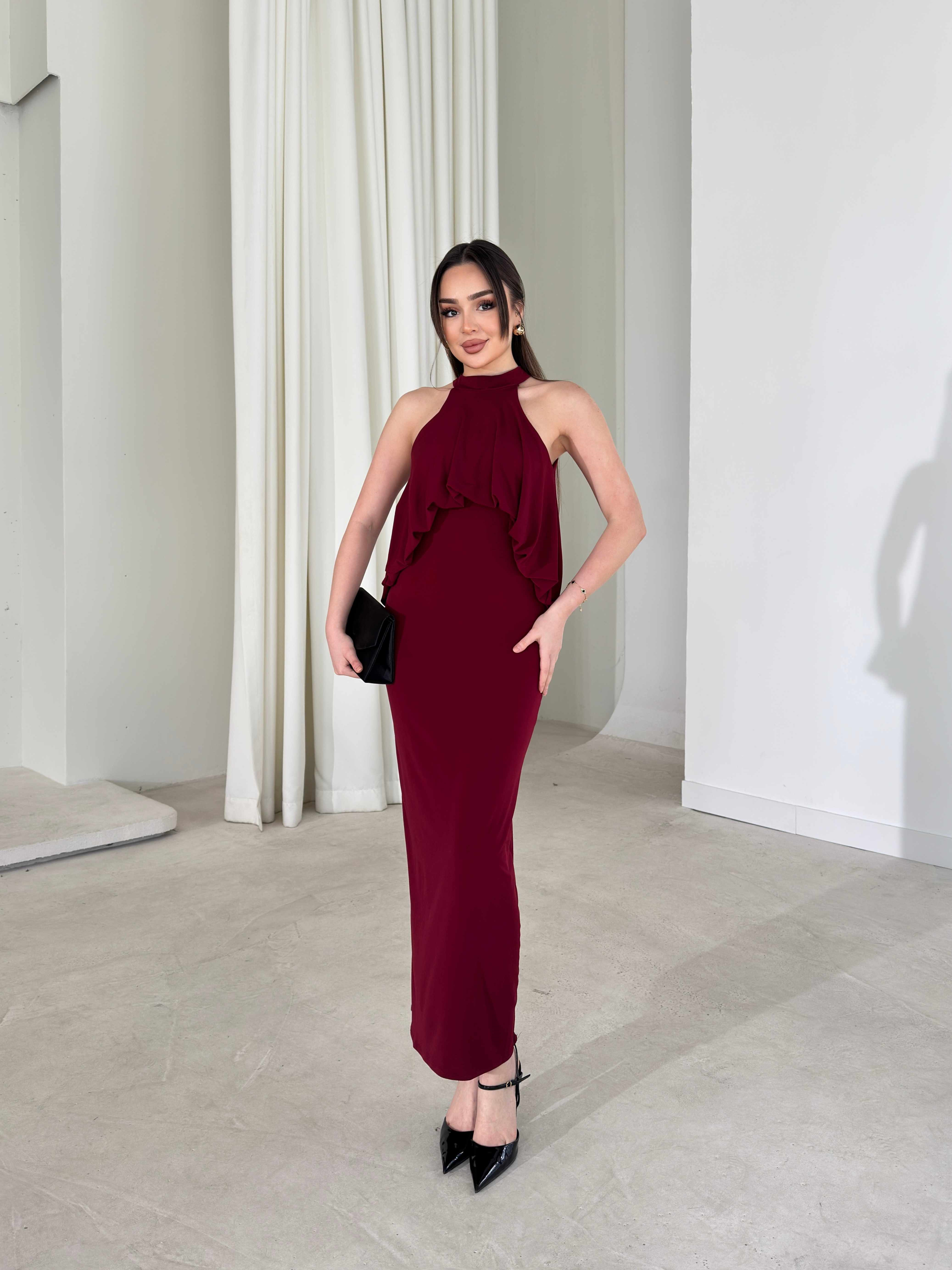 Boyundan Bağlamalı Belden Oturtmalı Maxi Bordo Amari Kadın Elbise 26Y164 (26Y164)