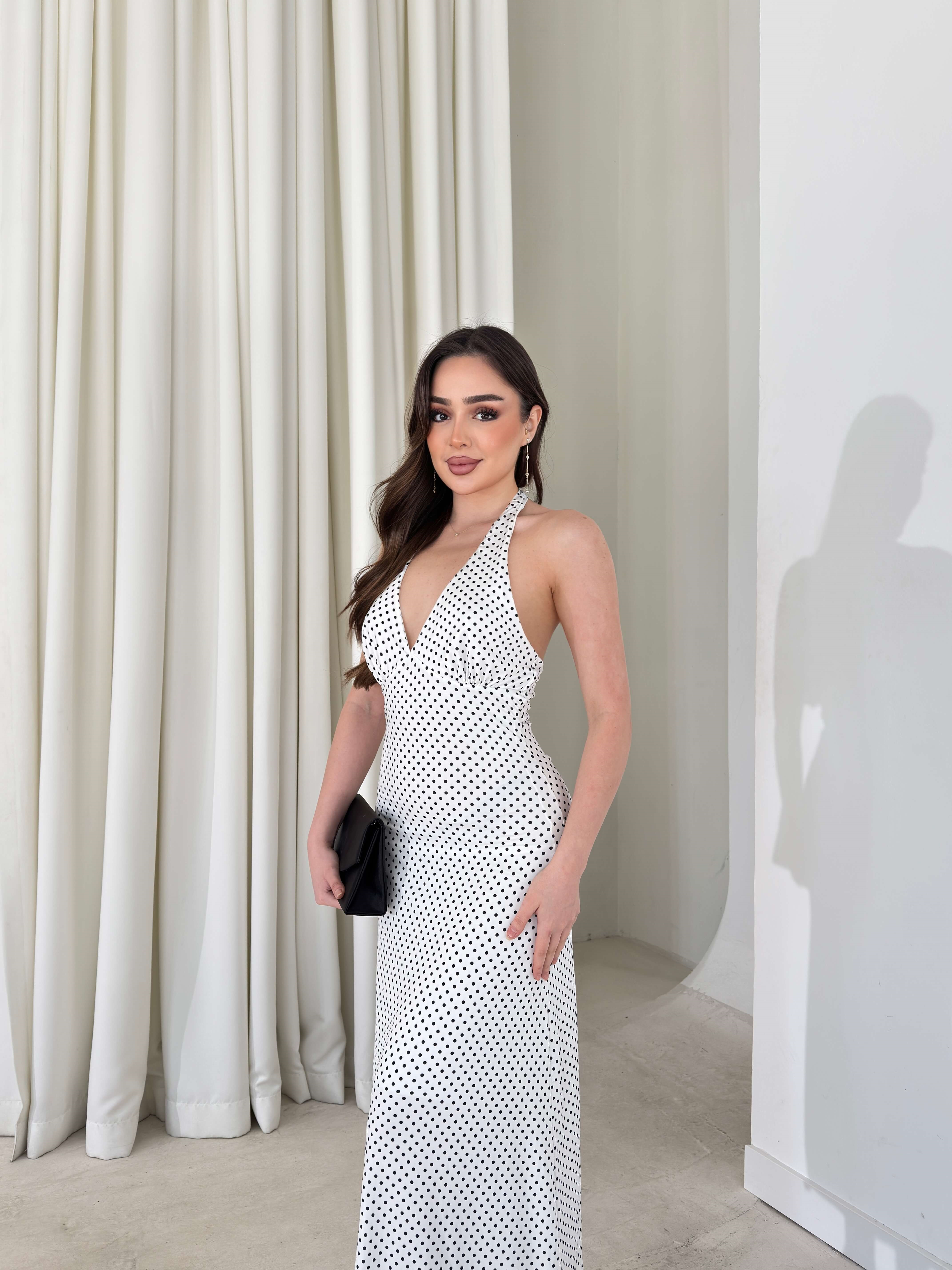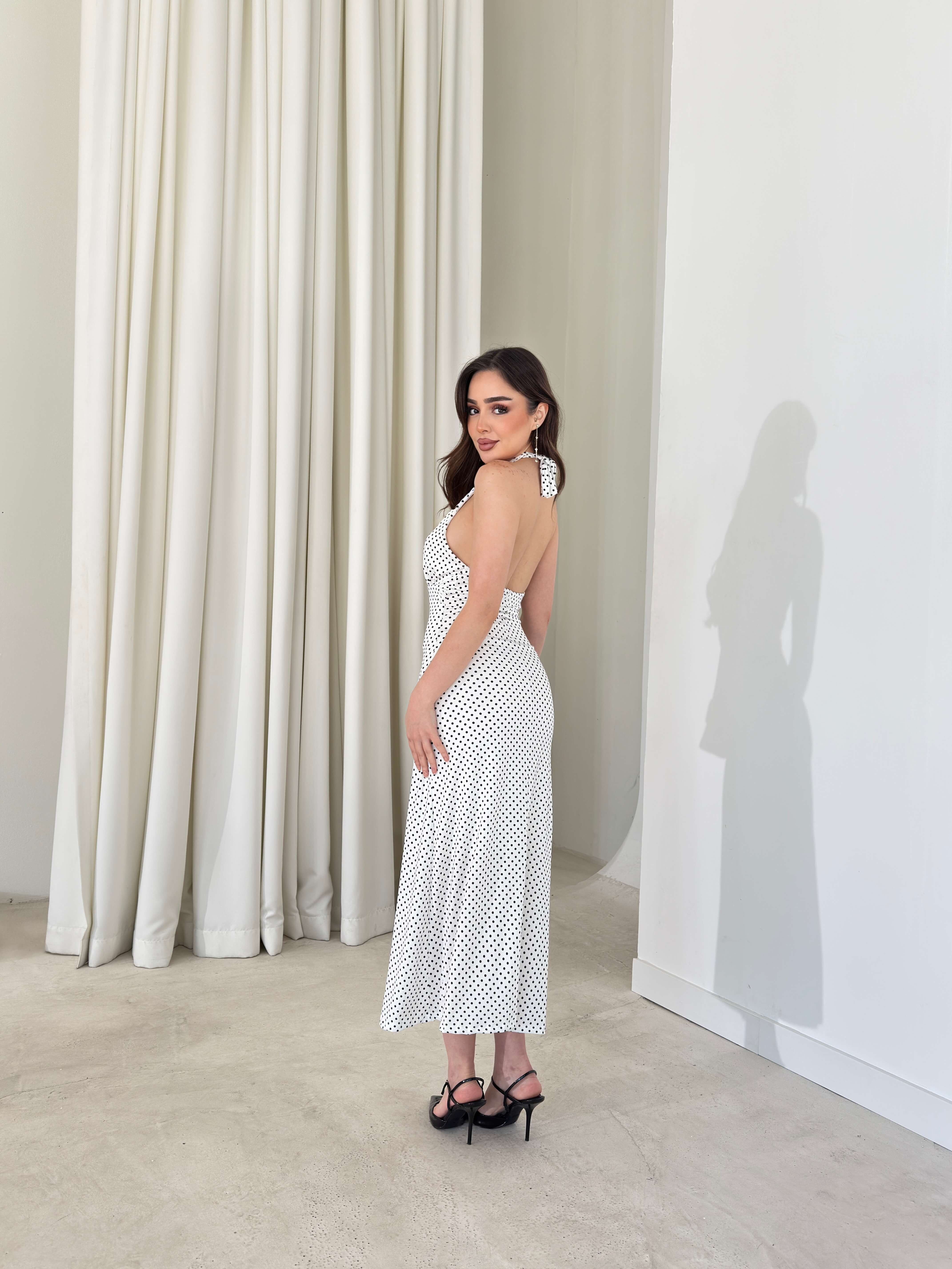 Boyundan Bağlamalı Puantiyeli V Yaka Annalise Ekru Kadın Elbise 26Y147 (26Y147)