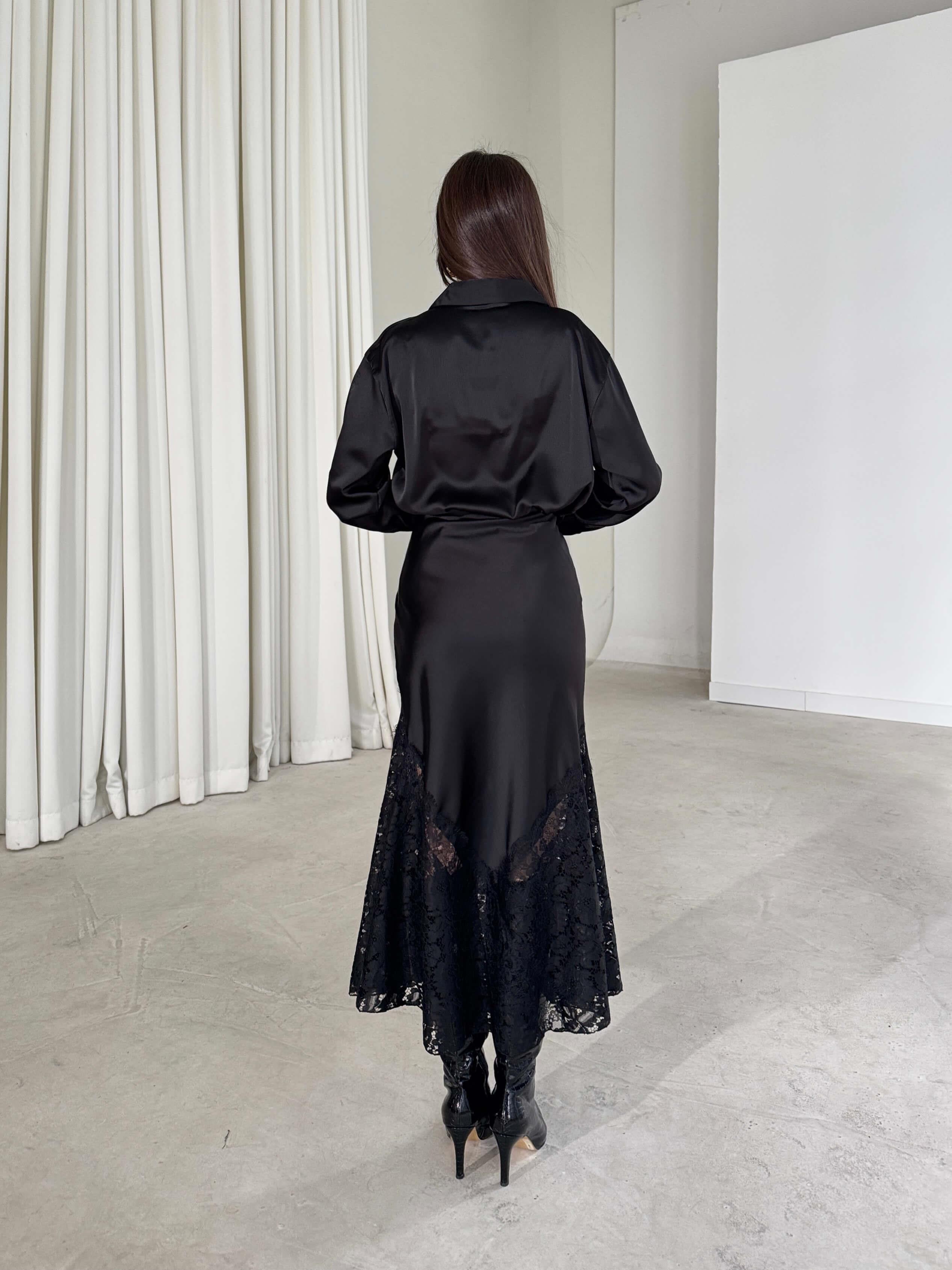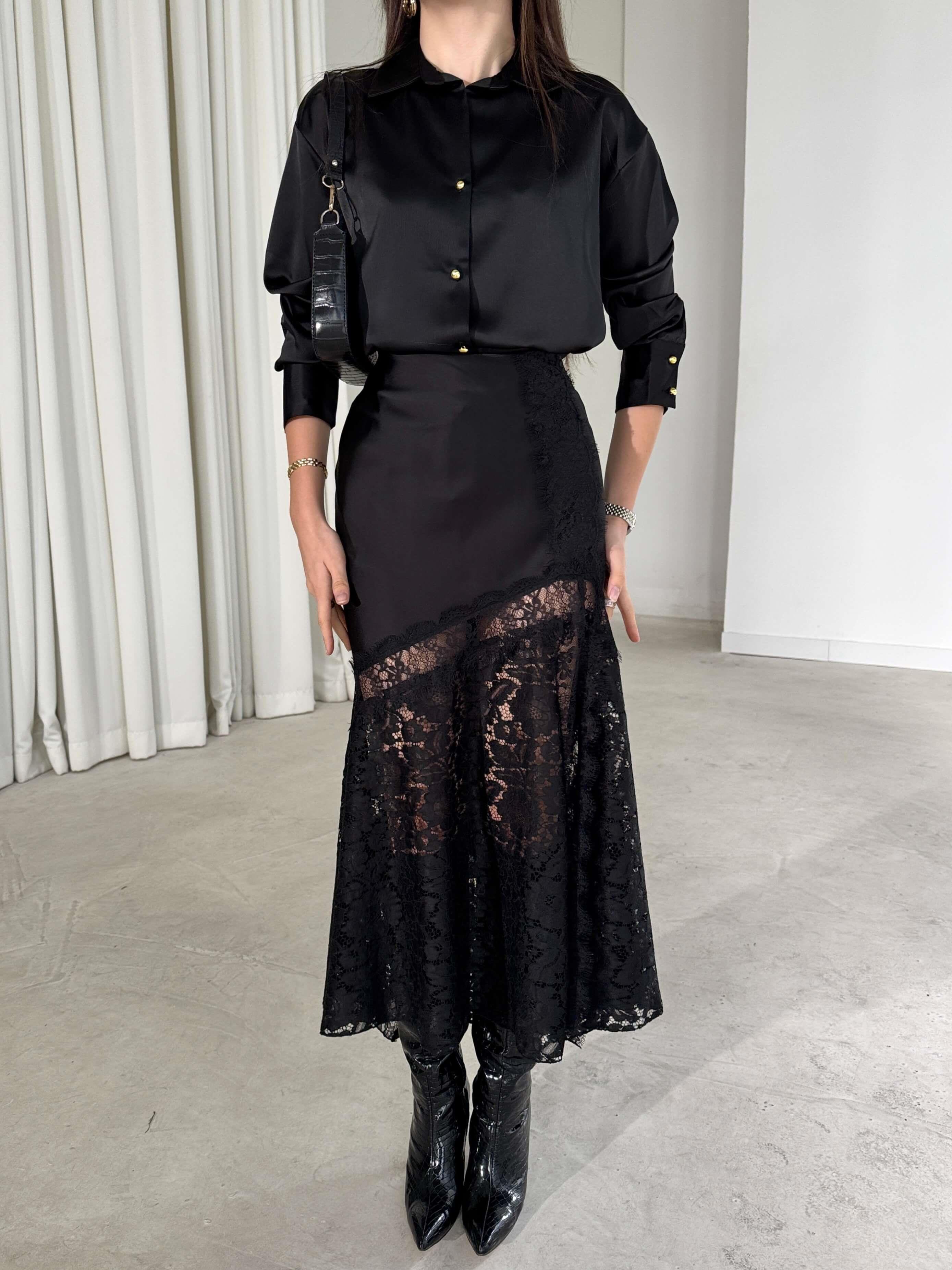 Dantelli Saten Yüksek Bel Dıanlı Siyah Kadın Etek 26K386 (26K386)