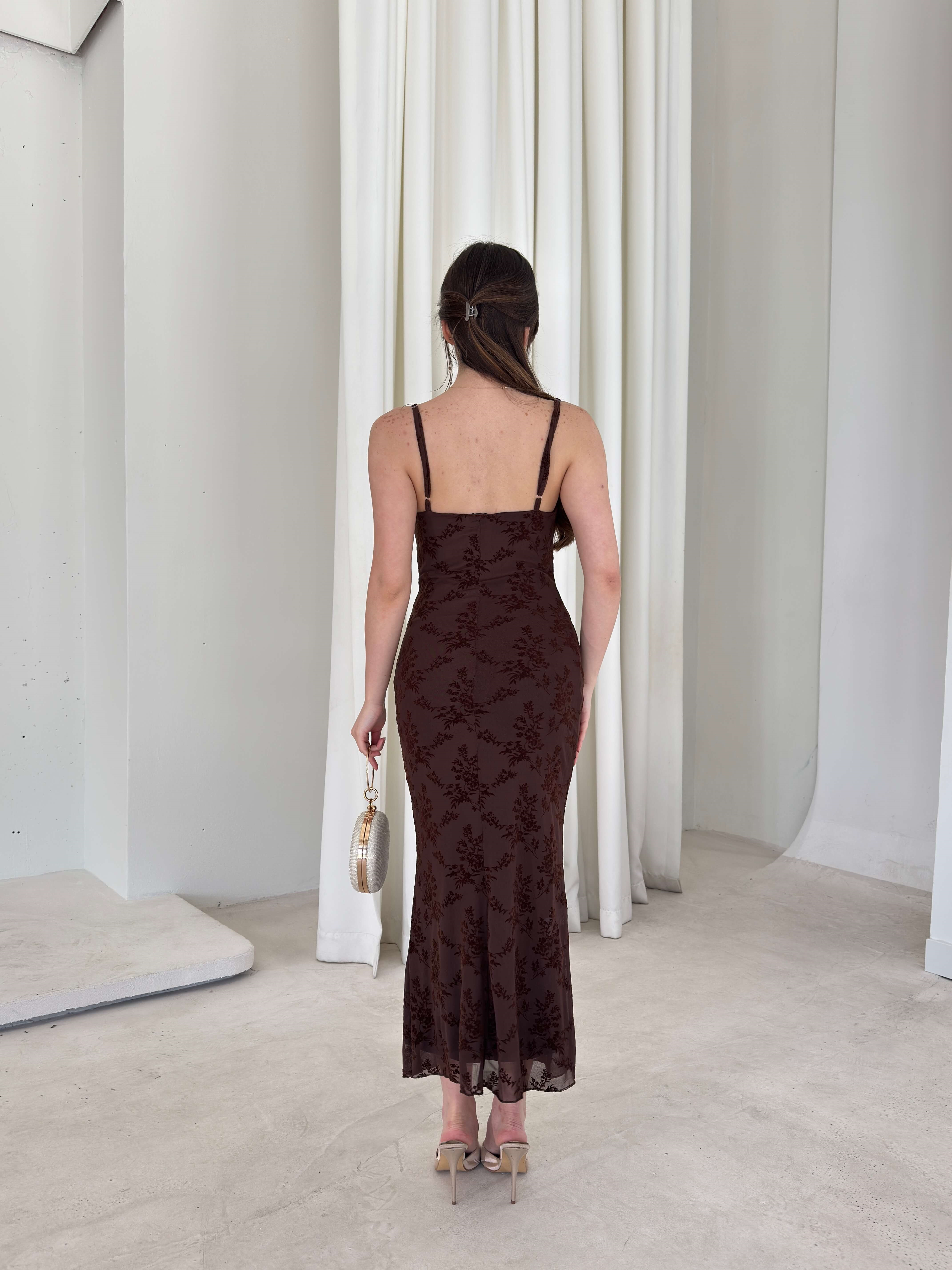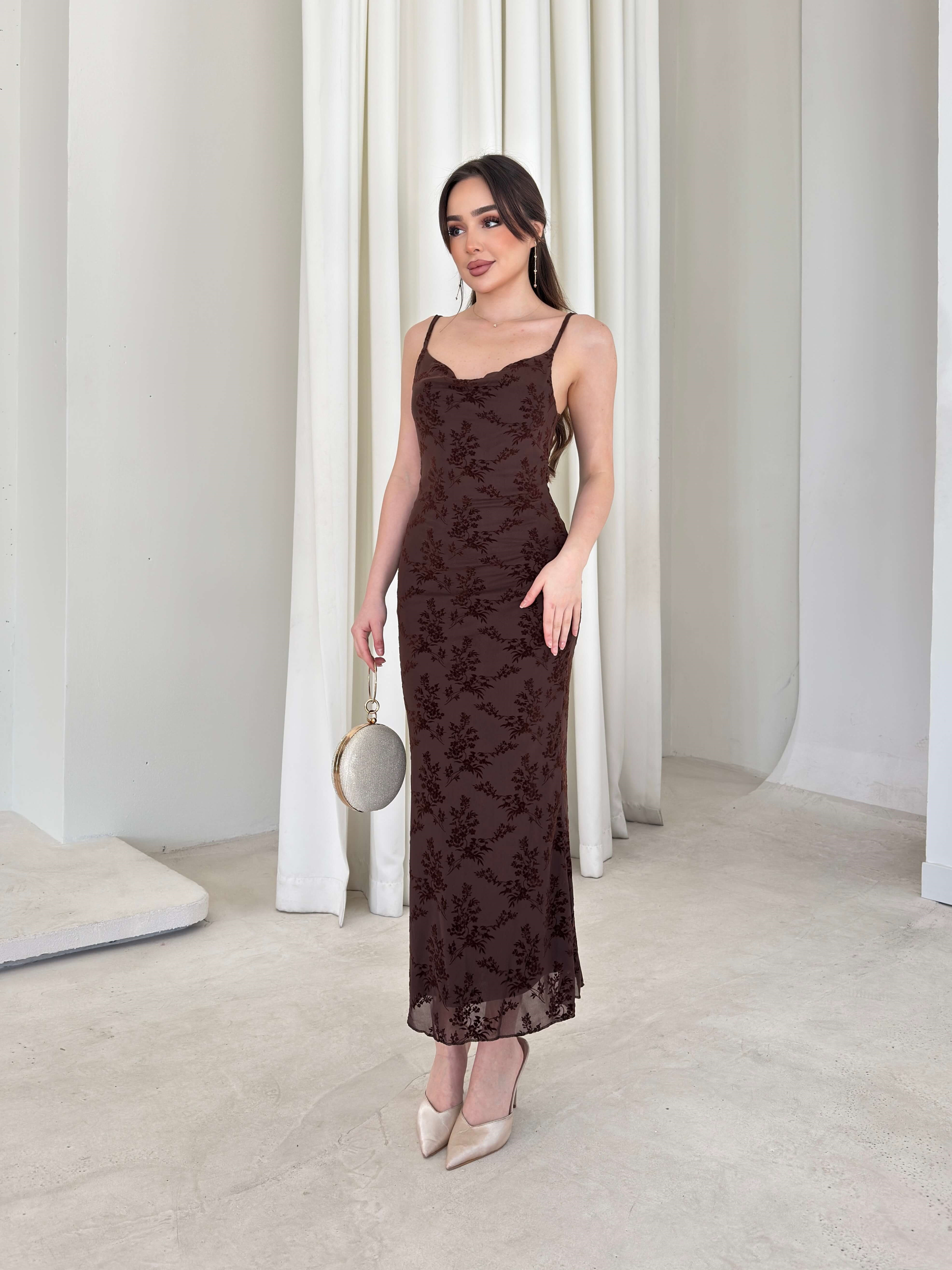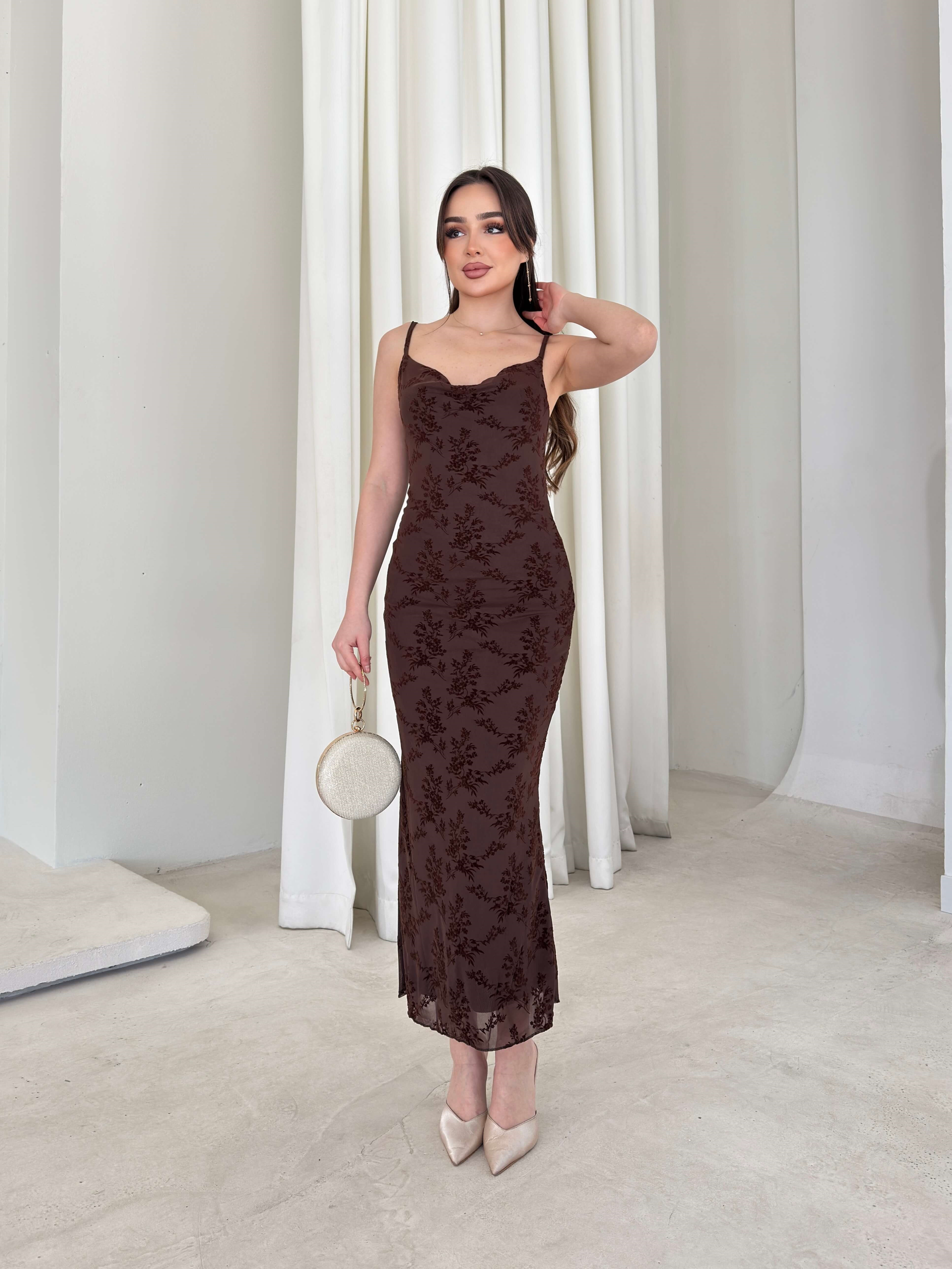 Desenli Askılı Degaje Yaka Candice Kahve Kadın Elbise 26Y151 (26Y151)
