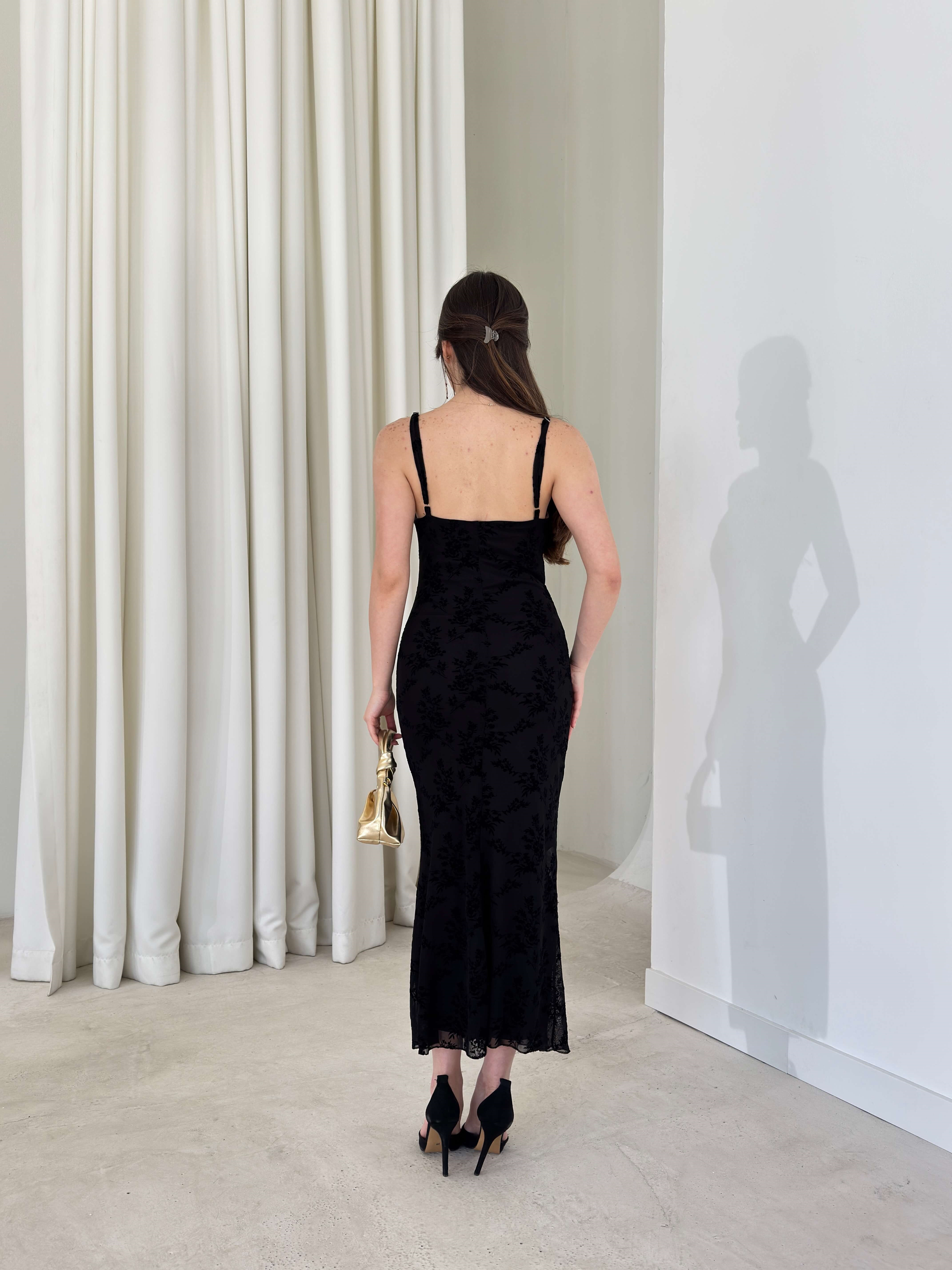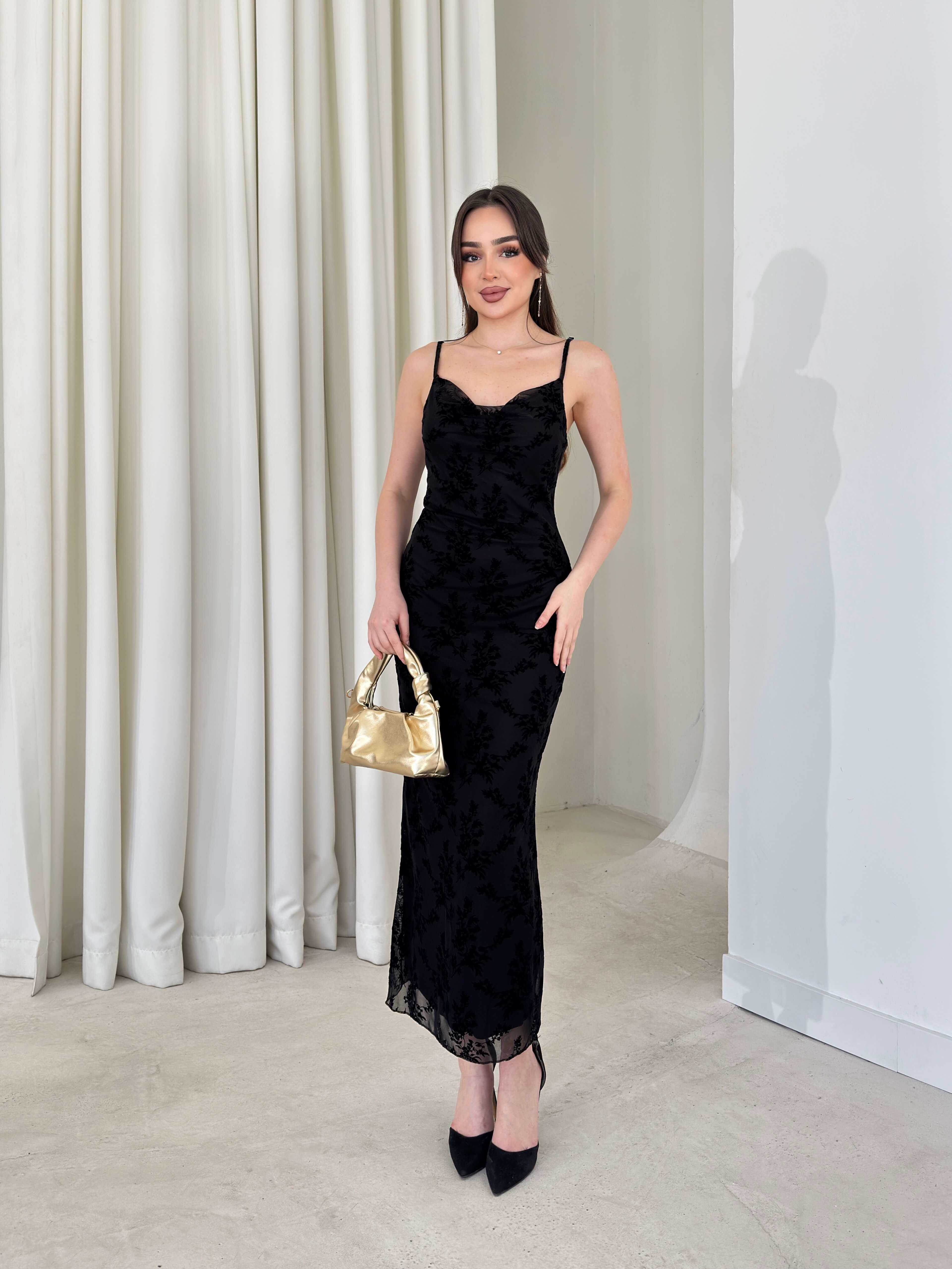 Desenli Askılı Degaje Yaka Candice Siyah Kadın Elbise 26Y151 (26Y151)