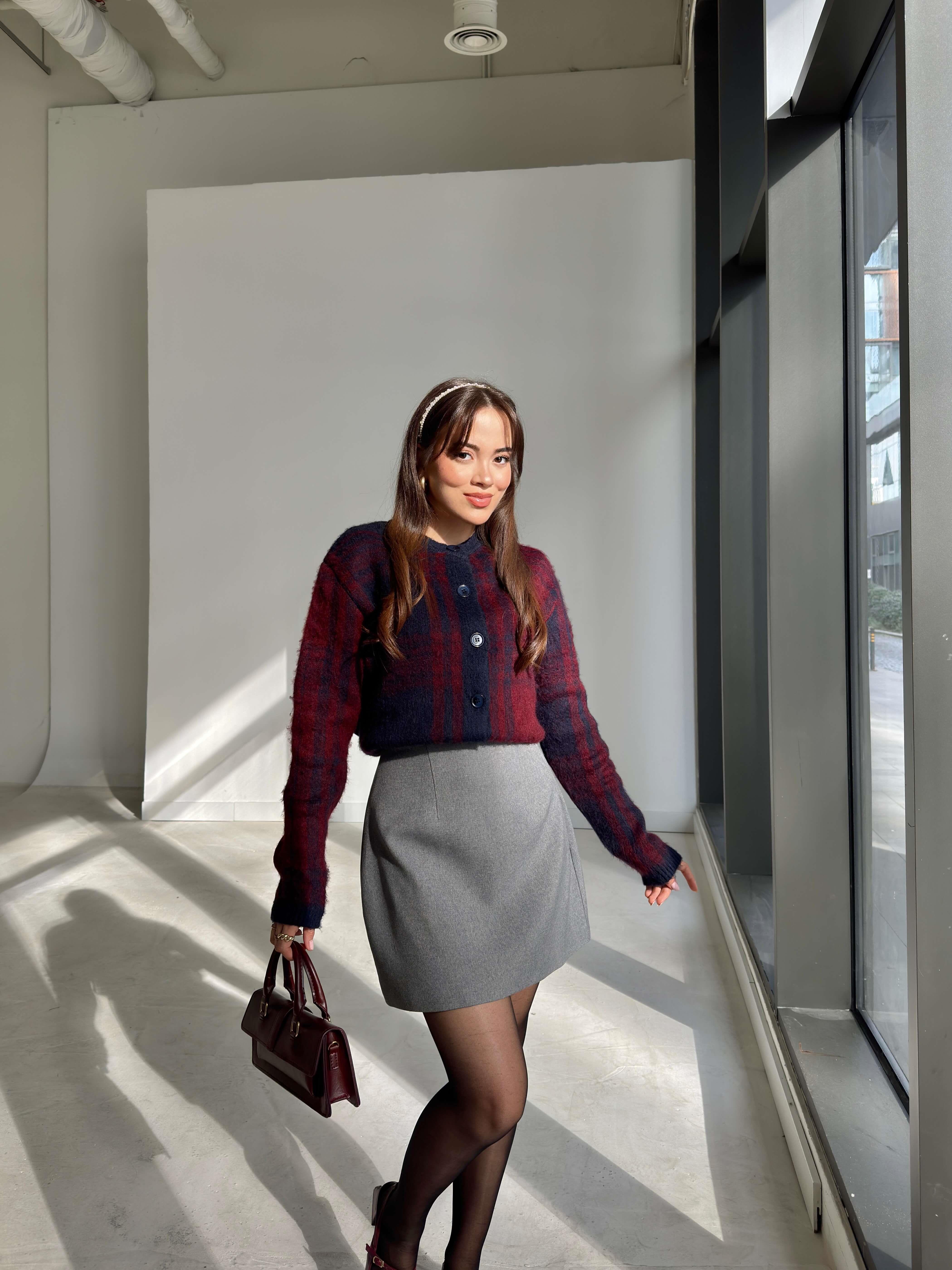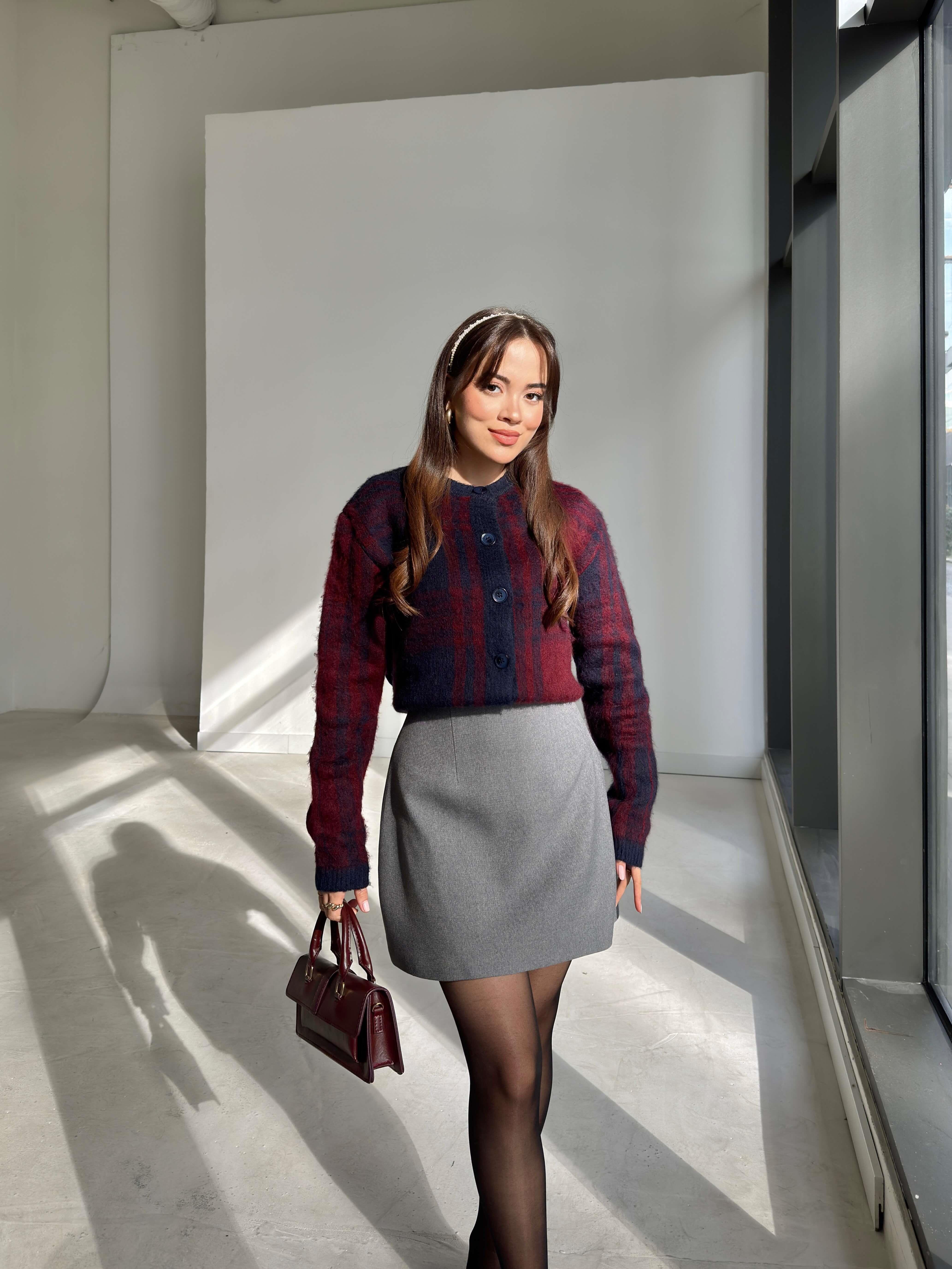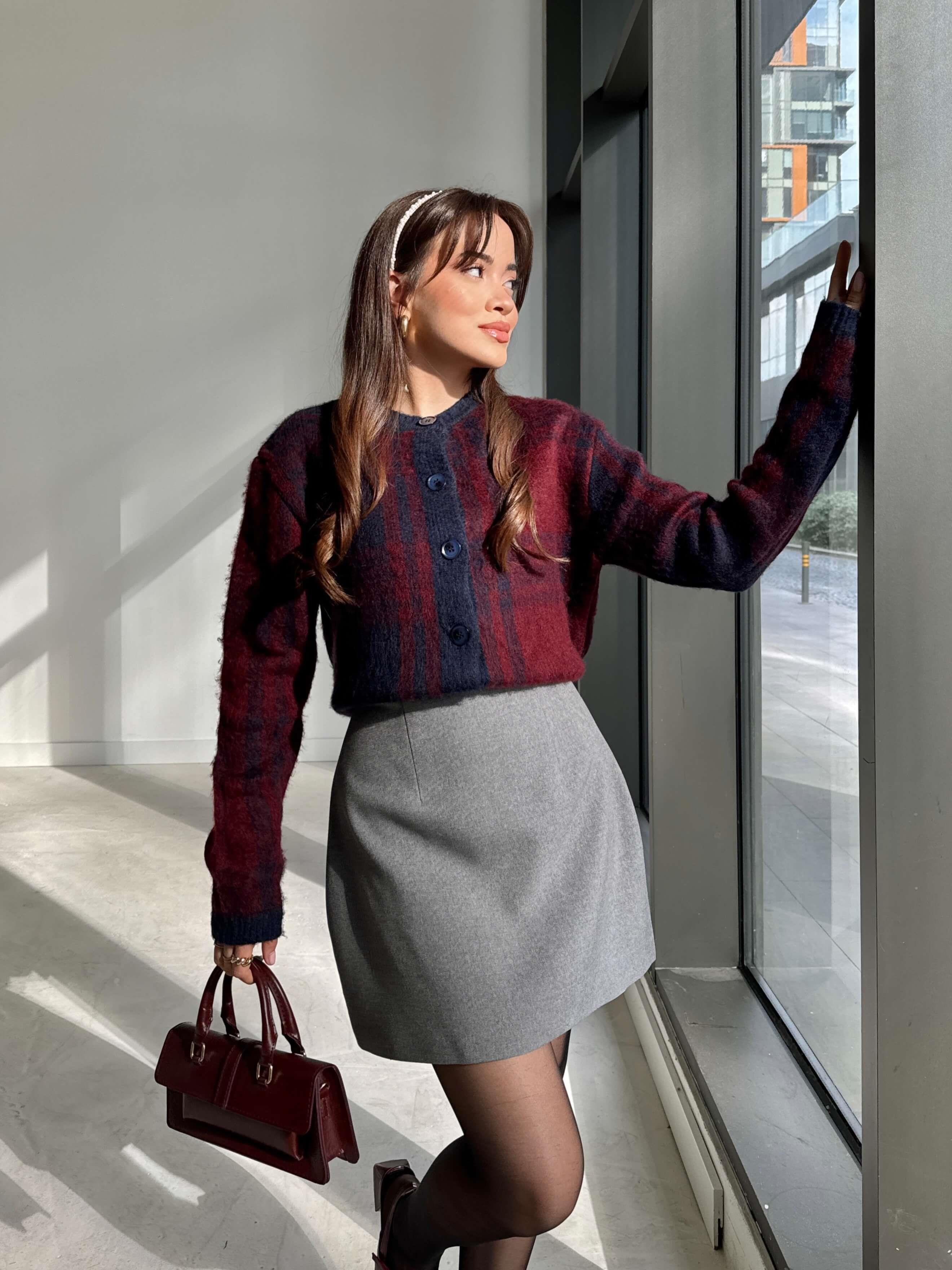 Desenli Önü Düğmeli Alvine Bordo Kadın Triko Hırka 26K206 (26K206)