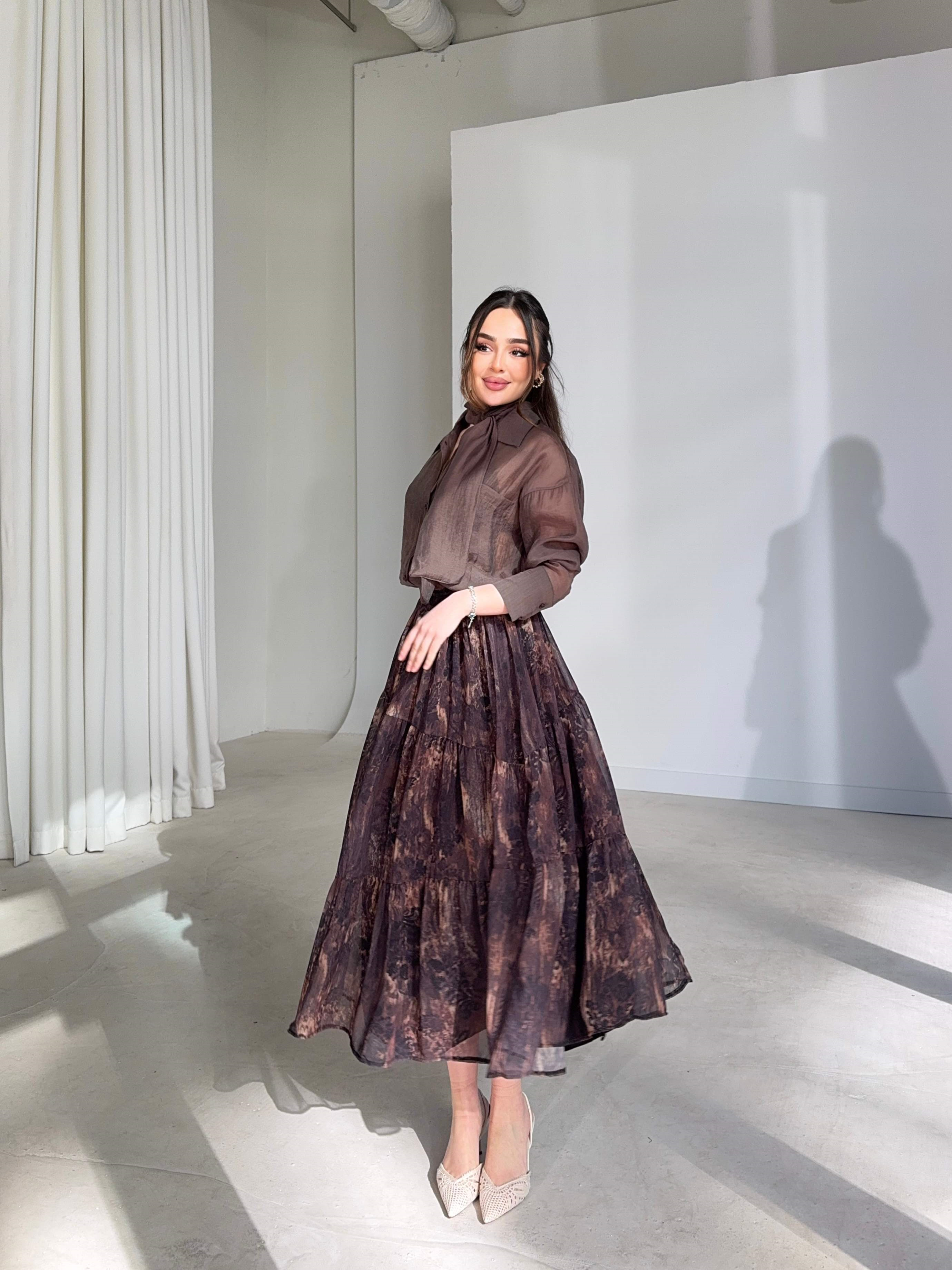 Desenli Pileli Selnev Kahve Kadın Etek 26Y076 (26Y076)