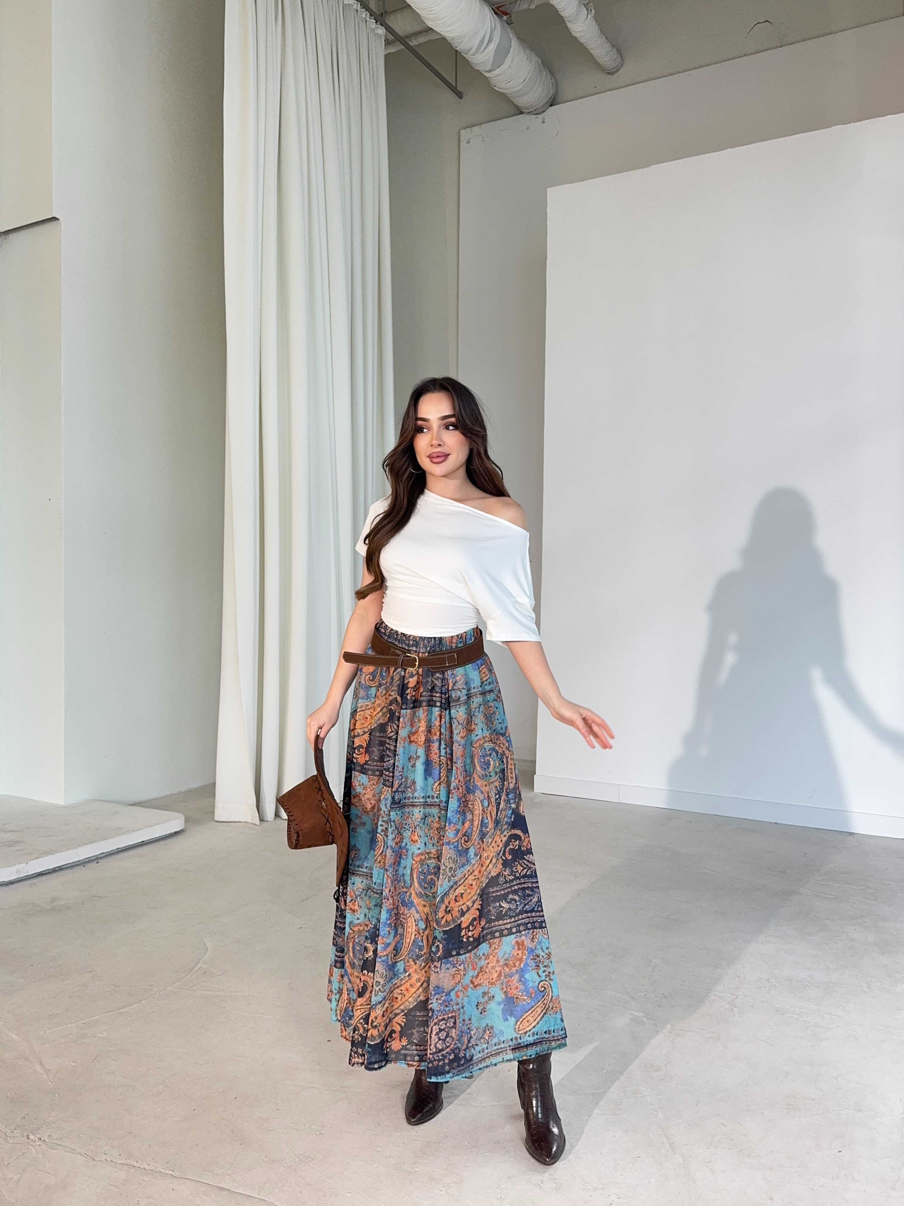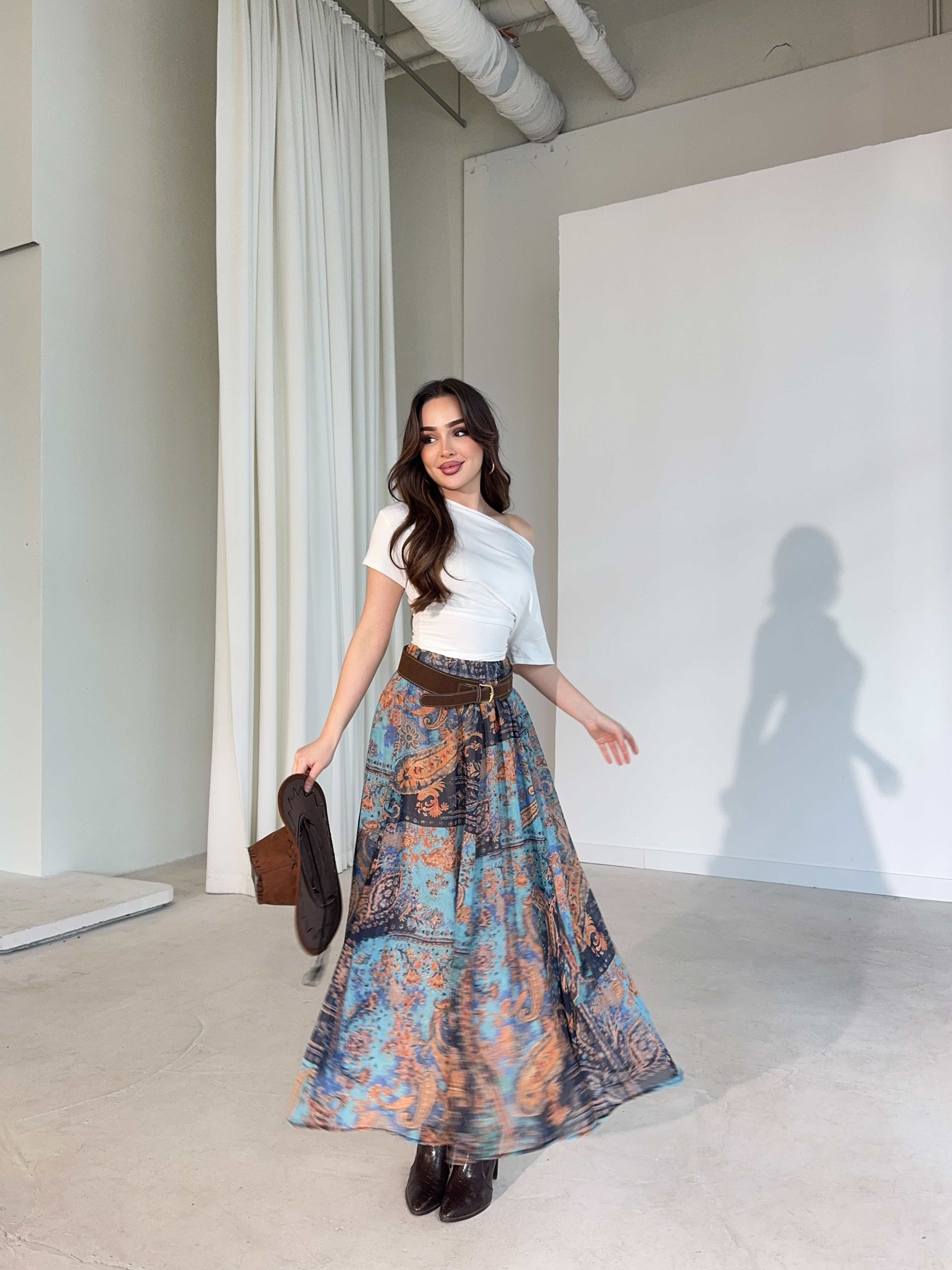 Desenli Süet Kemerli Tül Casandra Siyah Kadın Etek 26Y153 Desenli Süet Kemerli Tül Casandra Kahve Kadın Etek 26Y153