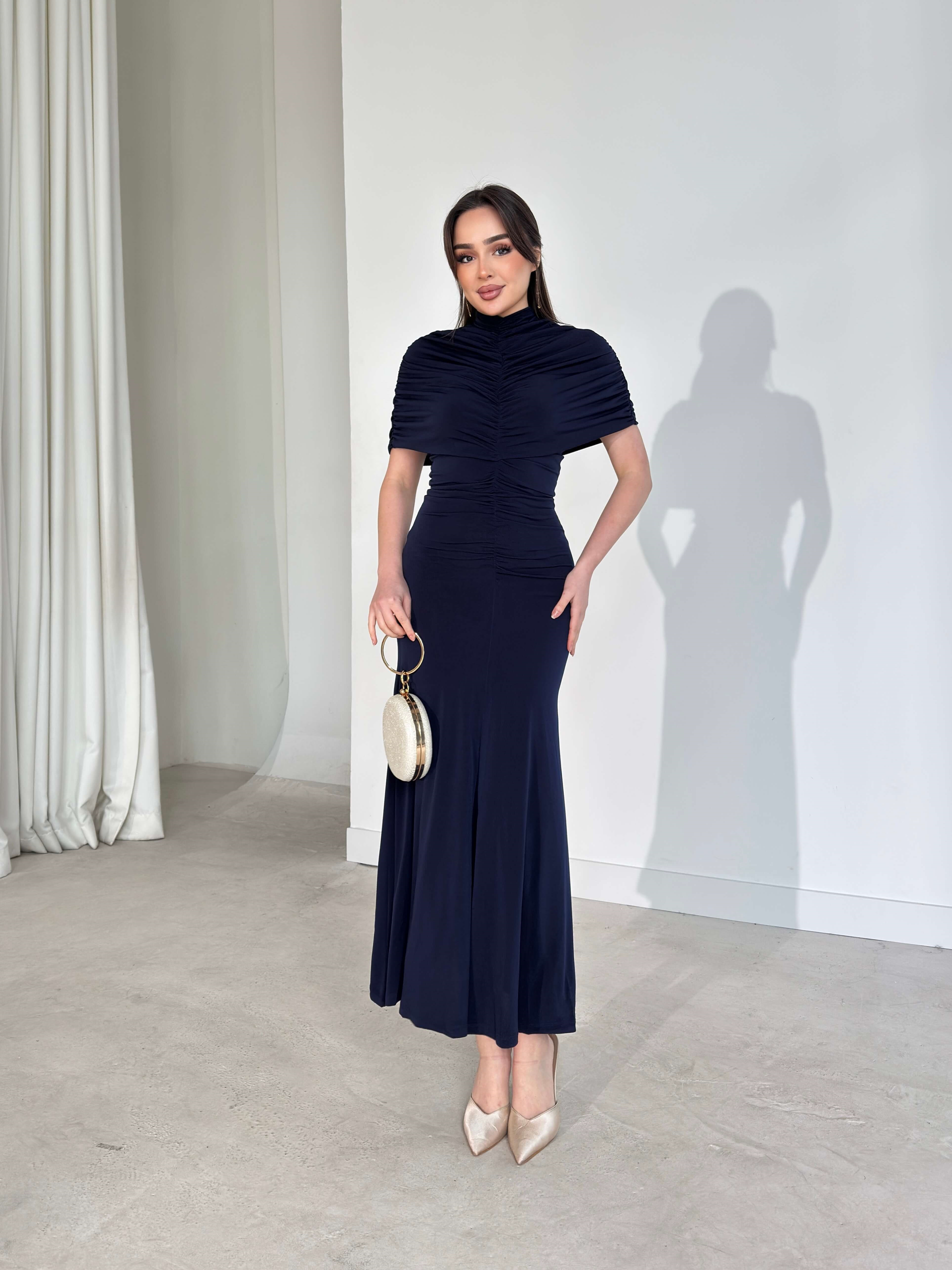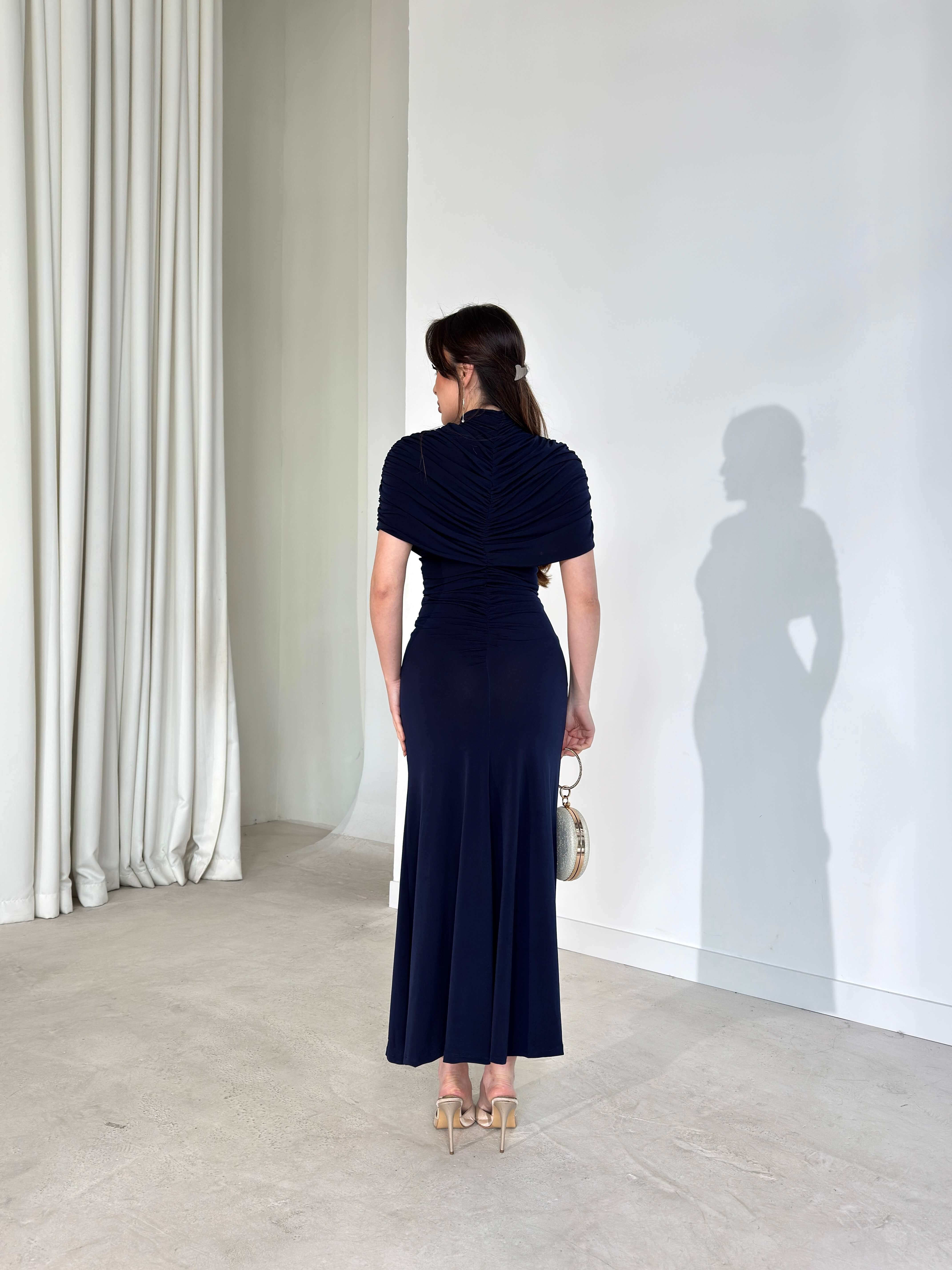 Drapeli Pelerin Dikim Viner Lacivert Kadın Elbise 26Y003 (26Y003)