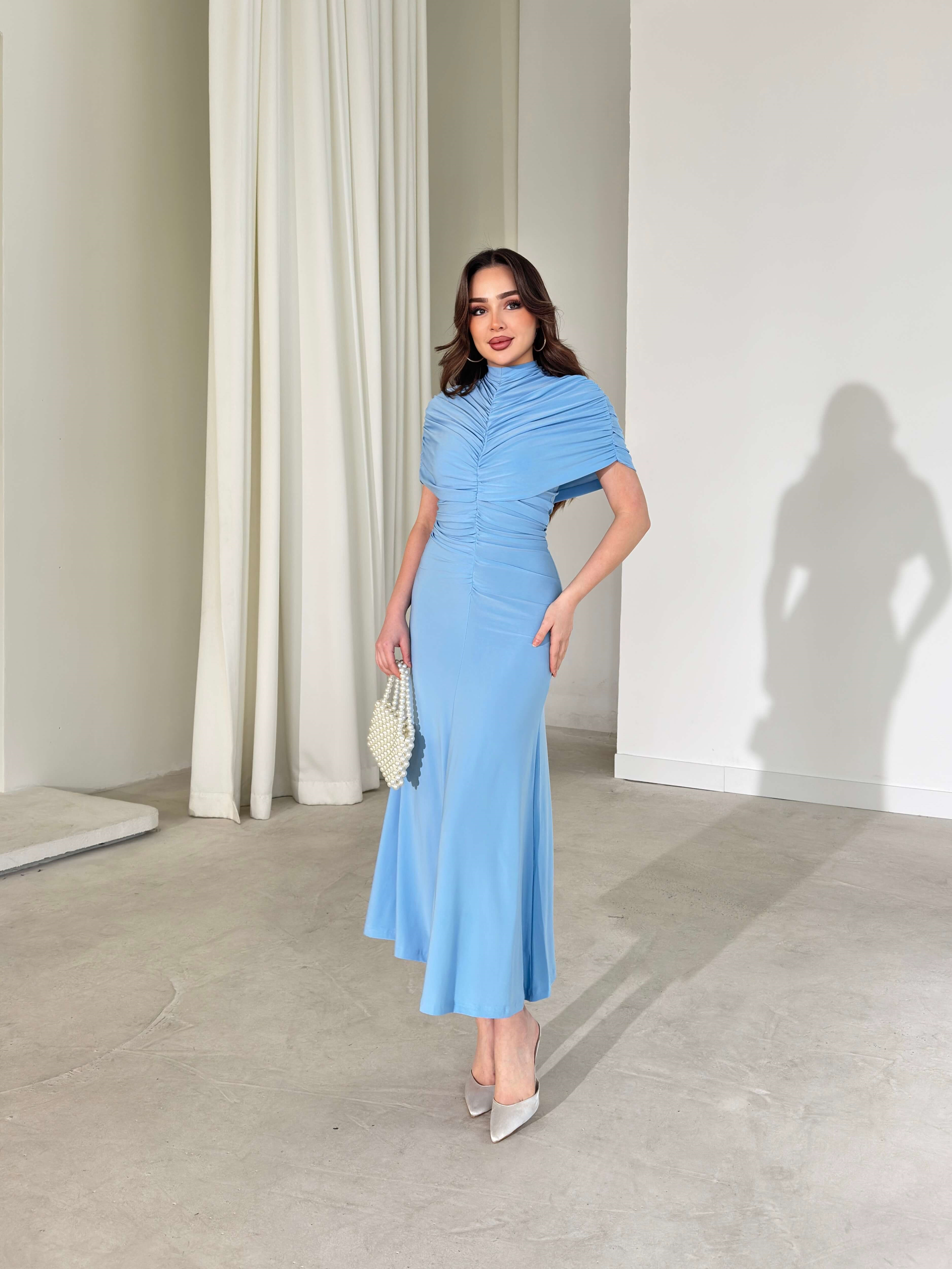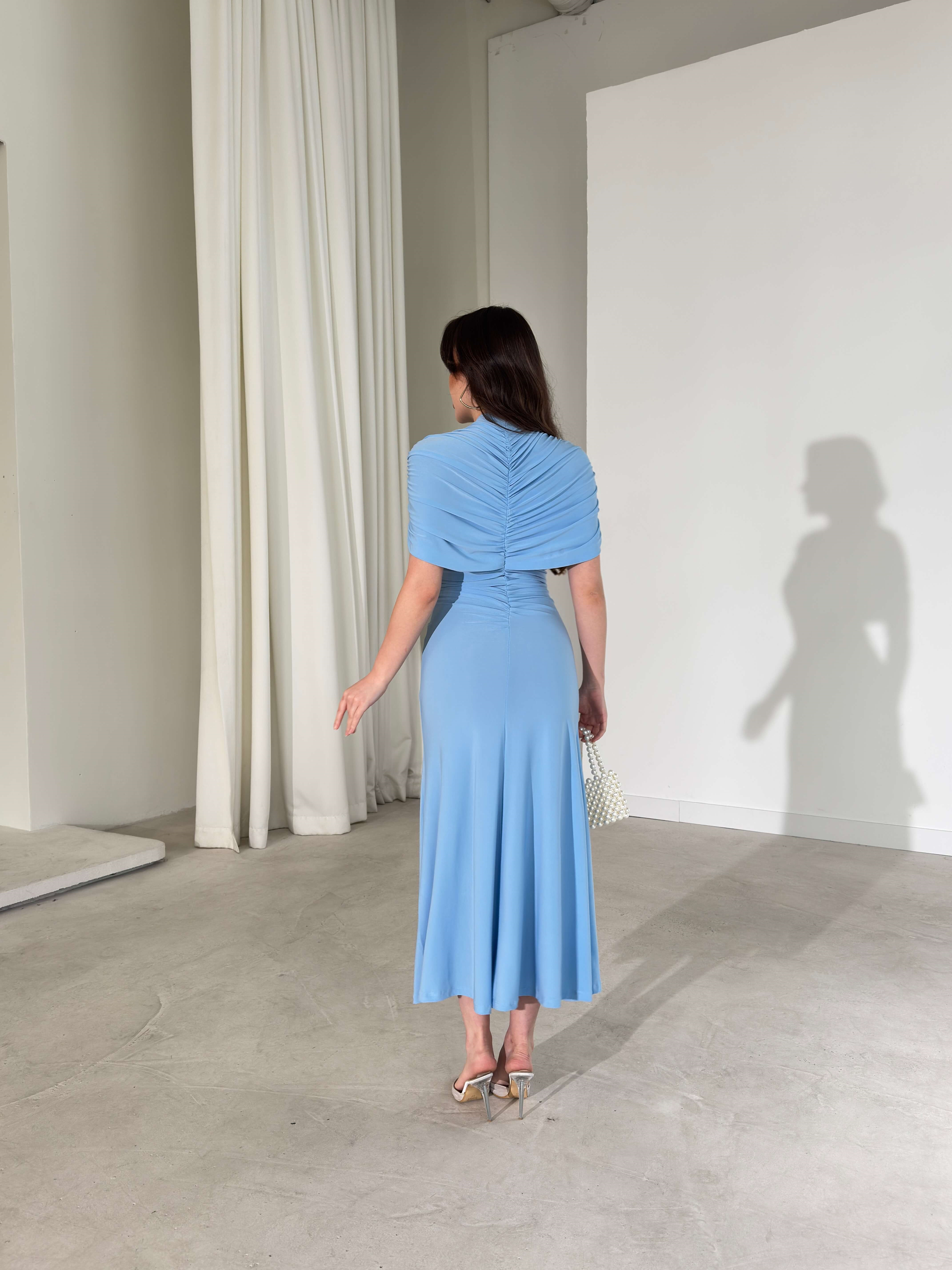 Drapeli Pelerin Dikim Viner Mavi Kadın Elbise 26Y003 (26Y003)