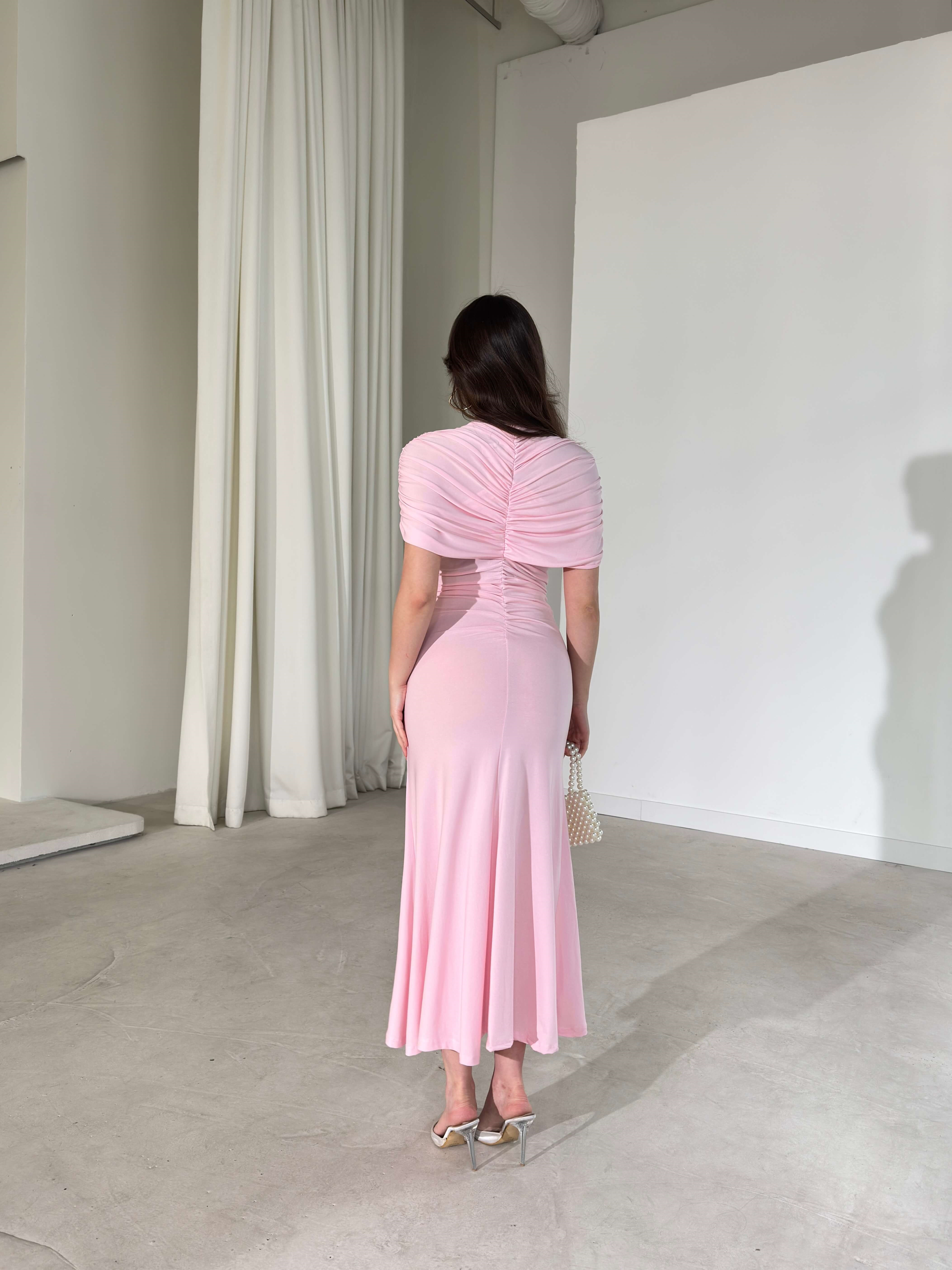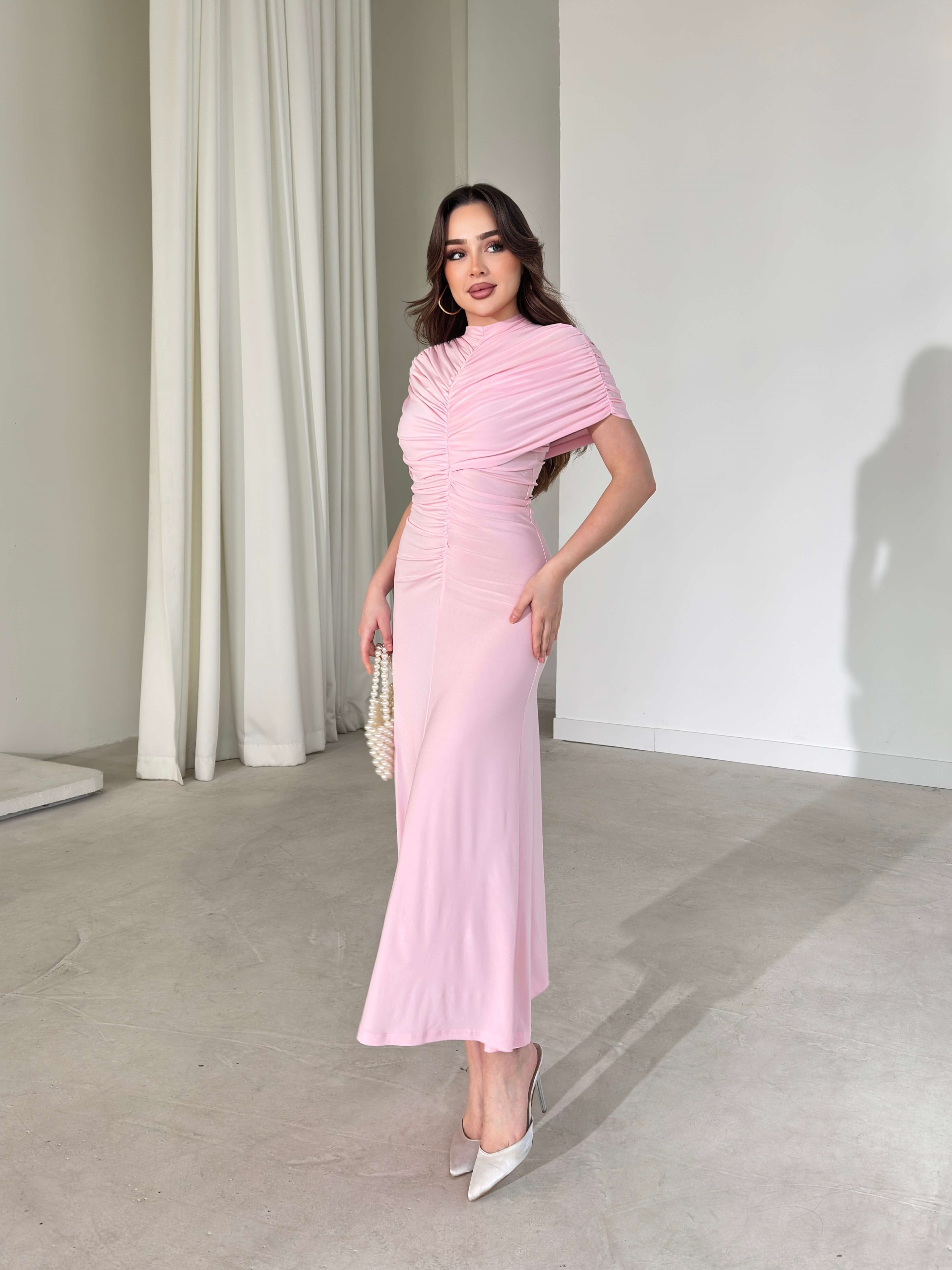 Drapeli Pelerin Dikim Viner Pembe Kadın Elbise 26Y003 (26Y003)