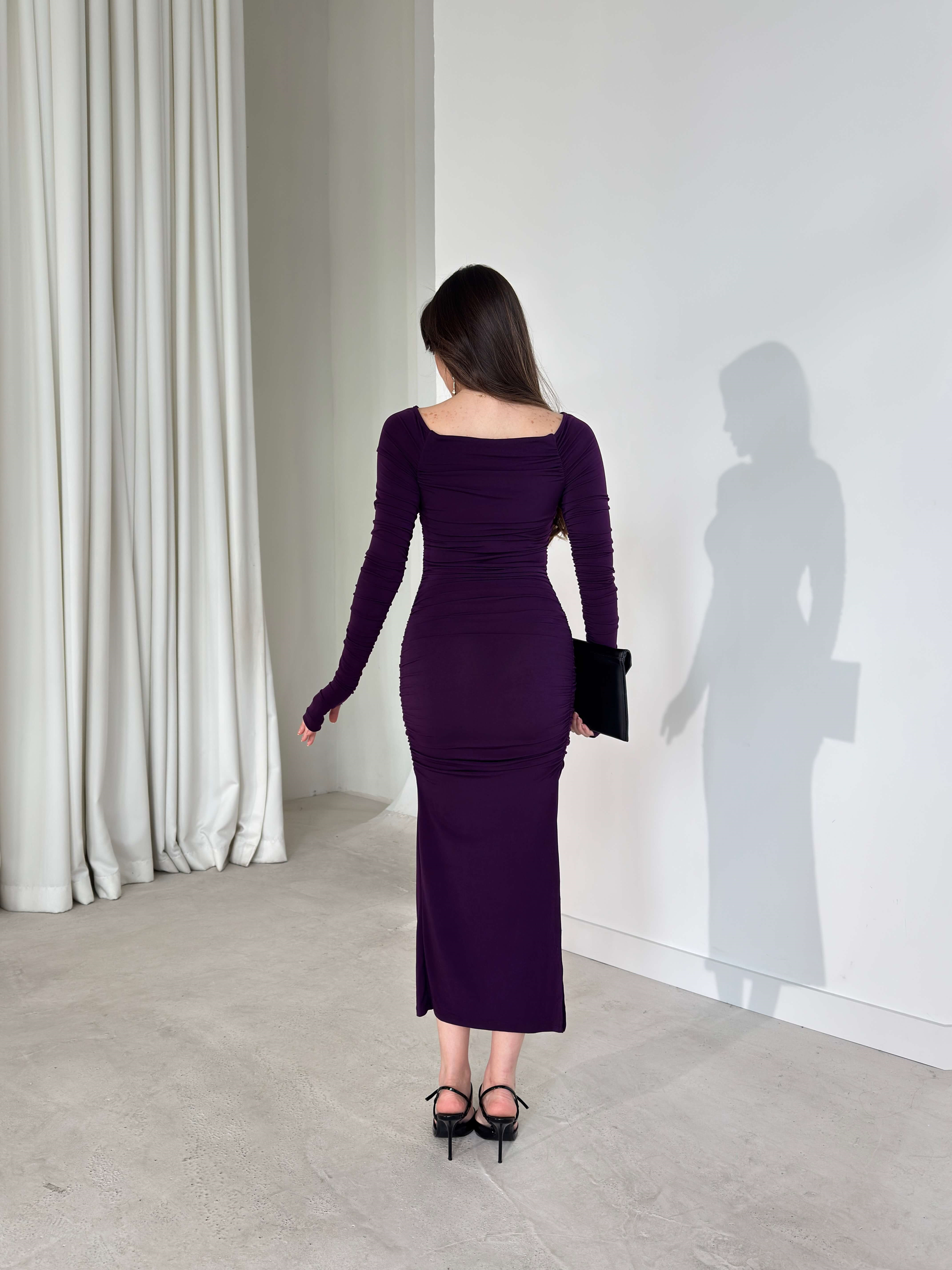 Drapeli Yandan Yırtmaçlı Parmak Detaylı Antonia Mor Kadın Elbise 26Y142 (26Y142)