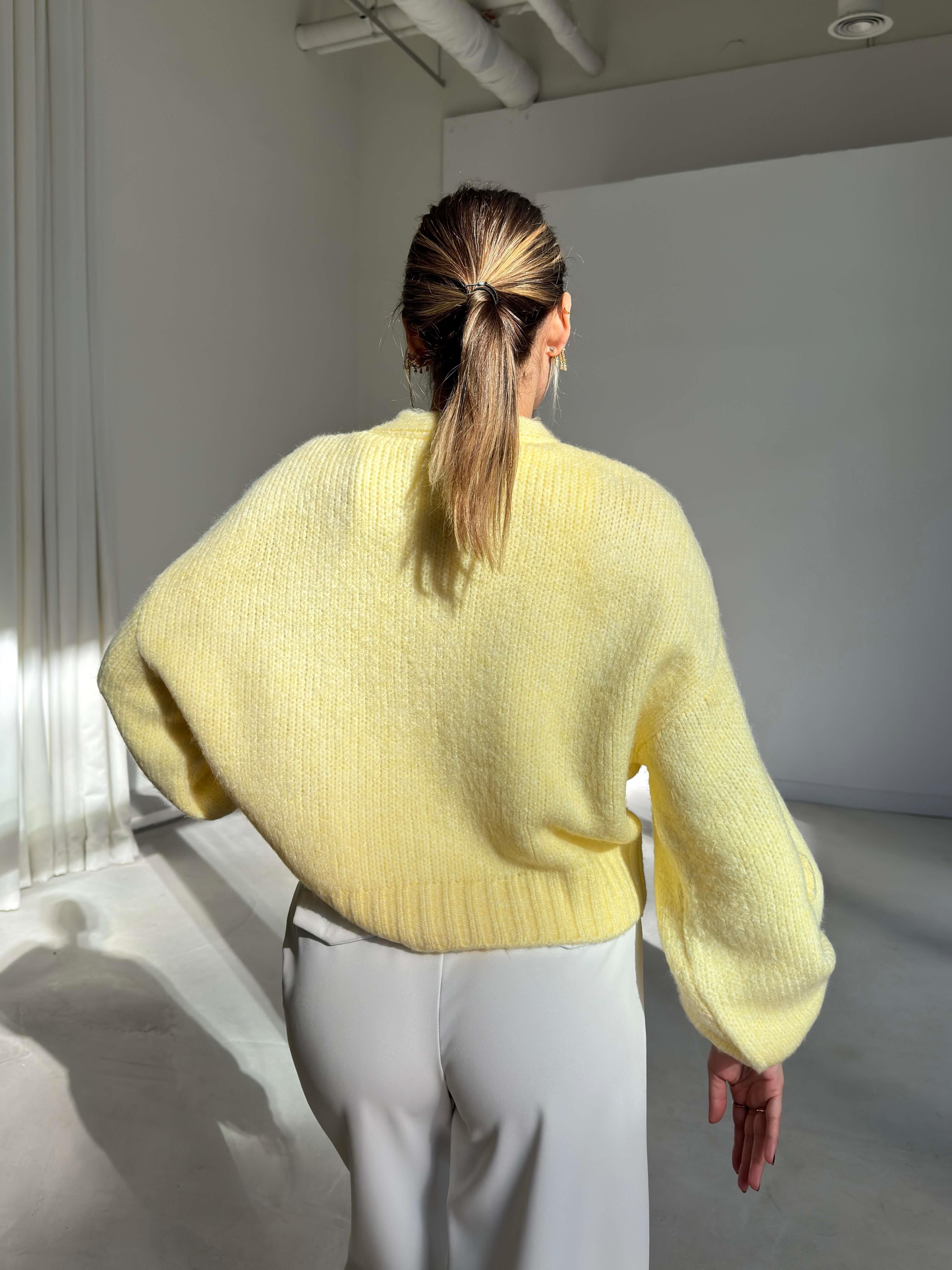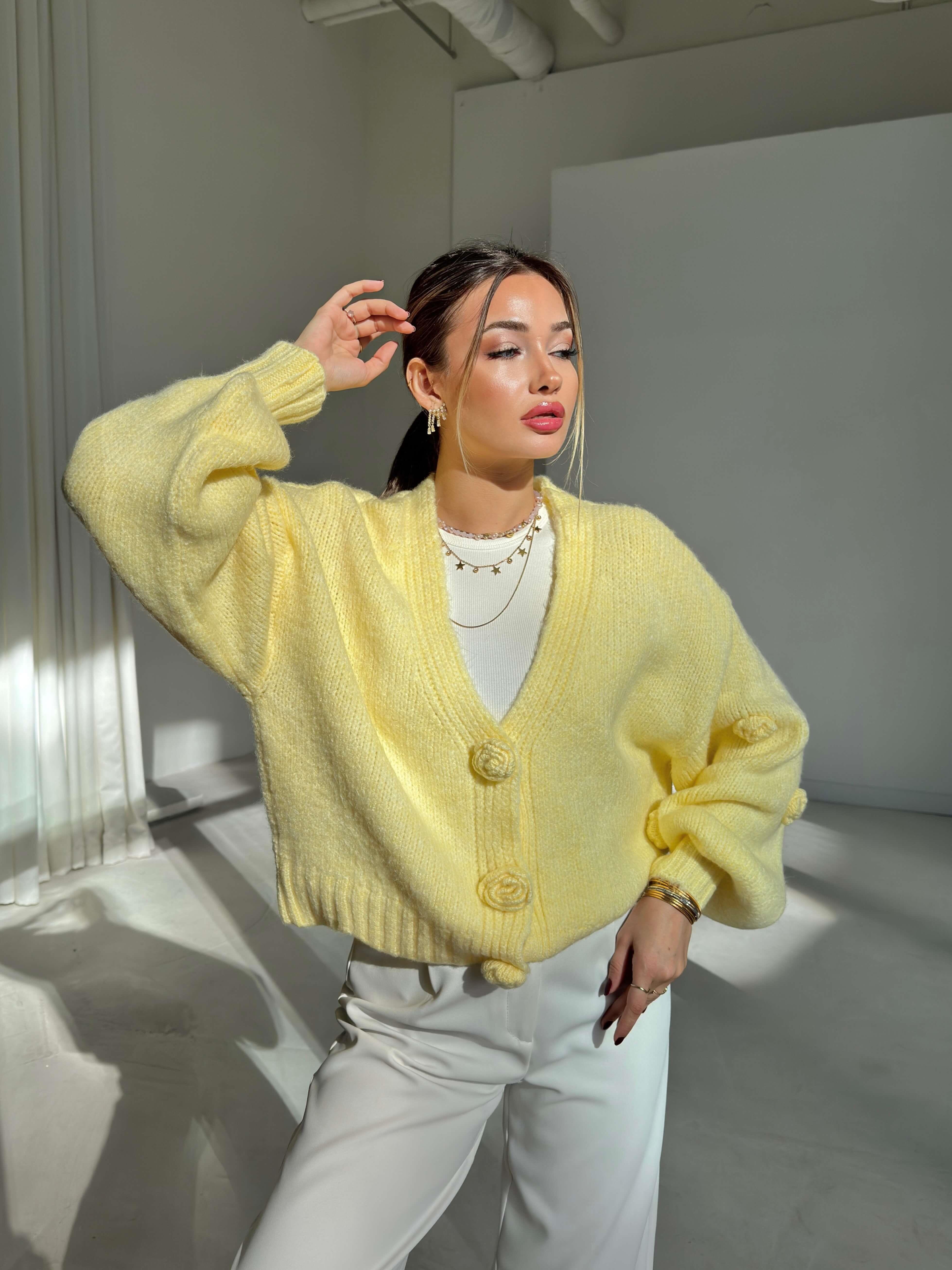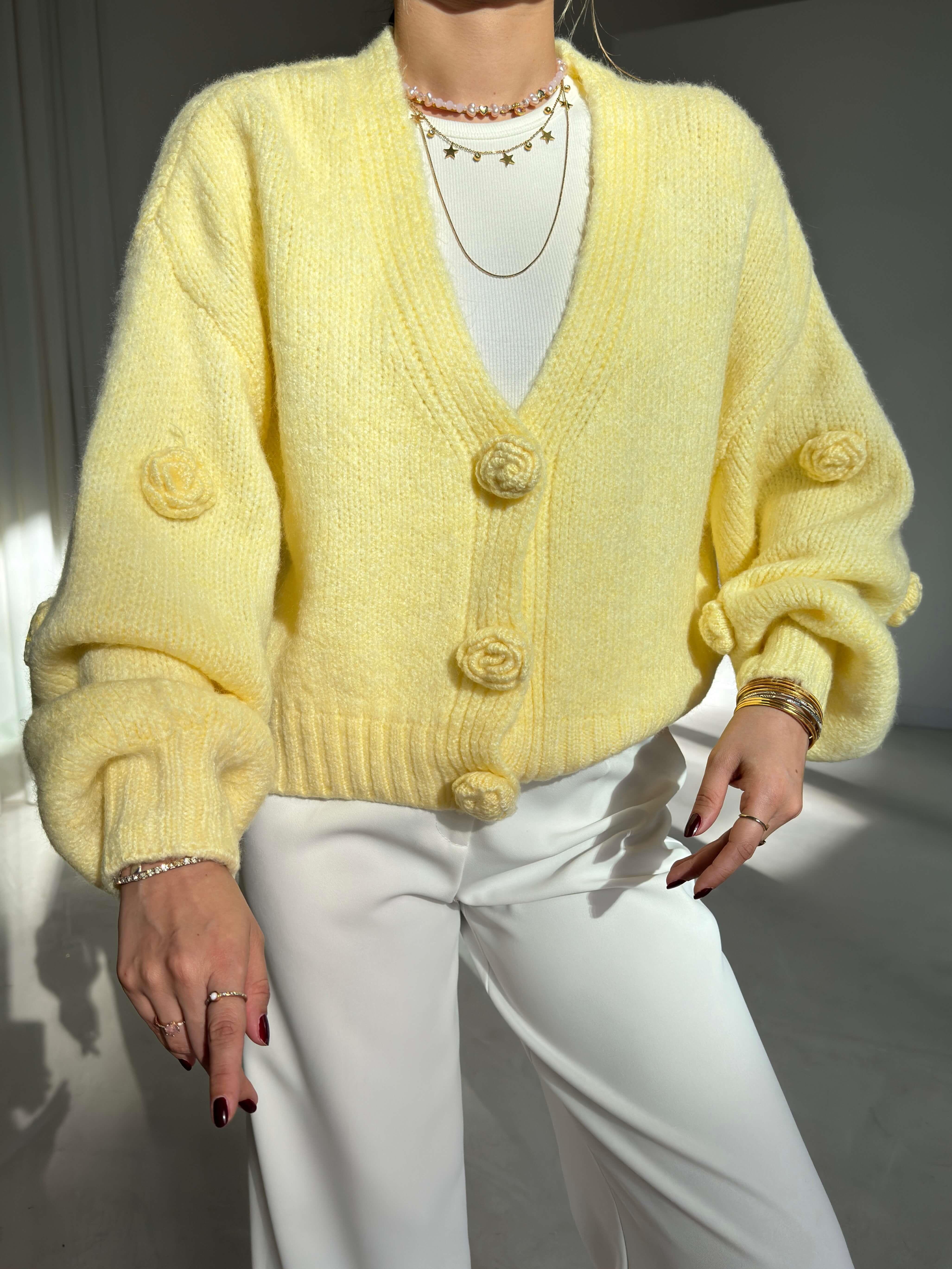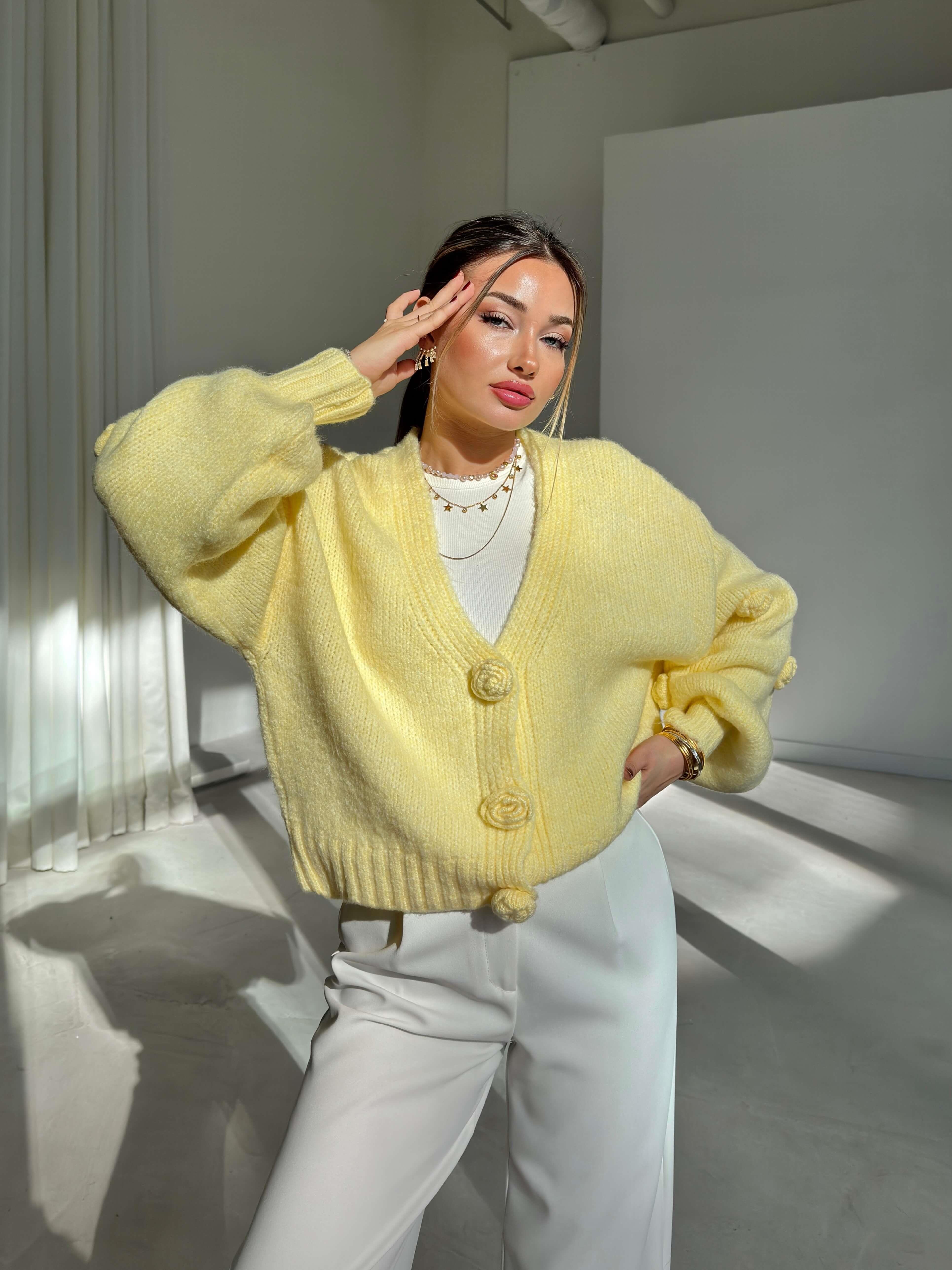 Güllü Önü Çıtçıtlı Herine Sarı Kadın Triko Hırka 26K172 (26K172)