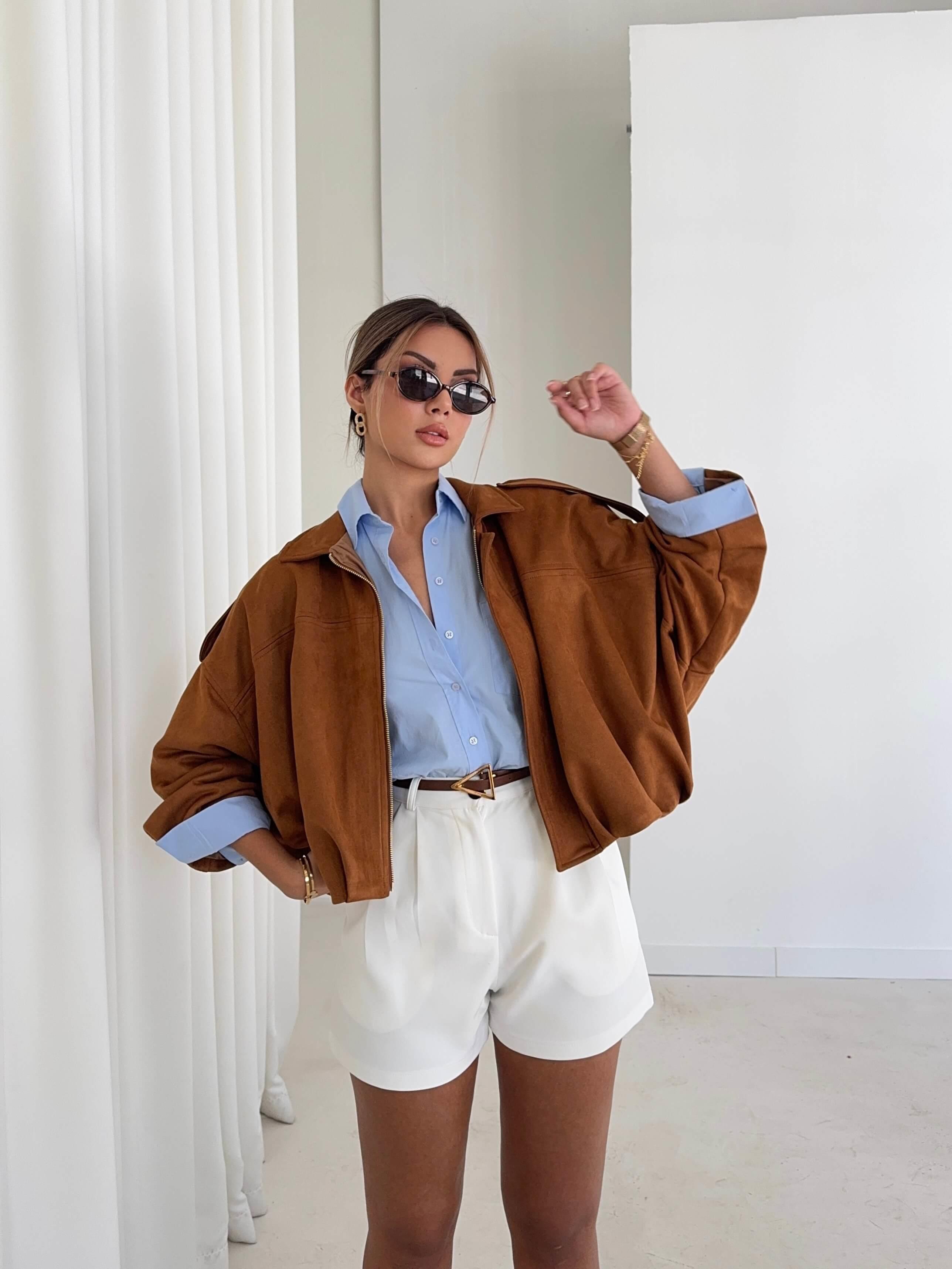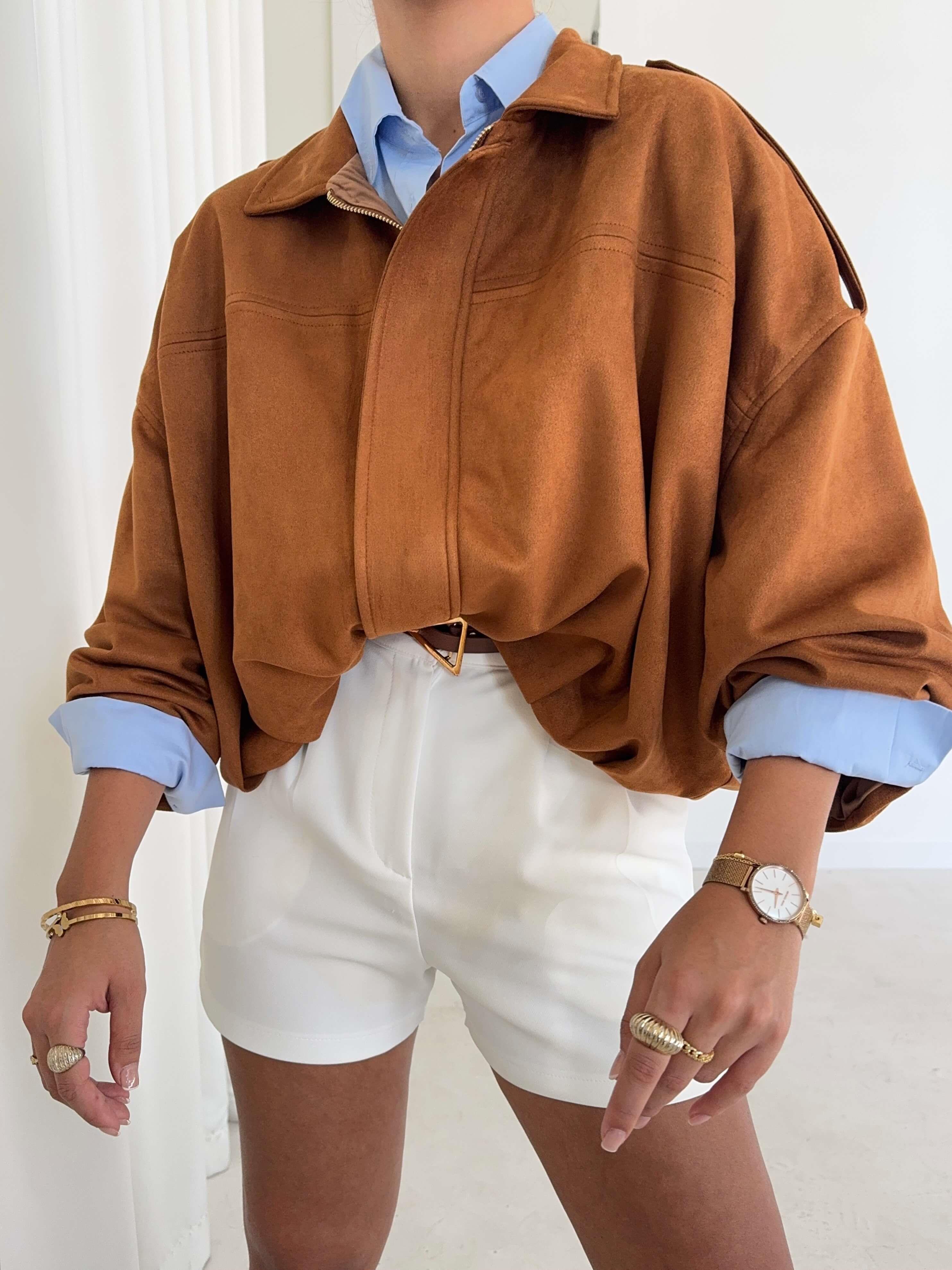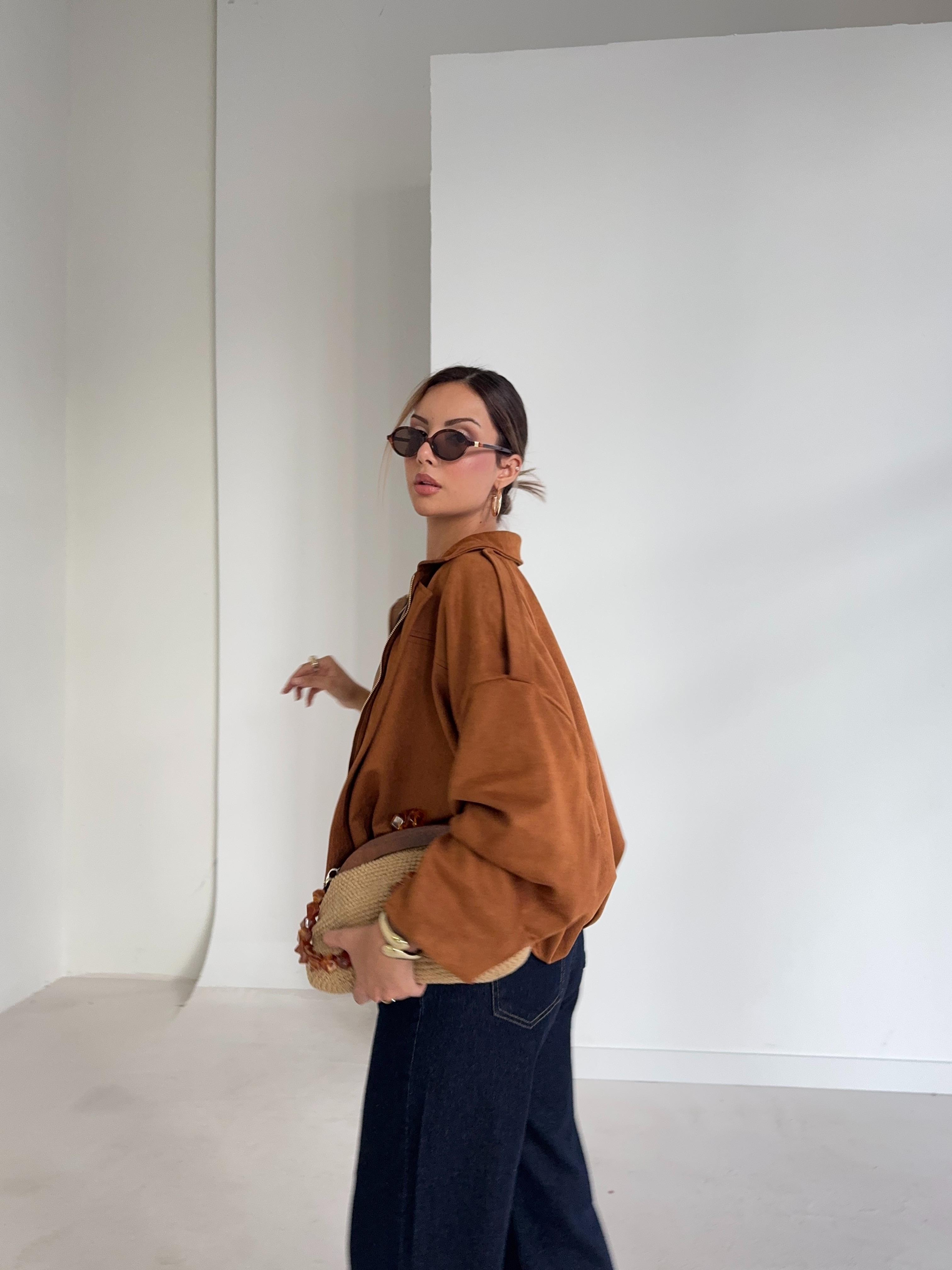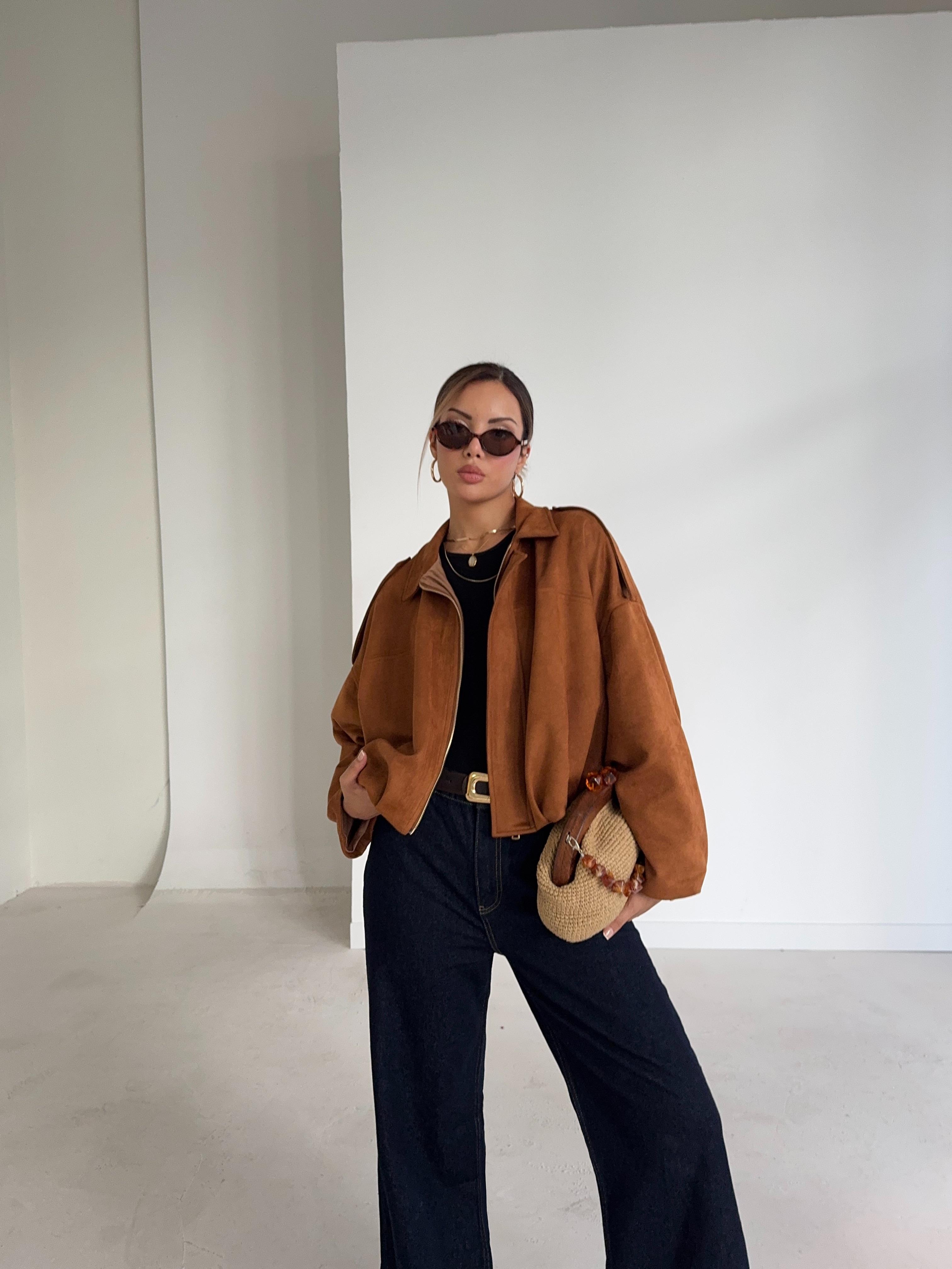 Fermuarlı Geniş Yaka Kalmen Taba Kadın Mont 26K081 (26K081)