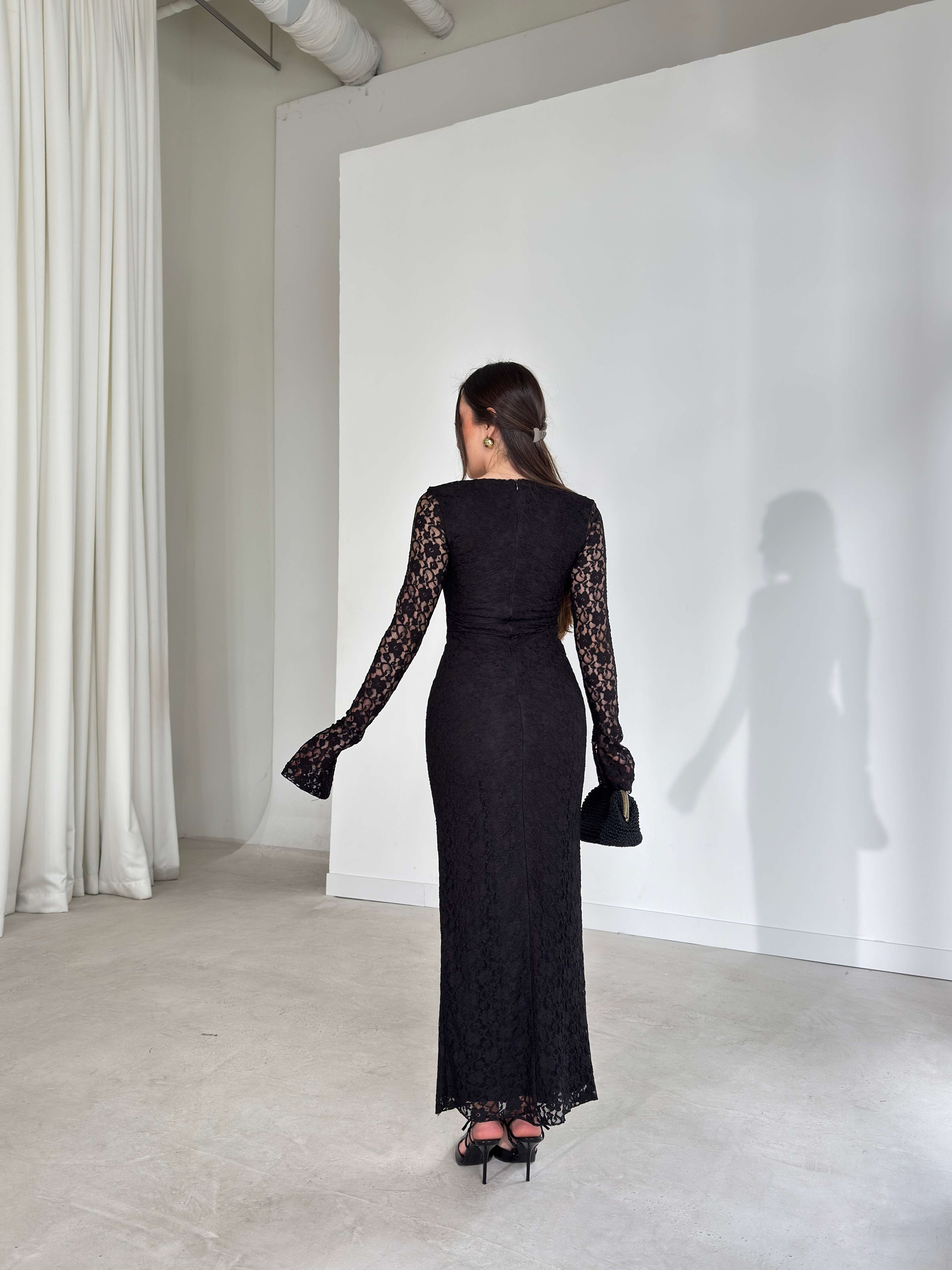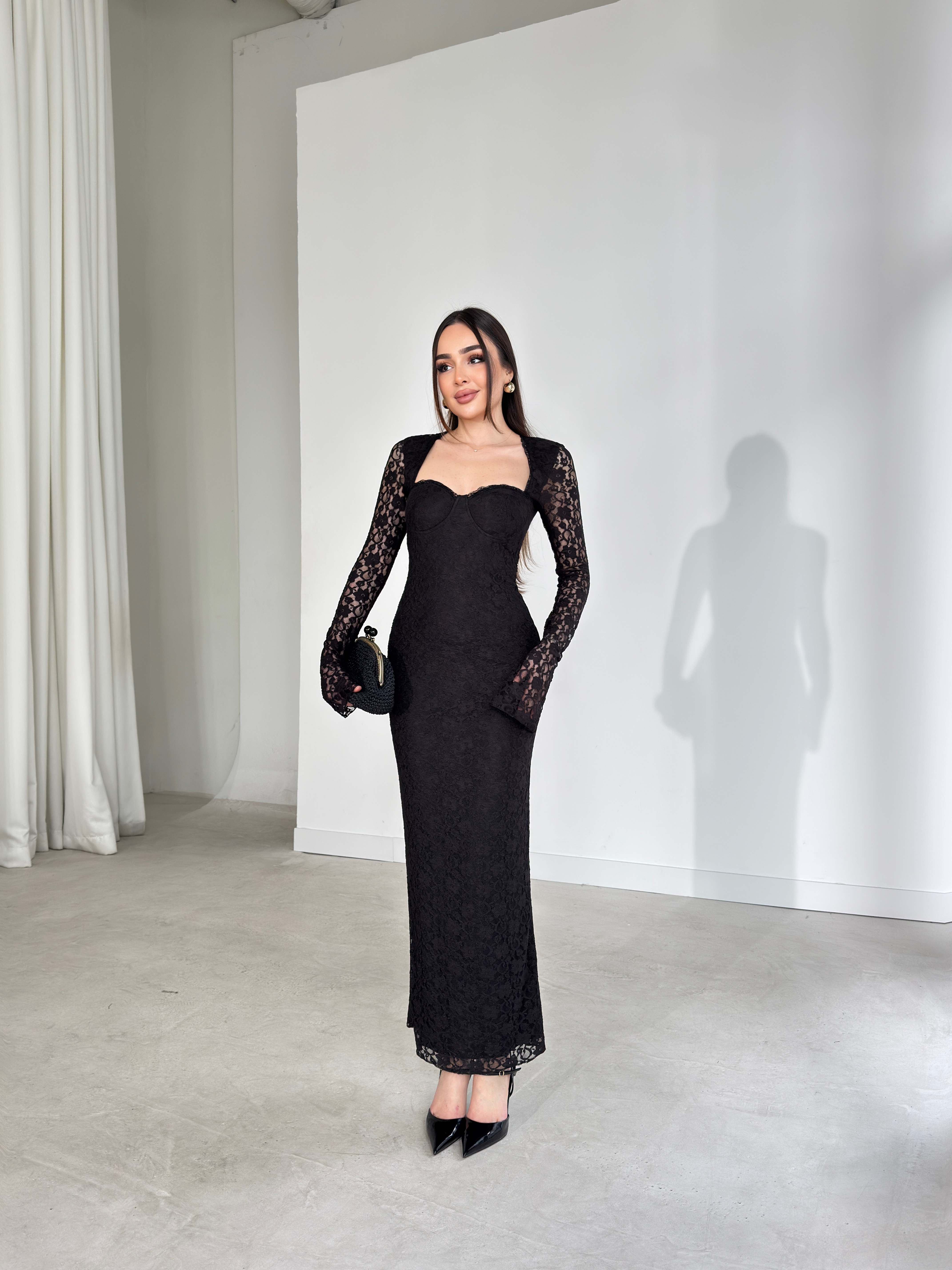 Kalp Yaka Maxi Arlene Siyah Dantelli Kadın Elbise 26Y126 (26Y126)