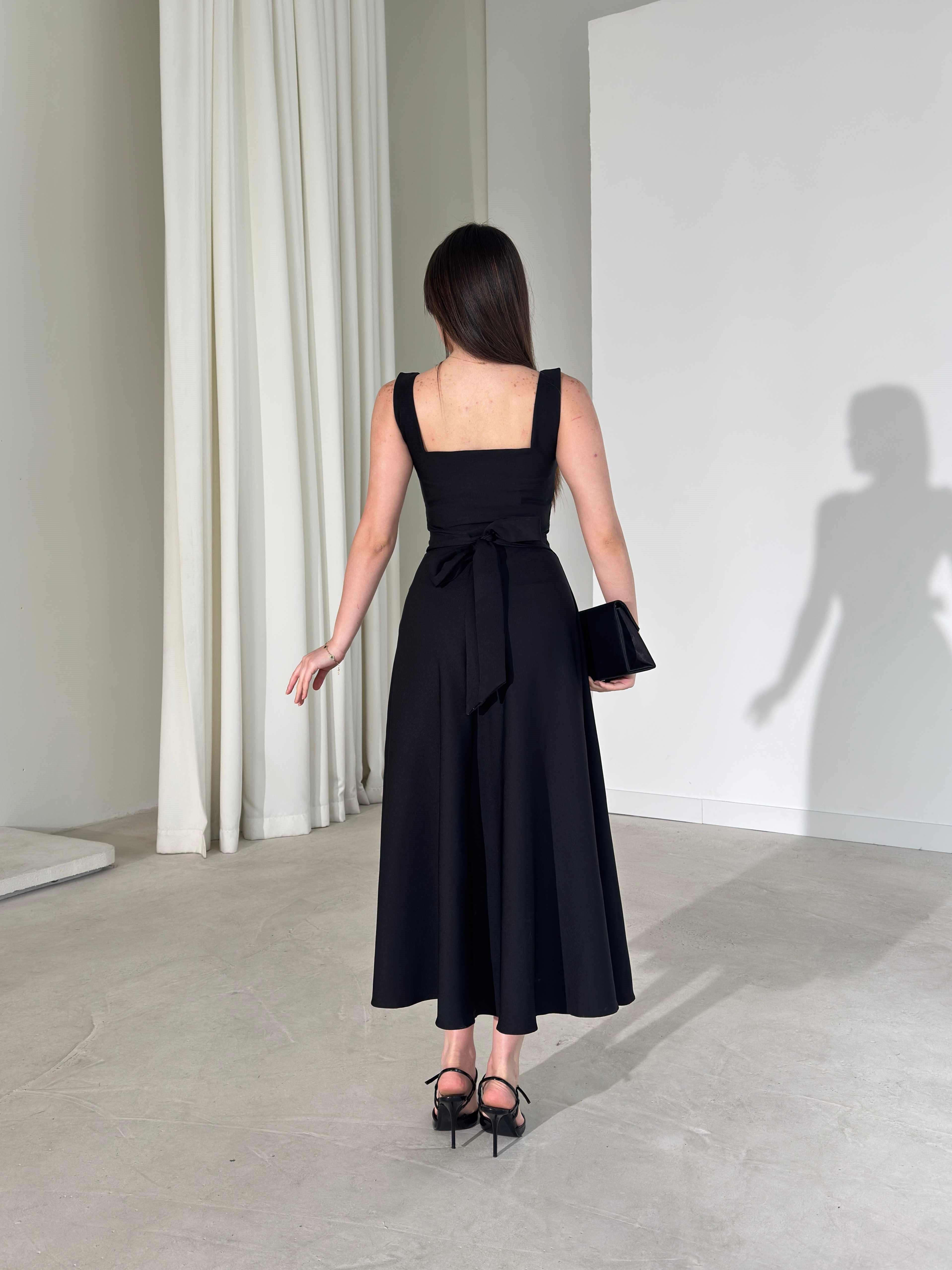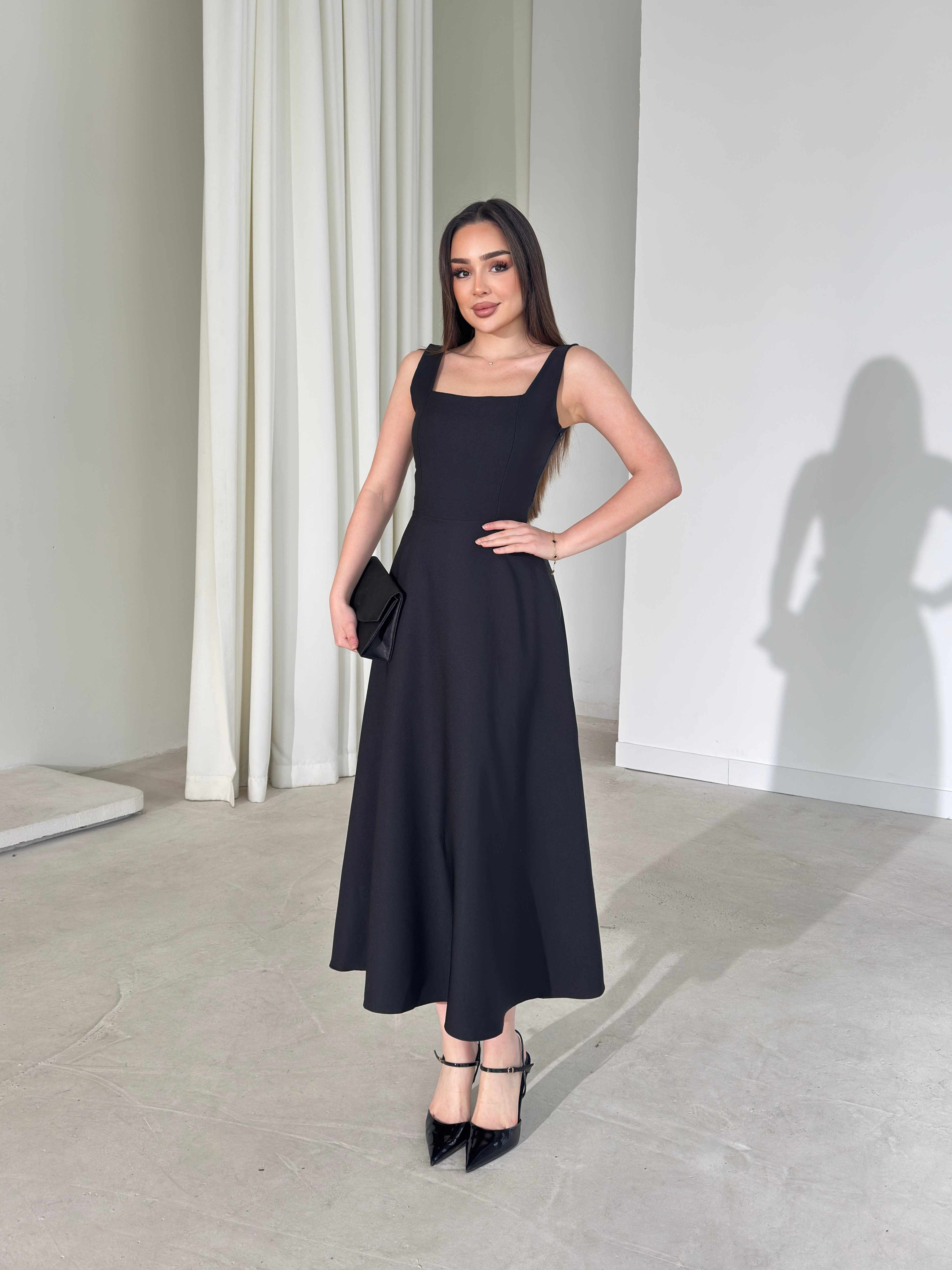 Kare Yaka Arkadan Bağlamalı Midi Boy Siyah Brandy Kadın Elbise 26Y163 (26Y163)