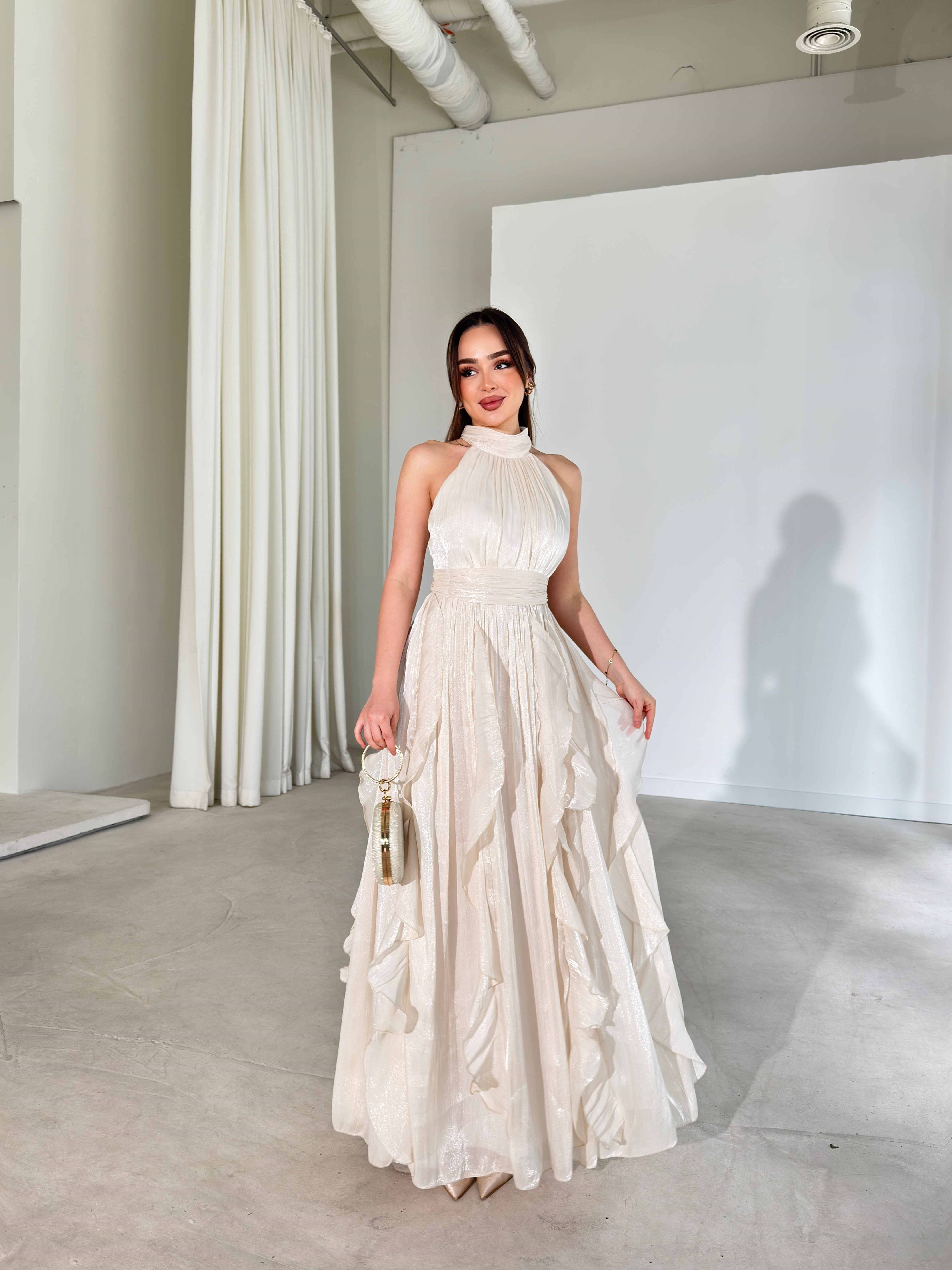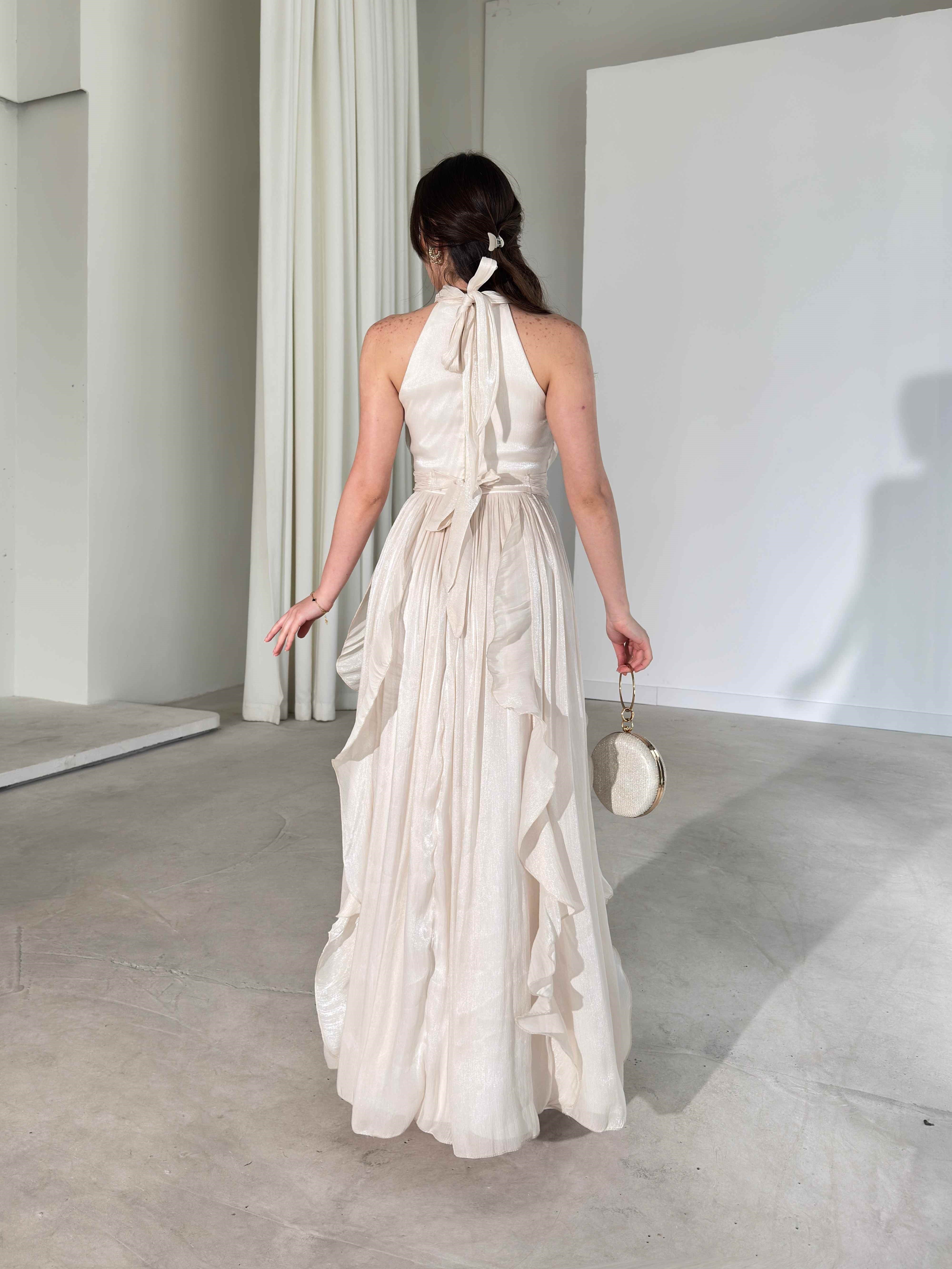Kemerli Boyundan Bağlamalı Maxi Ekru Preston Kadın Elbise 26Y211 (26Y211)