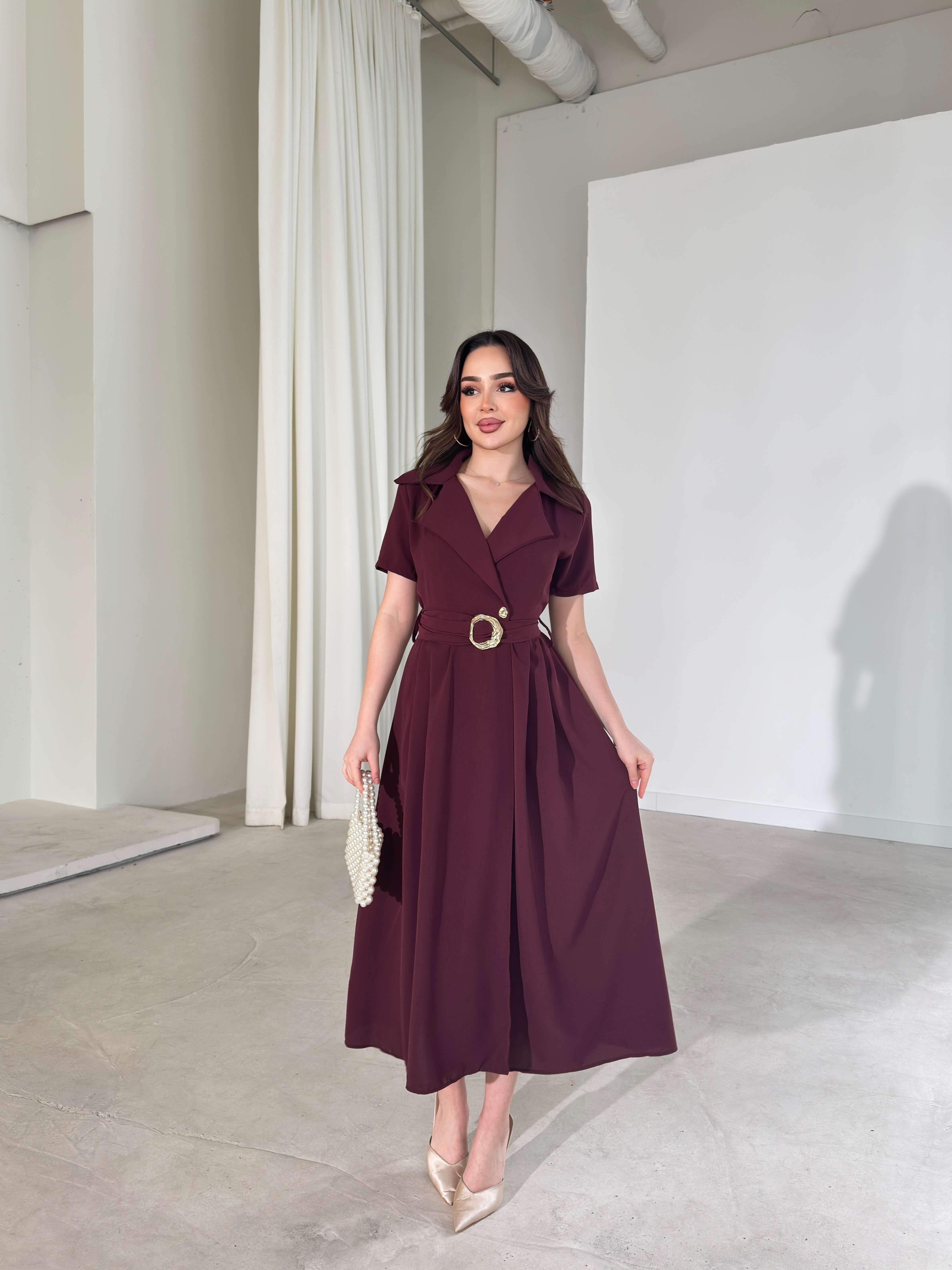 Kemerli Kruvaze Yaka Kristina Bordo Kadın Elbise 26Y150 (26Y150)