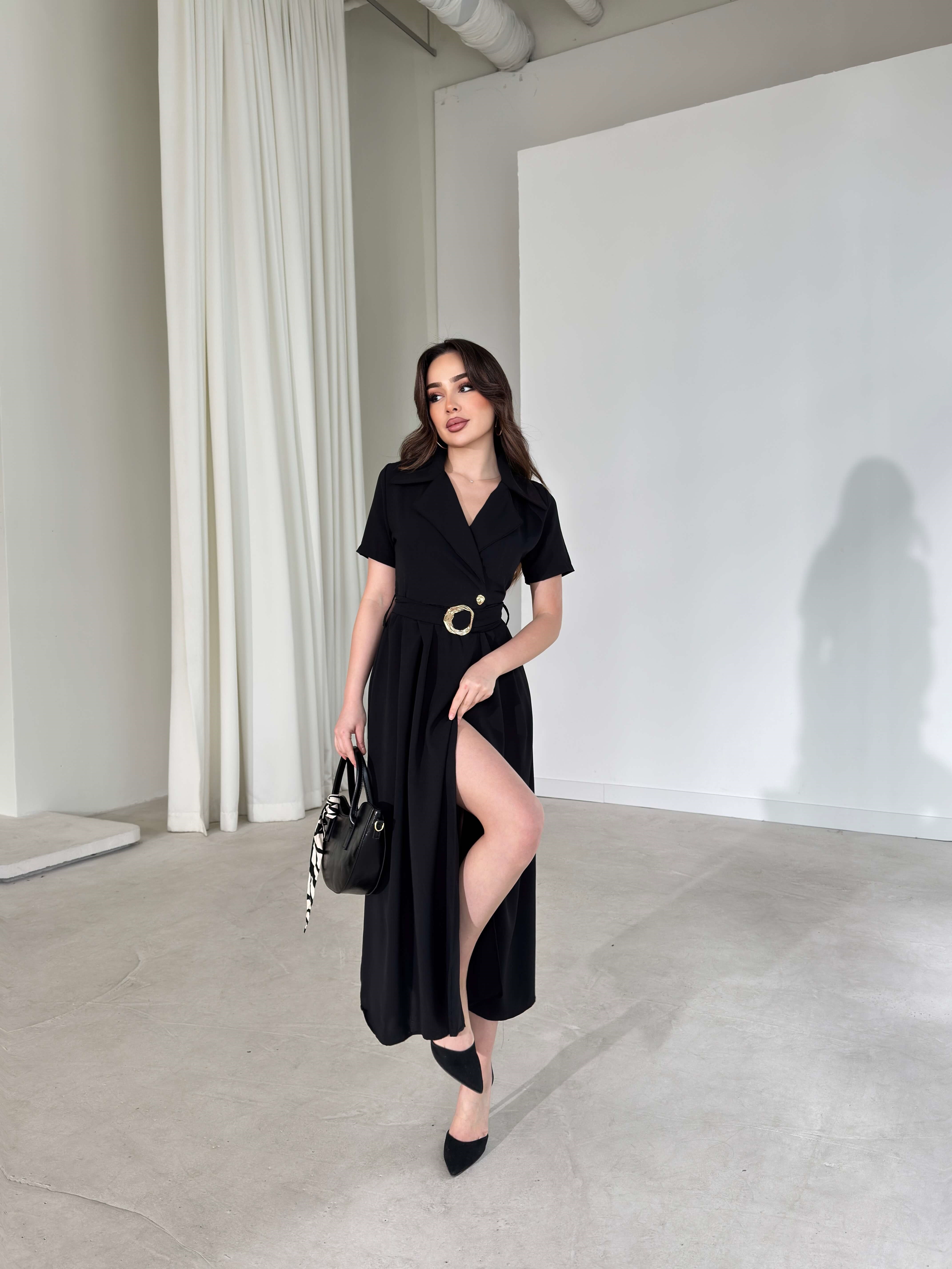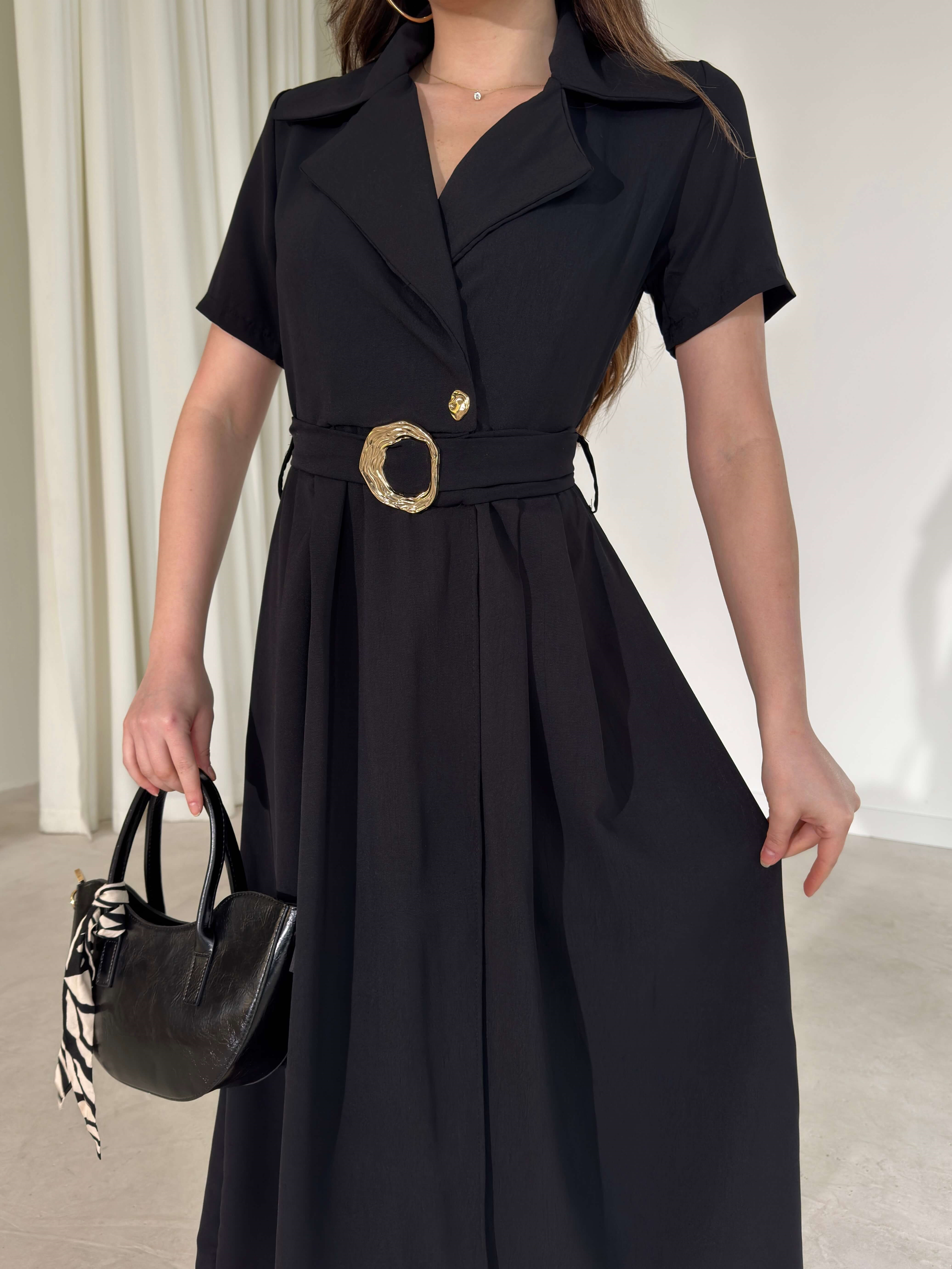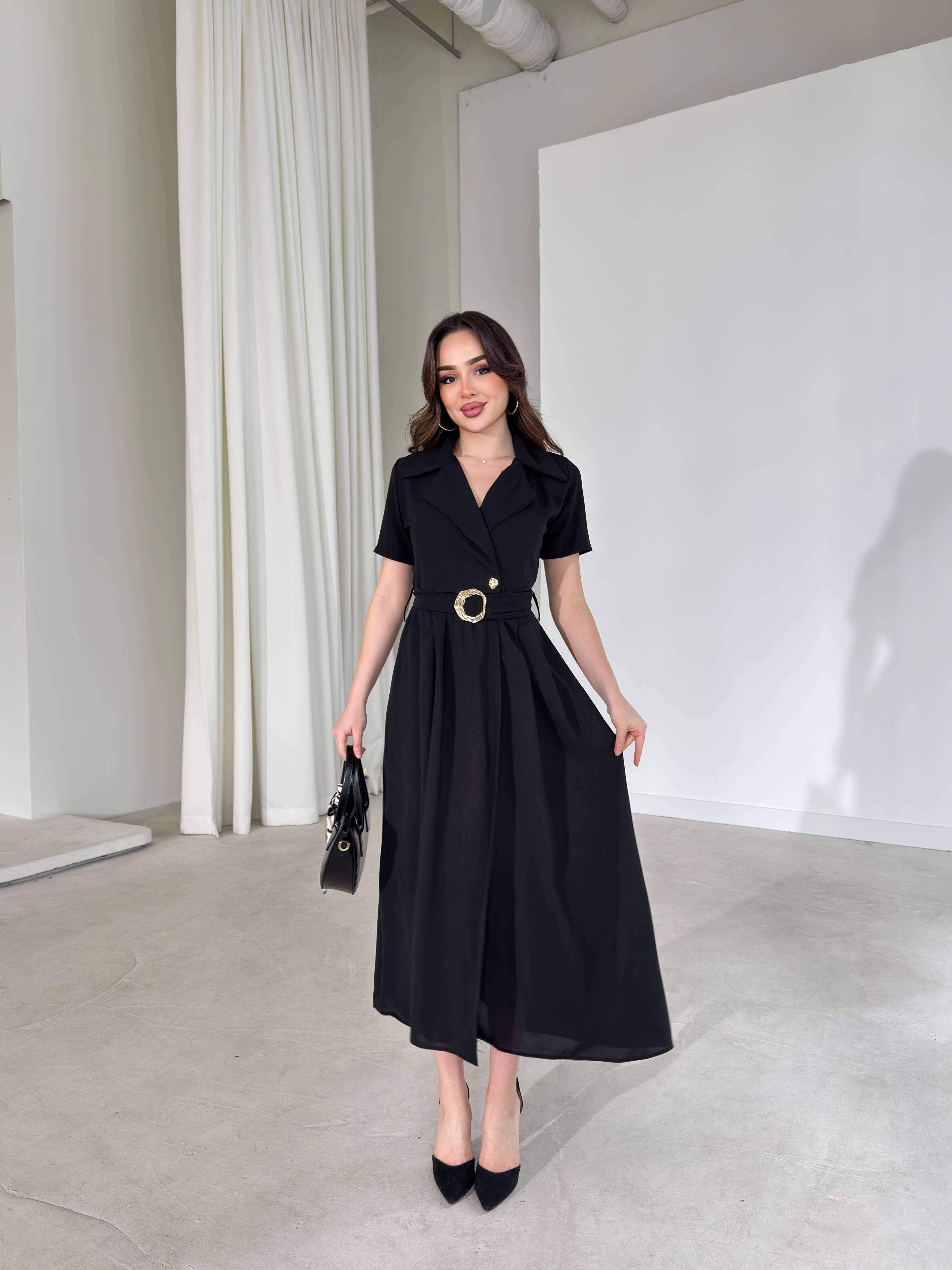 Kemerli Kruvaze Yaka Kristina Siyah Kadın Elbise 26Y150 (26Y150)