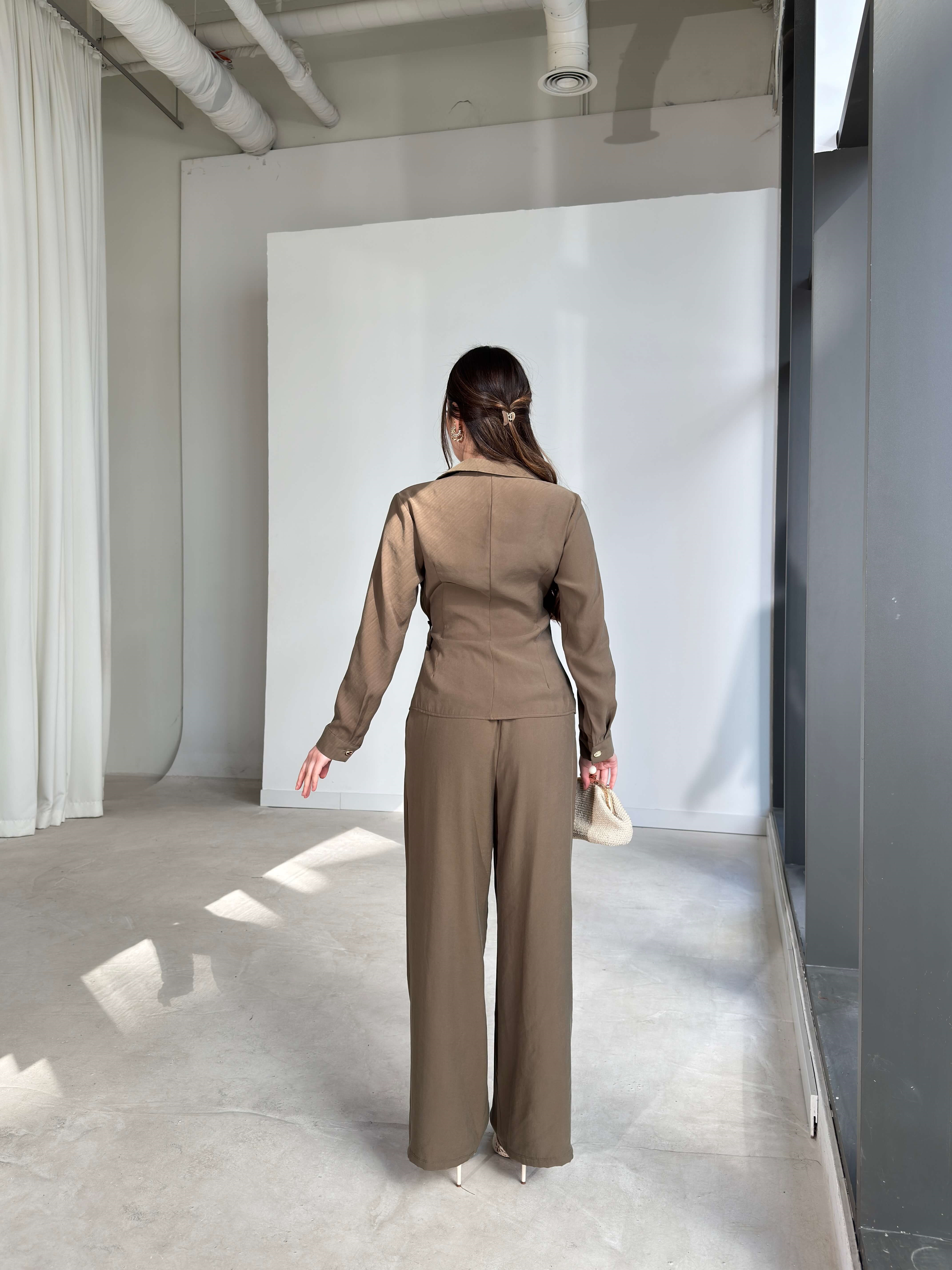 Kruvaze Yaka İp Bağlamalı Aksesuarlı Savle Haki Kadın İkili Takım 26Y102 (26Y102)