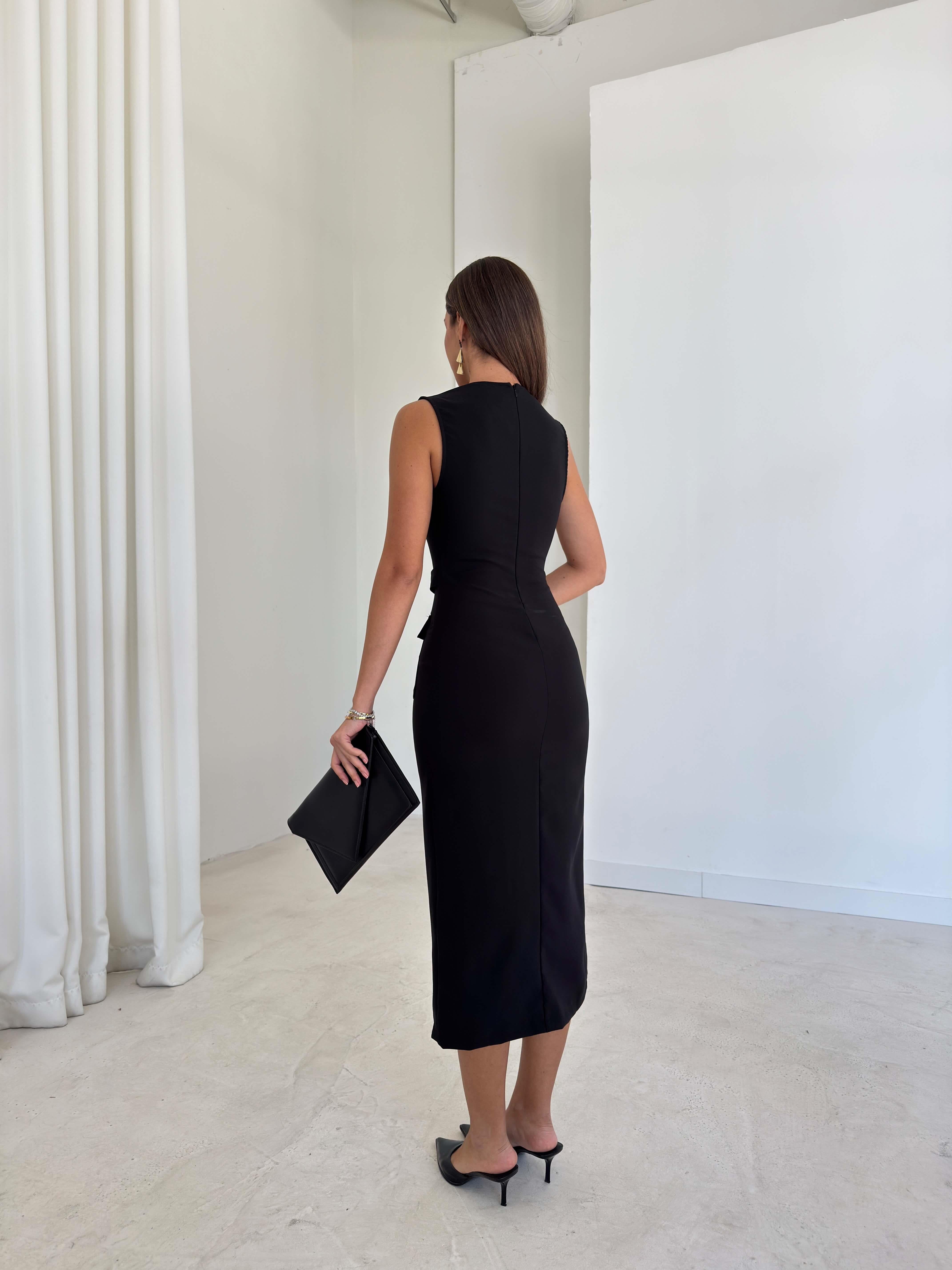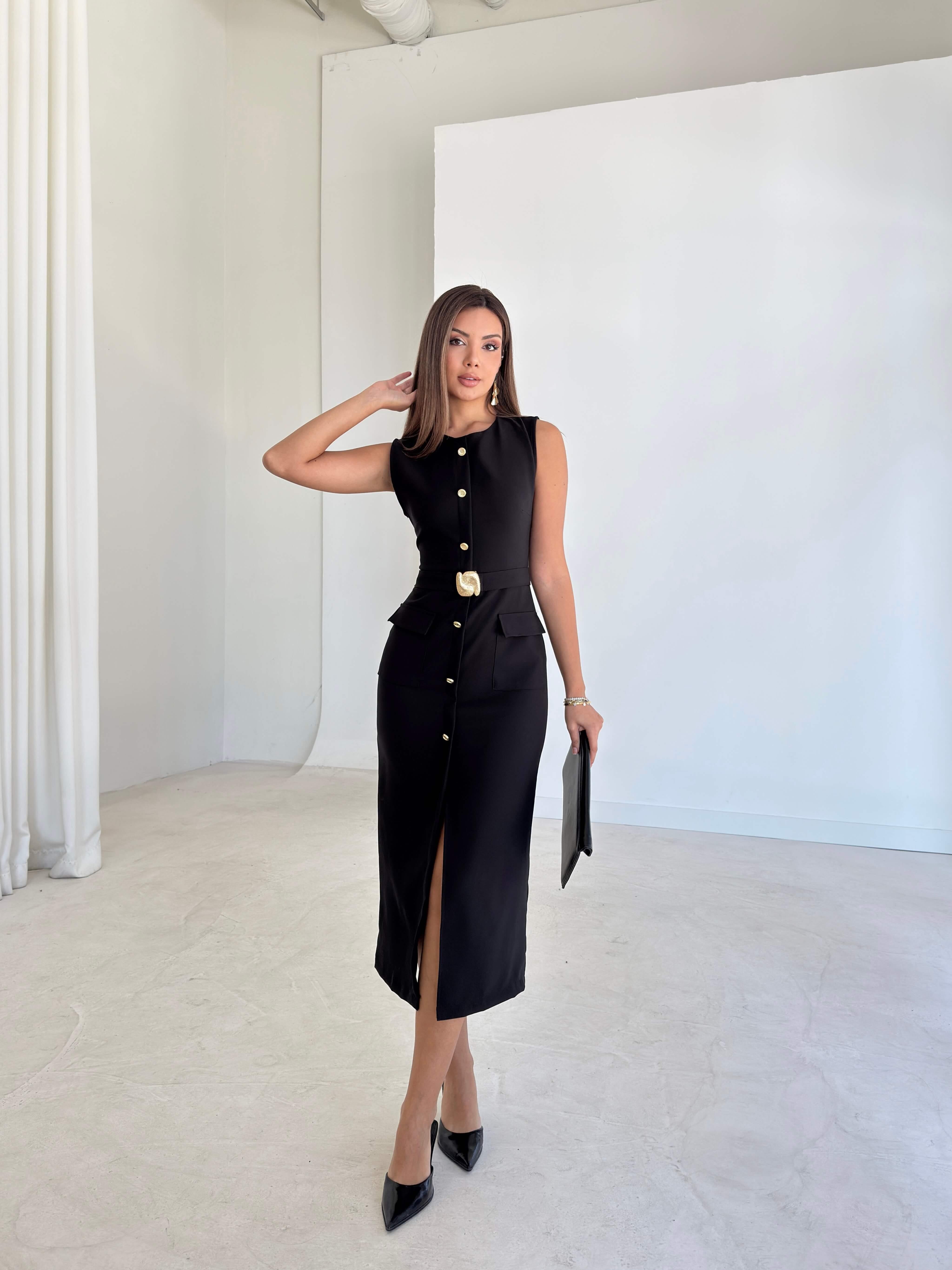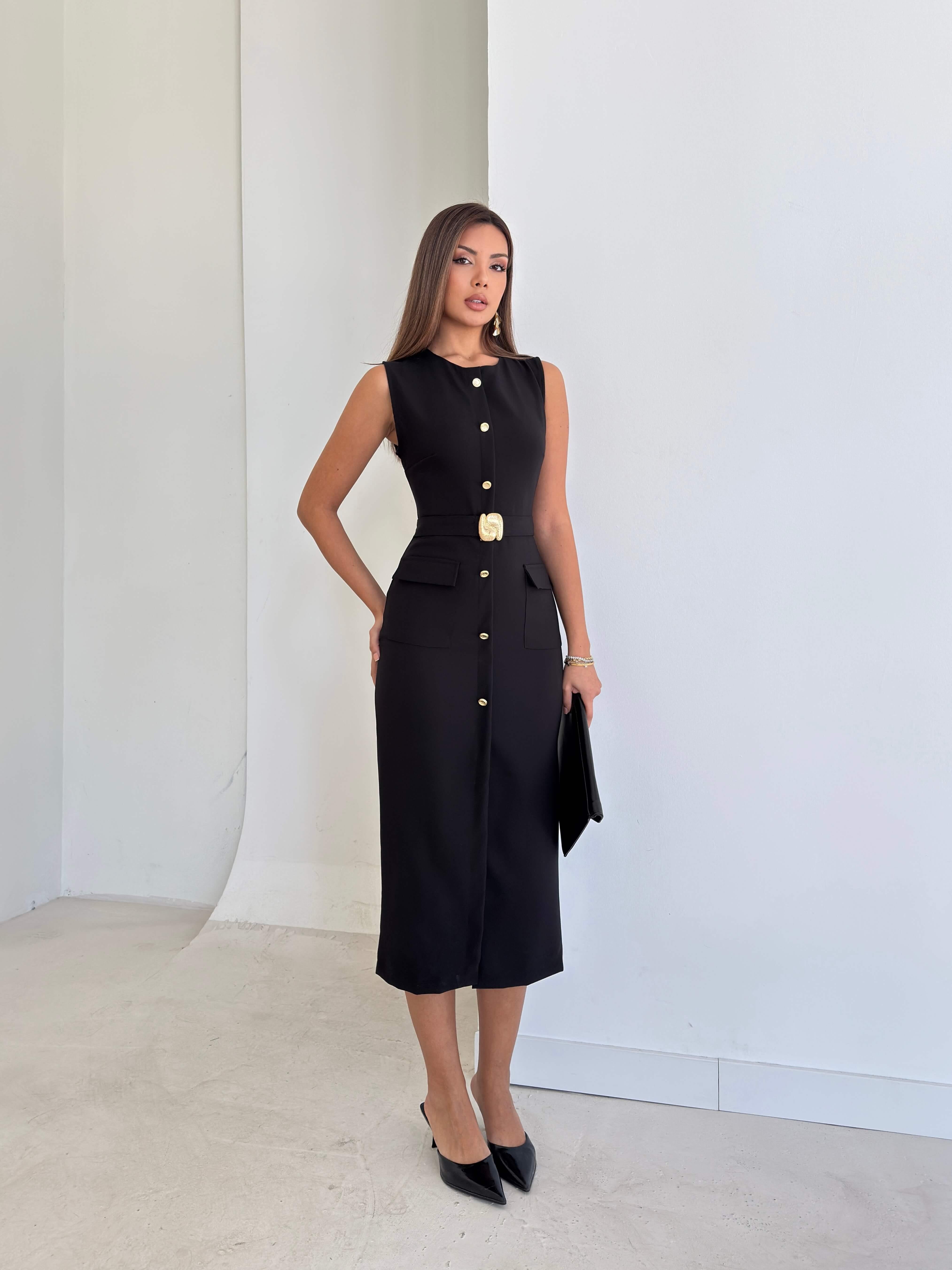 Önü Düğmeli Aksesuarlı Cep Detaylı Benjamin Siyah Kadın Elbise 26K213 (26K213)
