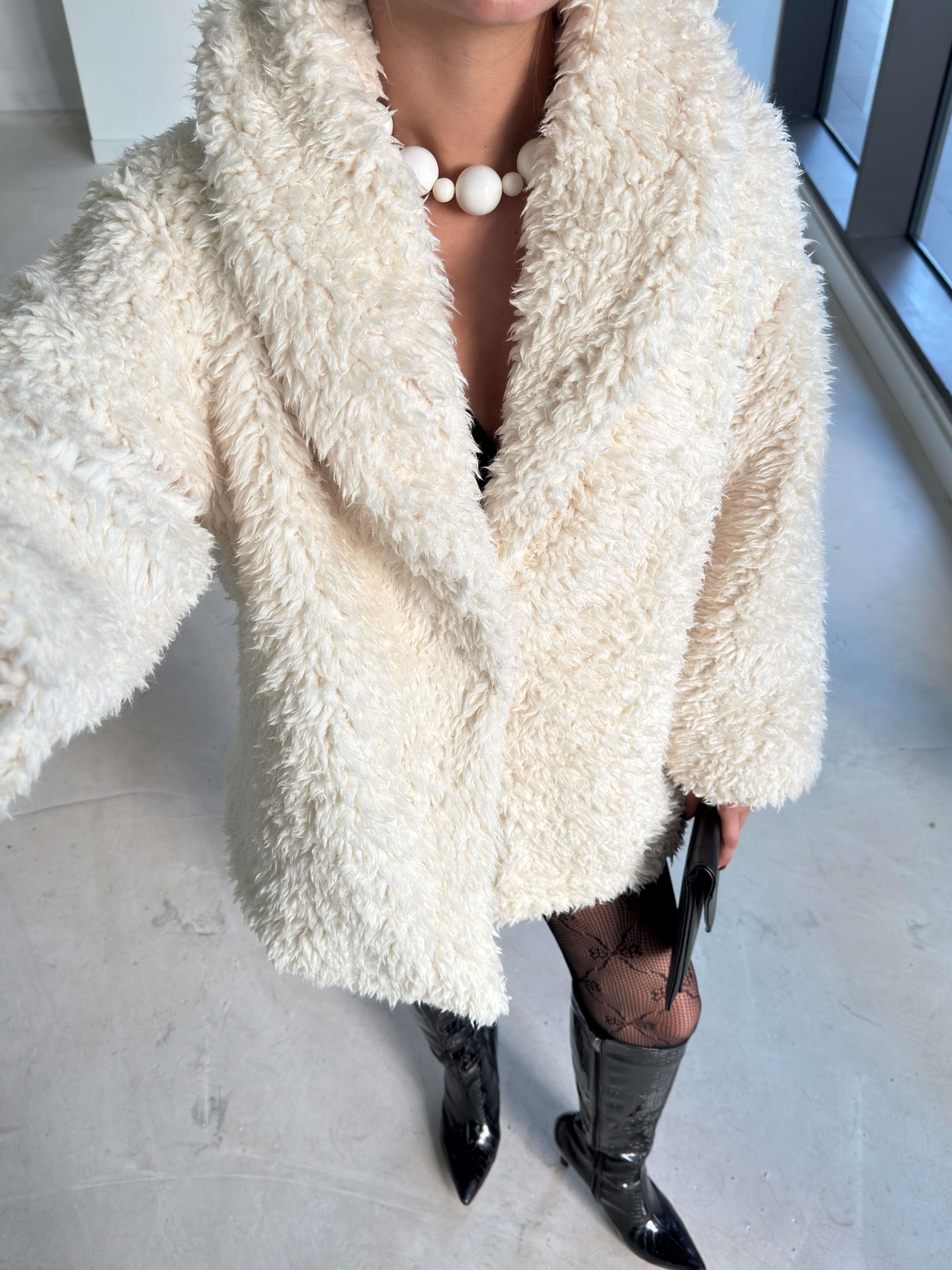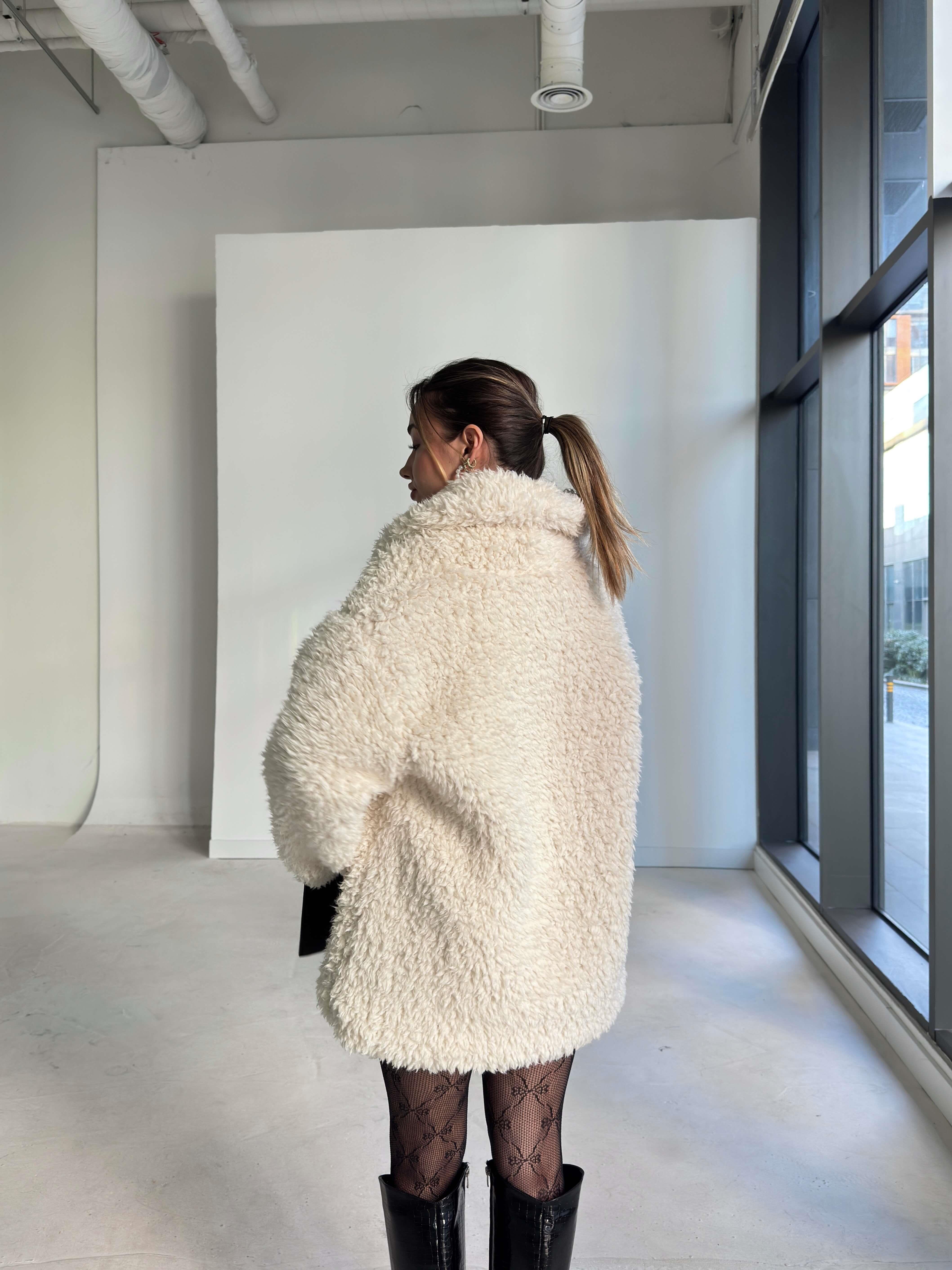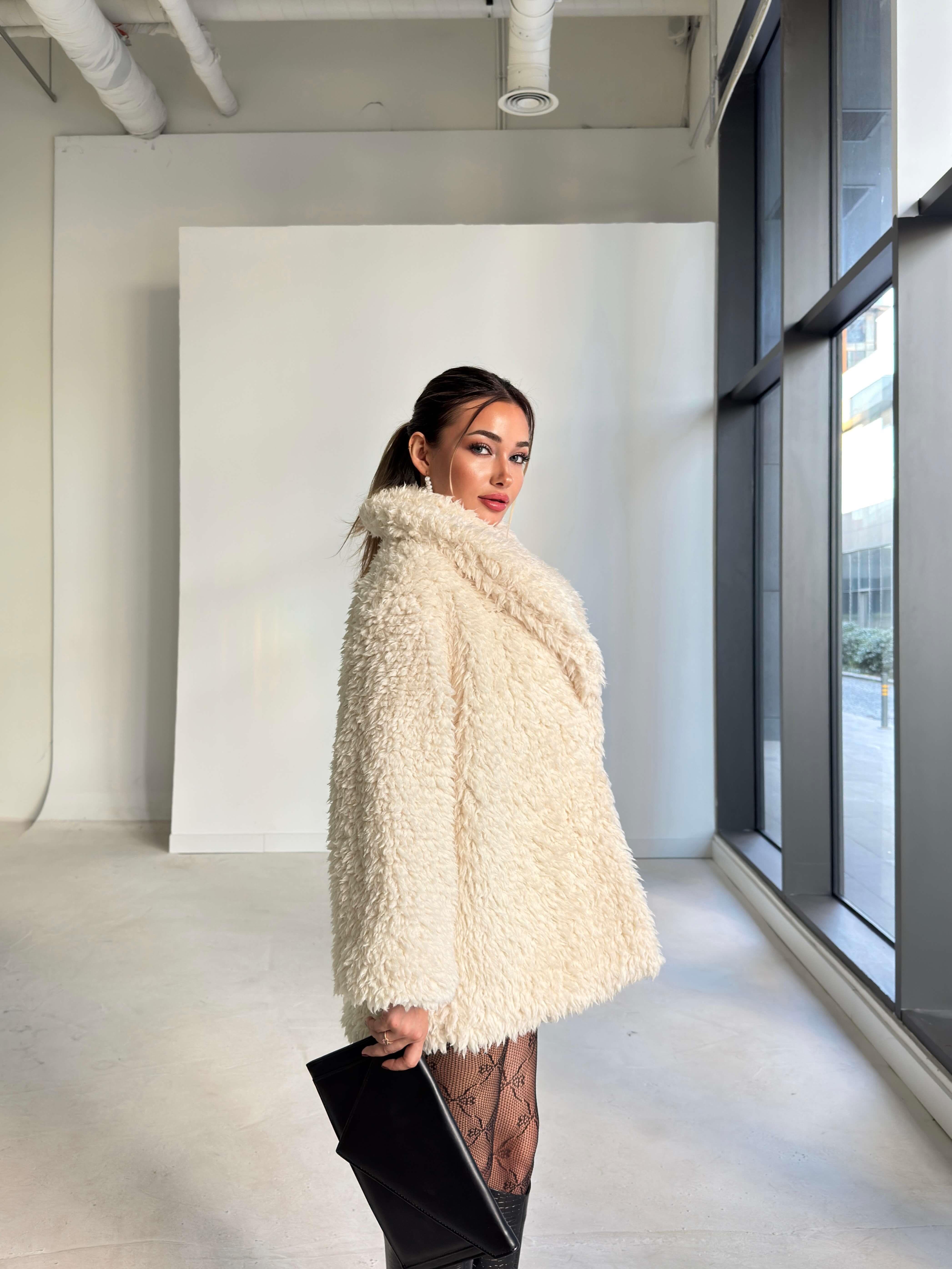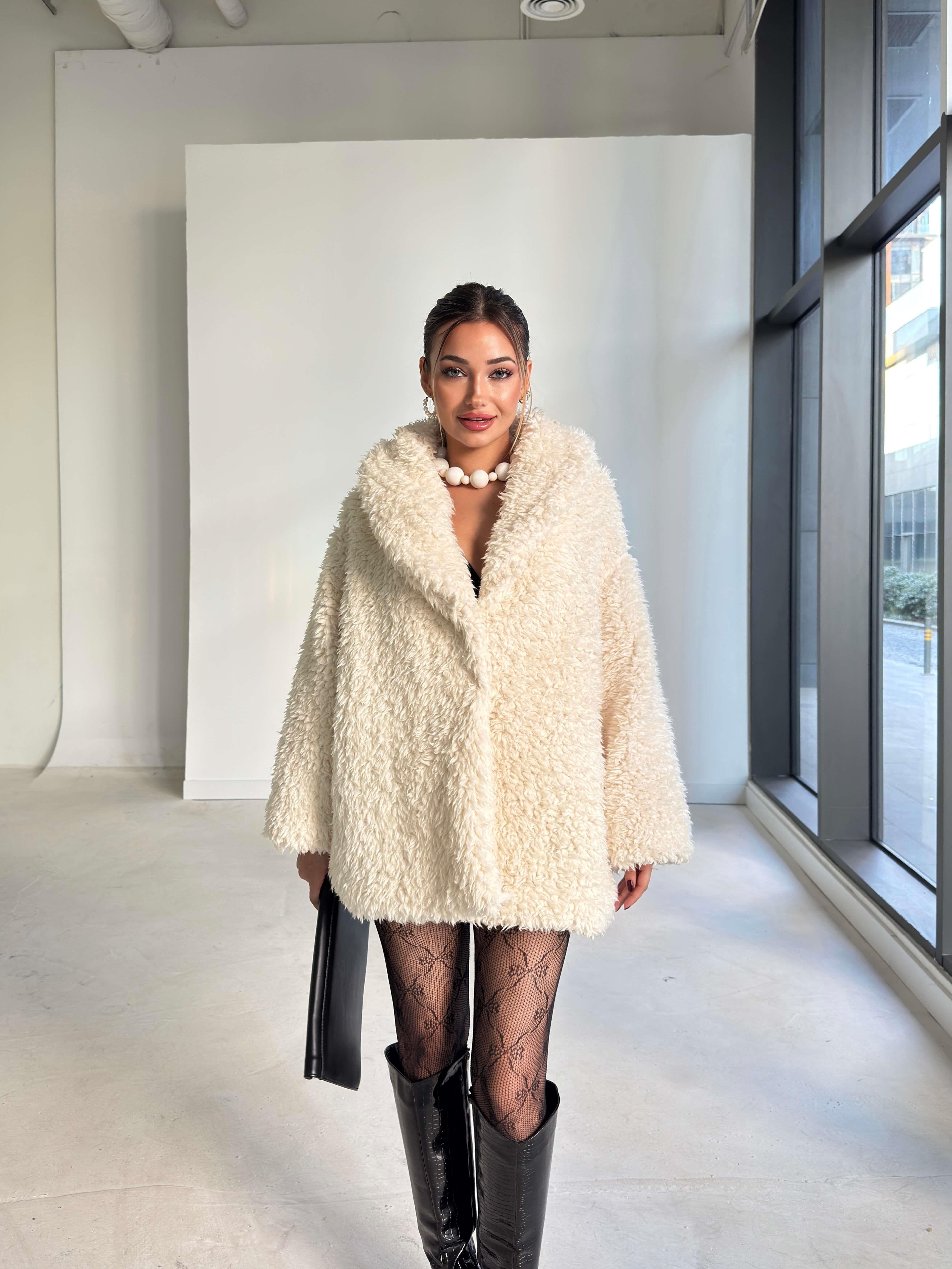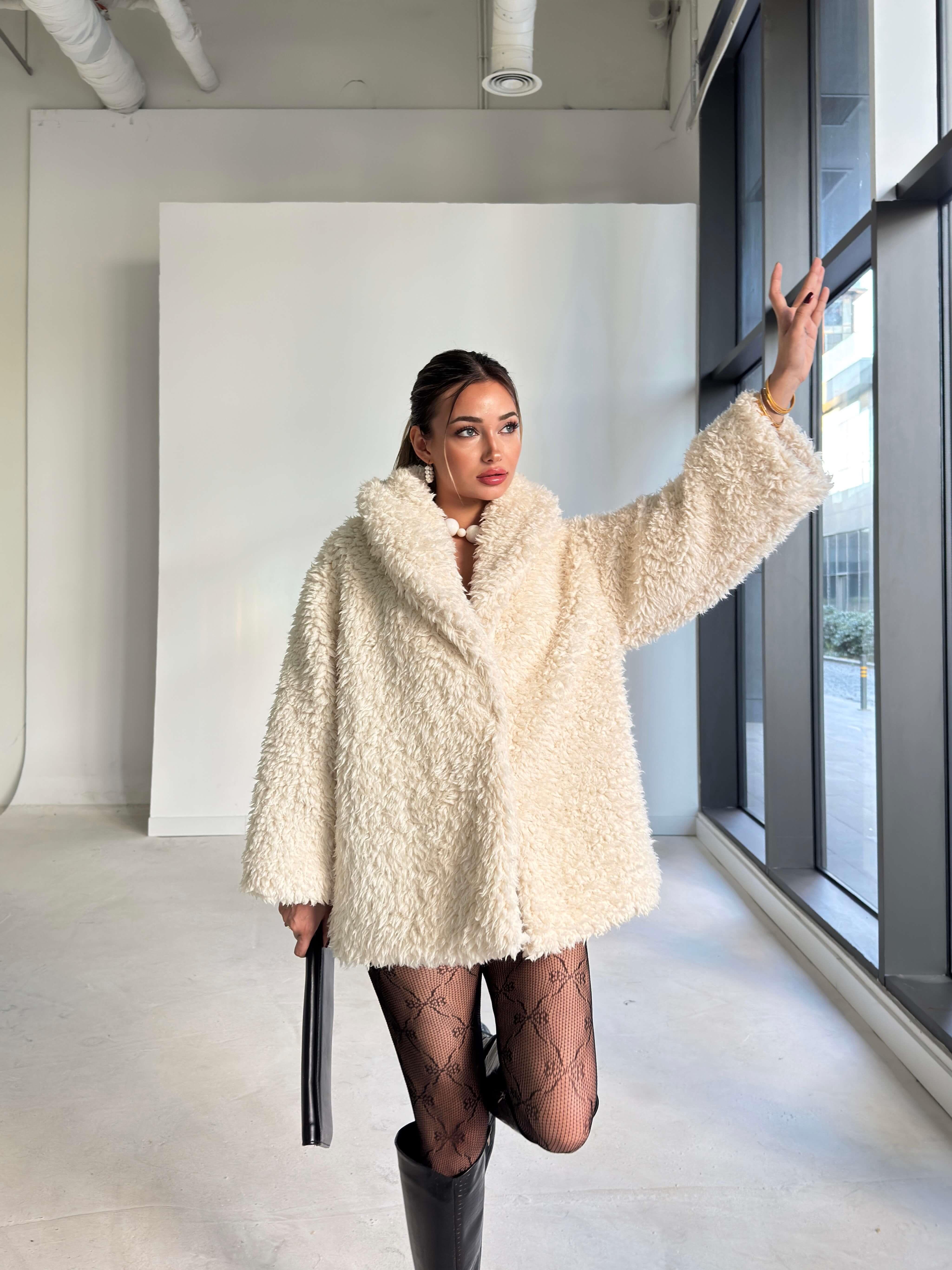 Önü Kapamalı Peluş Pevrida Ekru Kadın Kürk Mont 26K144 (26K144)