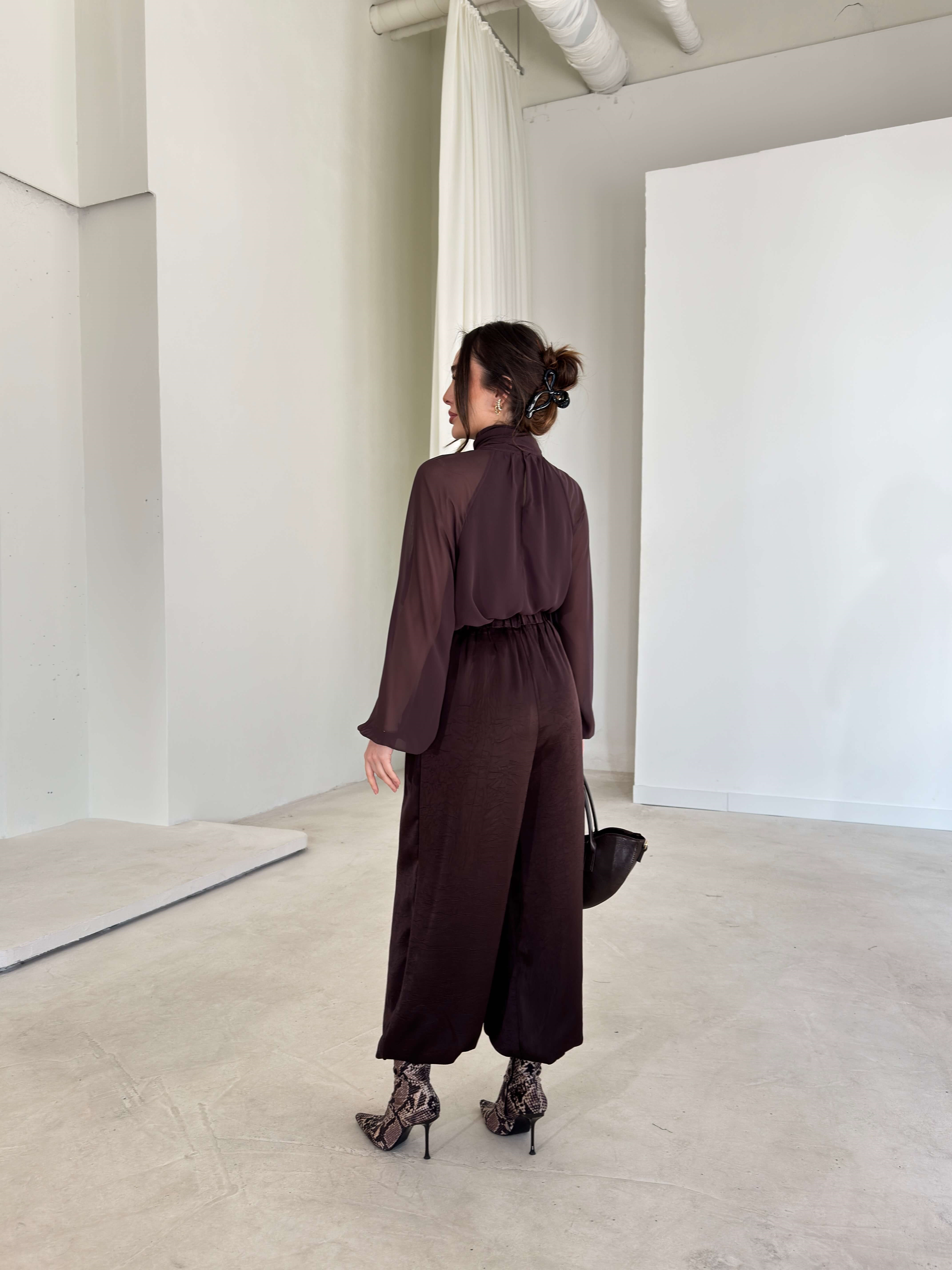Paçası Düğmeli Beli Lastikli Vorum Kahve Kadın Pantolon 26Y047 (26Y047)