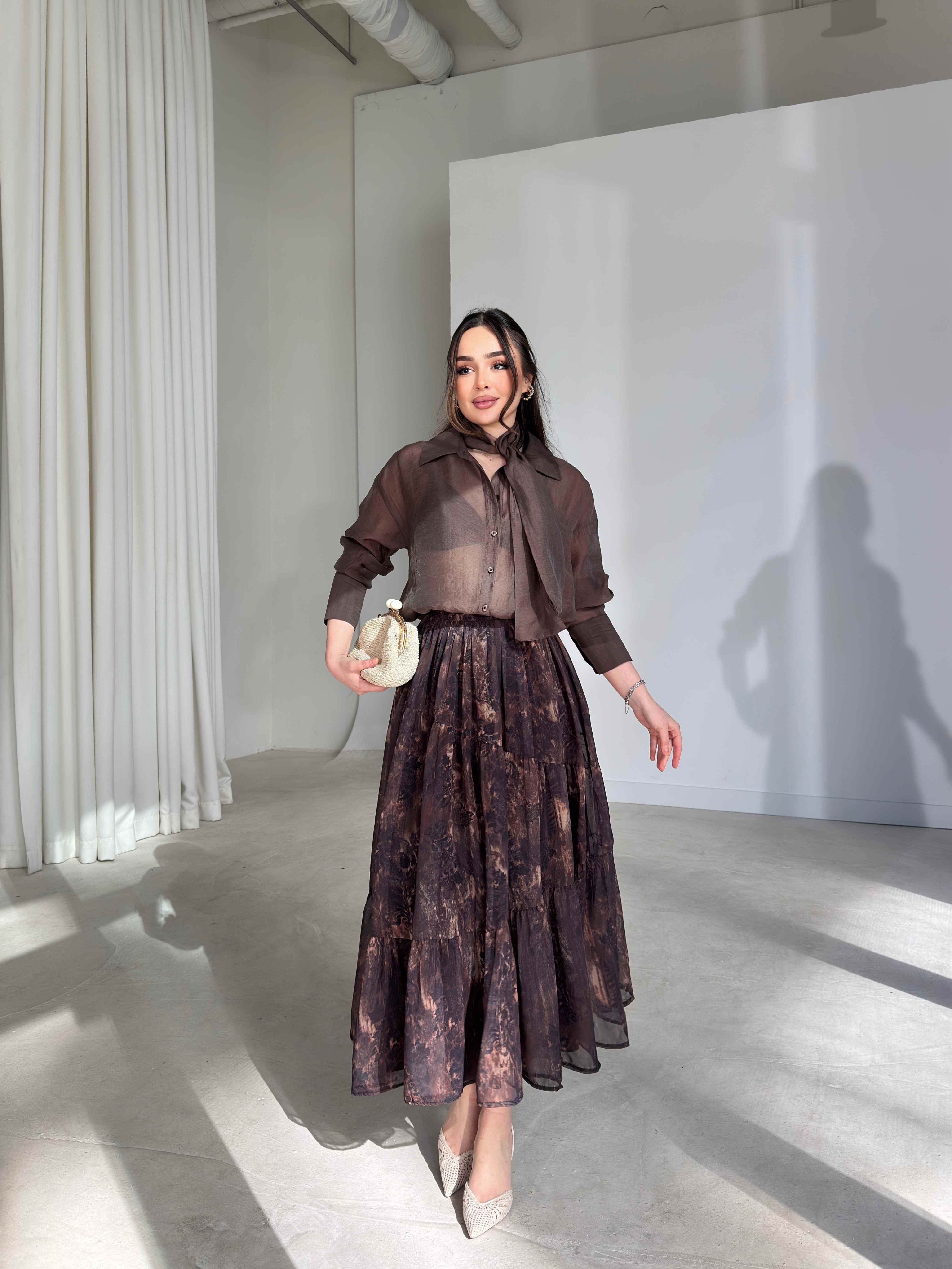 Şallı Transparan Olver Kahve Kadın Gömlek 26Y077 (26Y077)