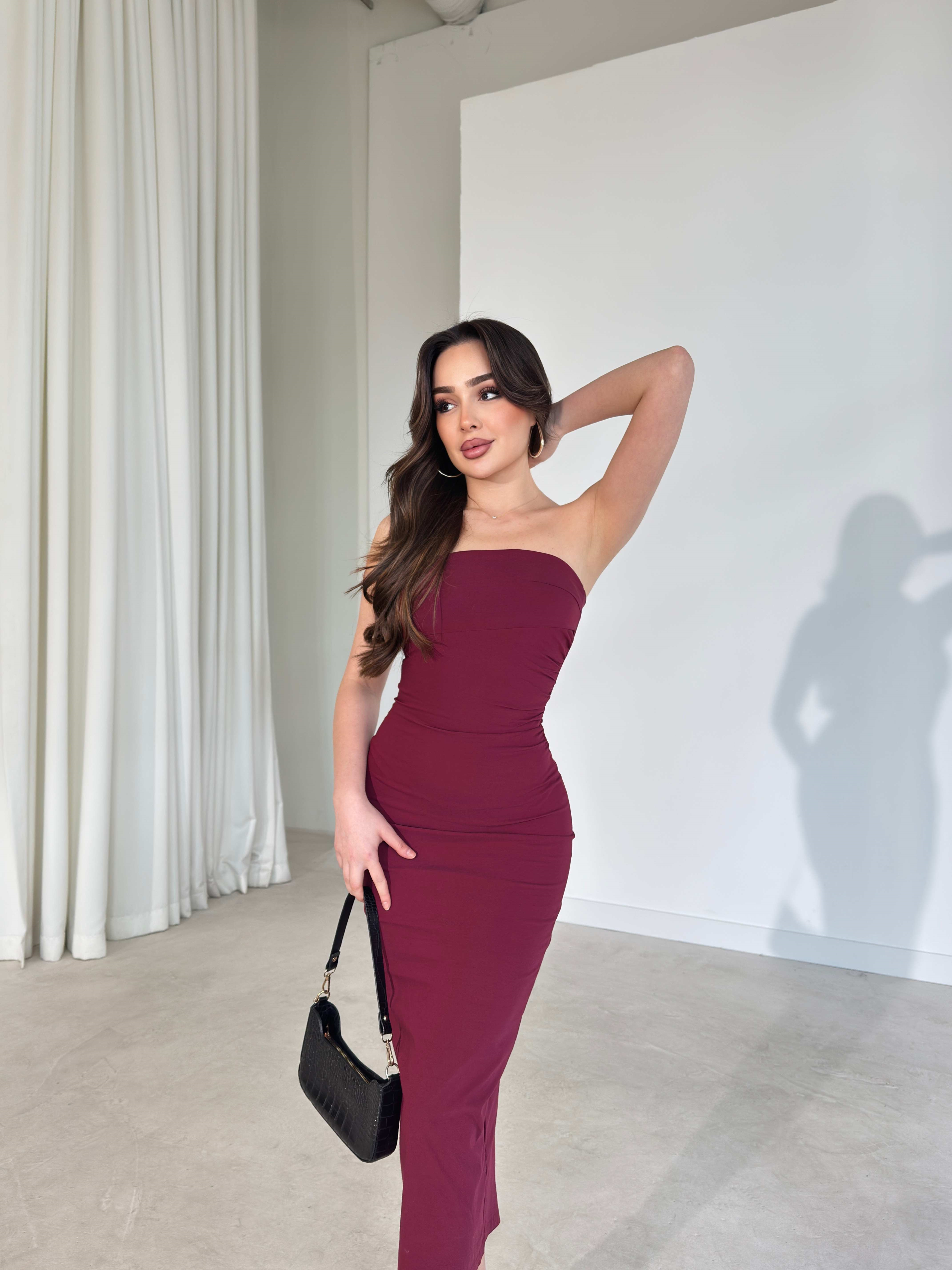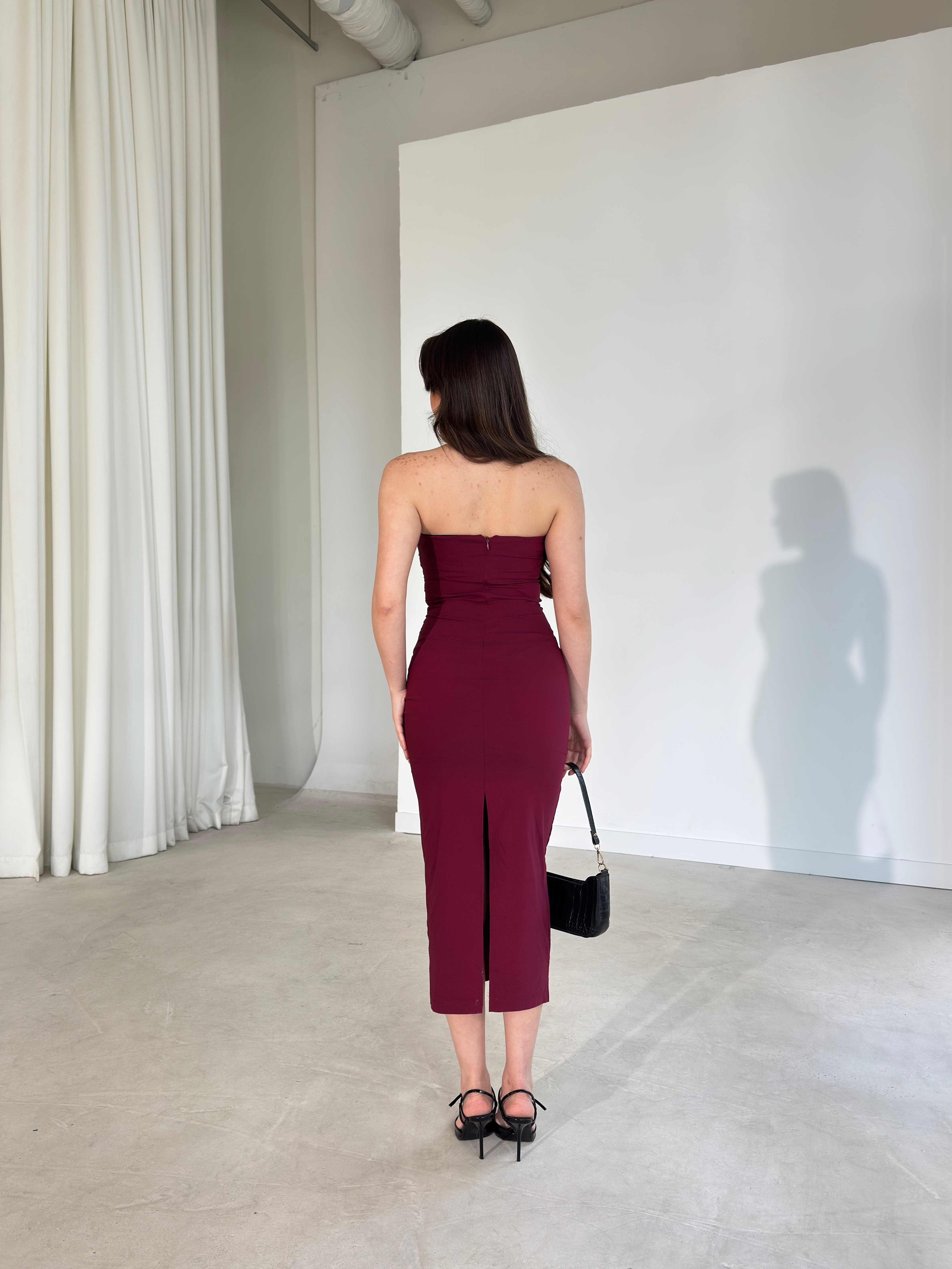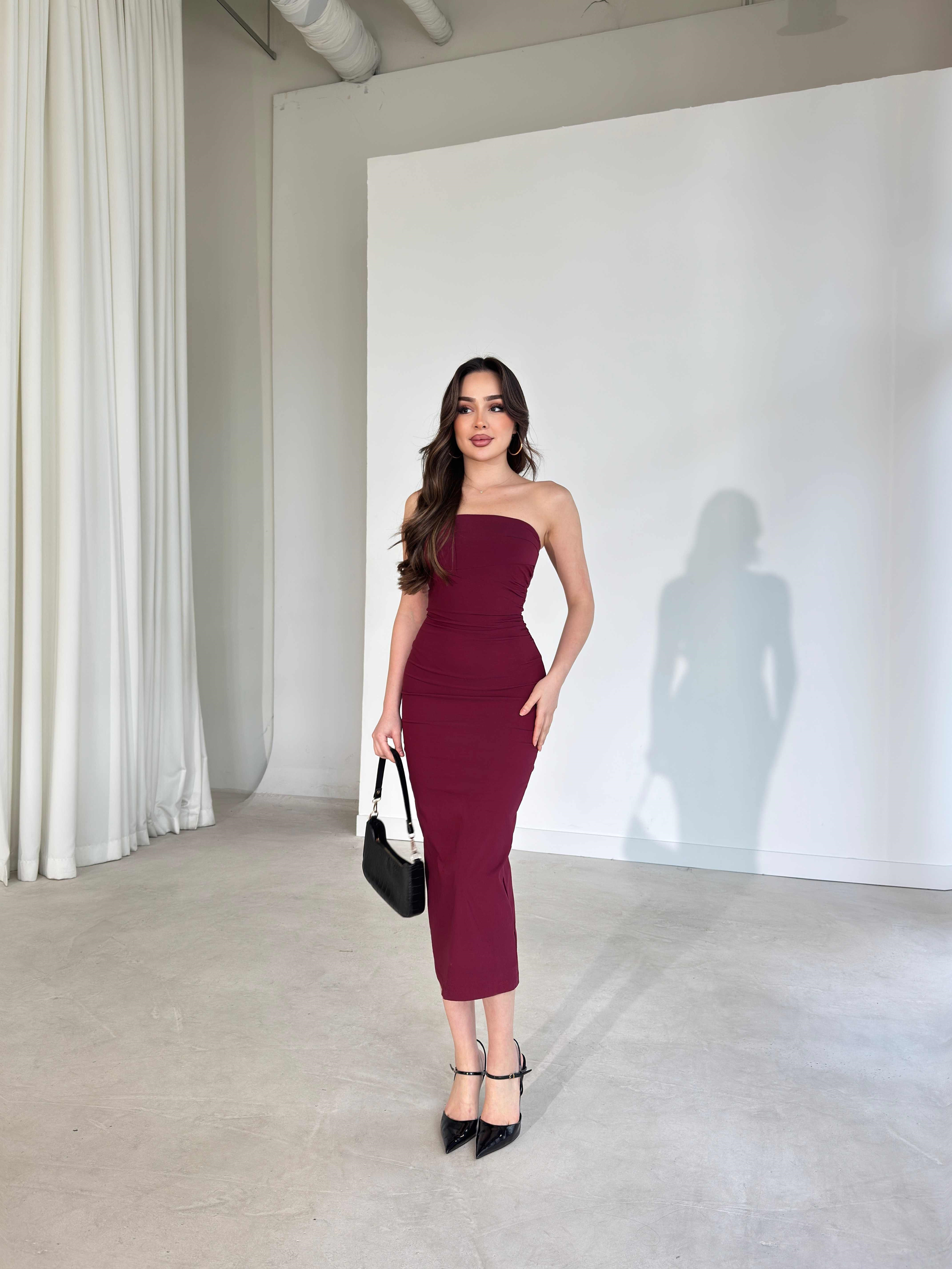 Straplez Yaka Slim Midi Boy Bordo Aracel Kadın Elbise 26Y167 (26Y167)