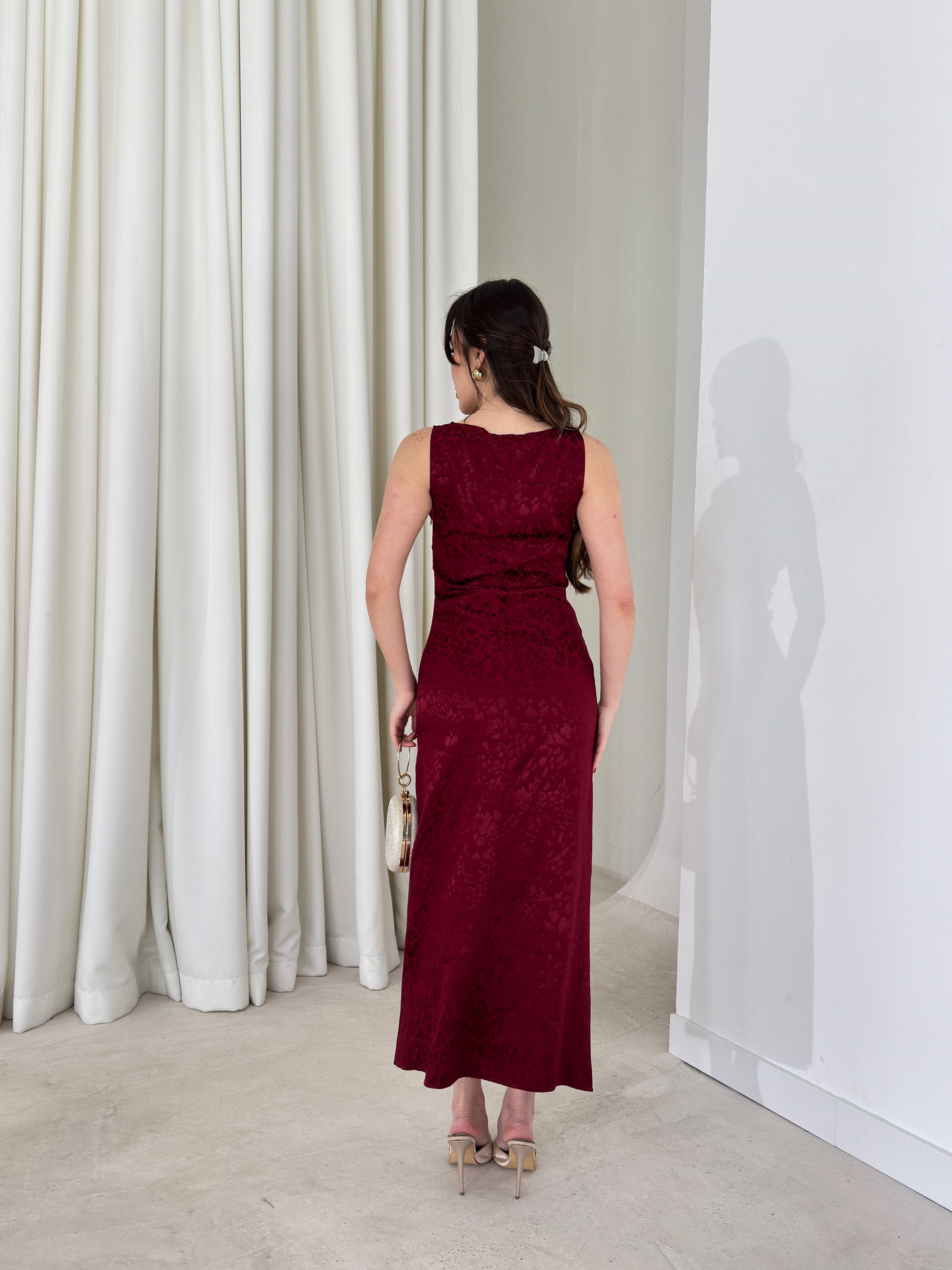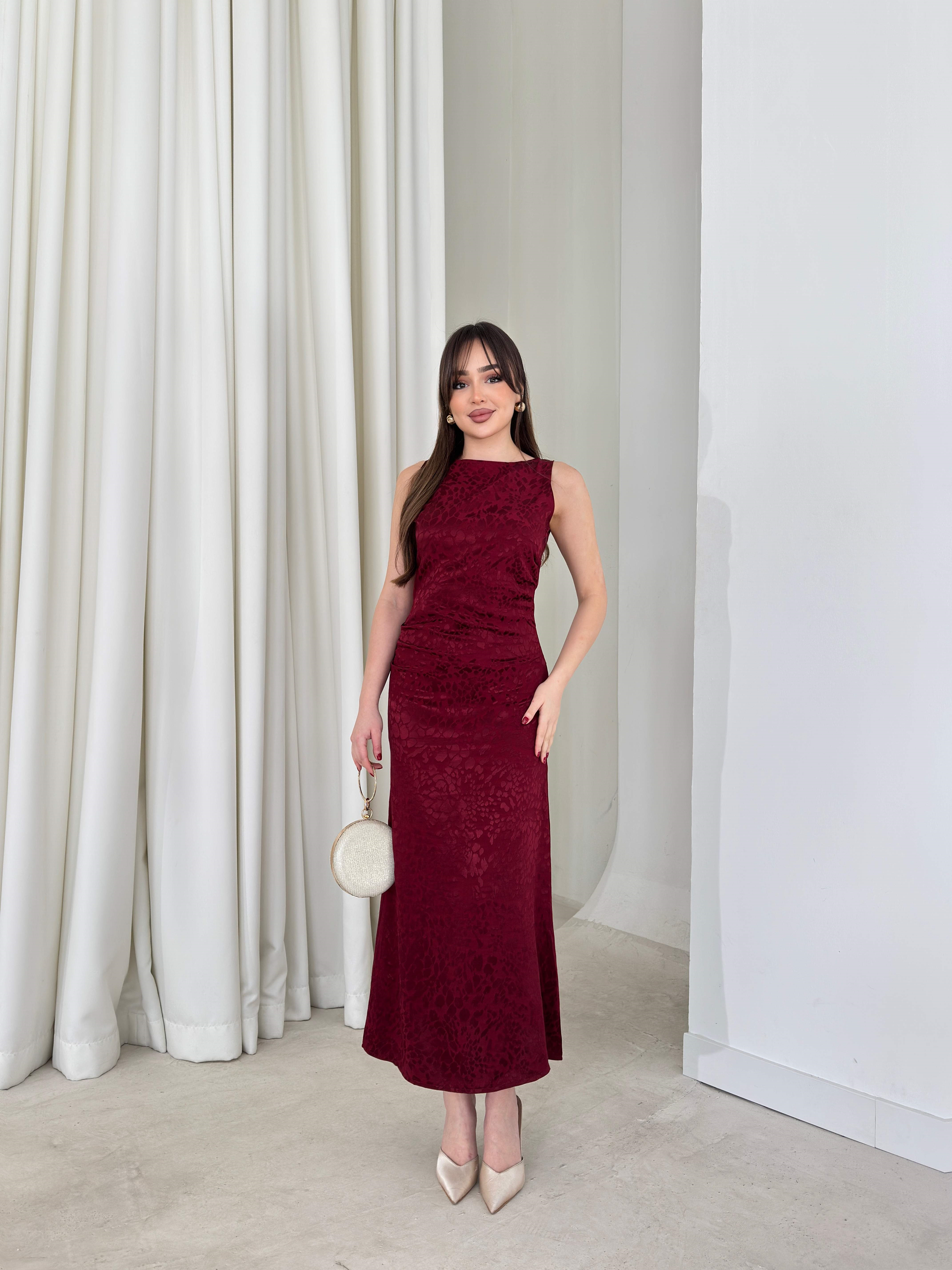 Yanları Drape Detaylı Sıfır Kol Midi Boy Bordo Aidenn Kadın Elbise 26Y134 (26Y134)