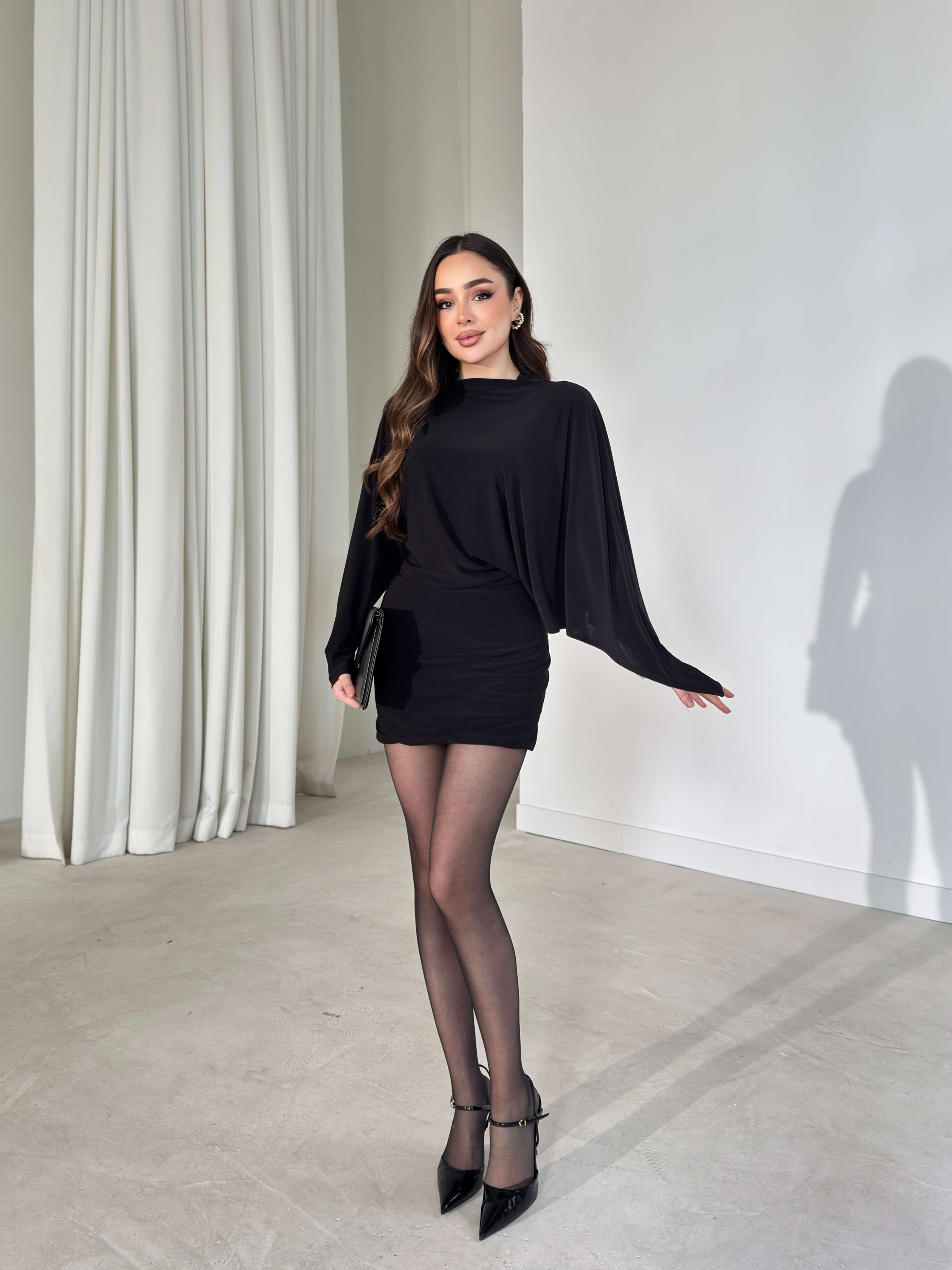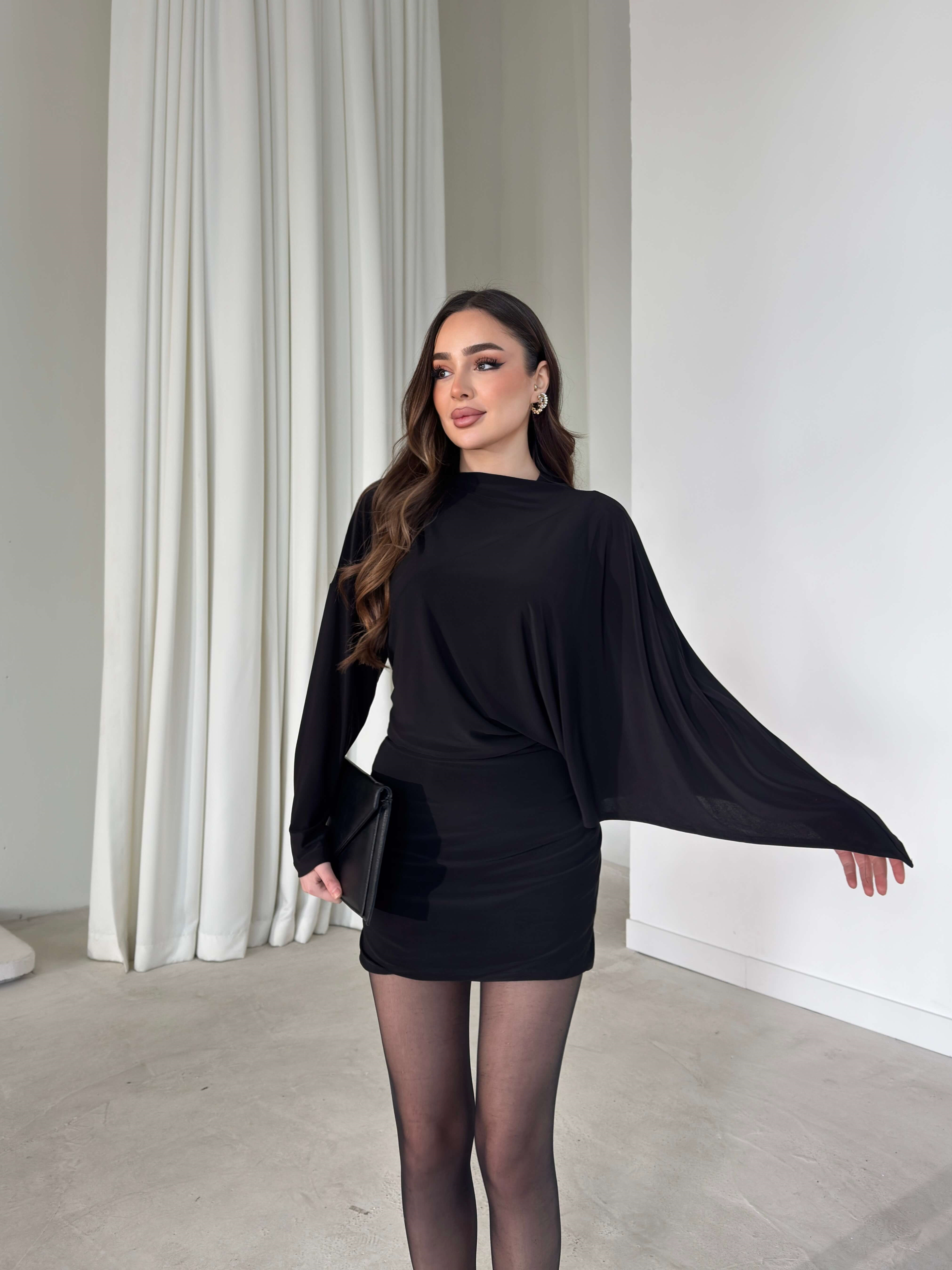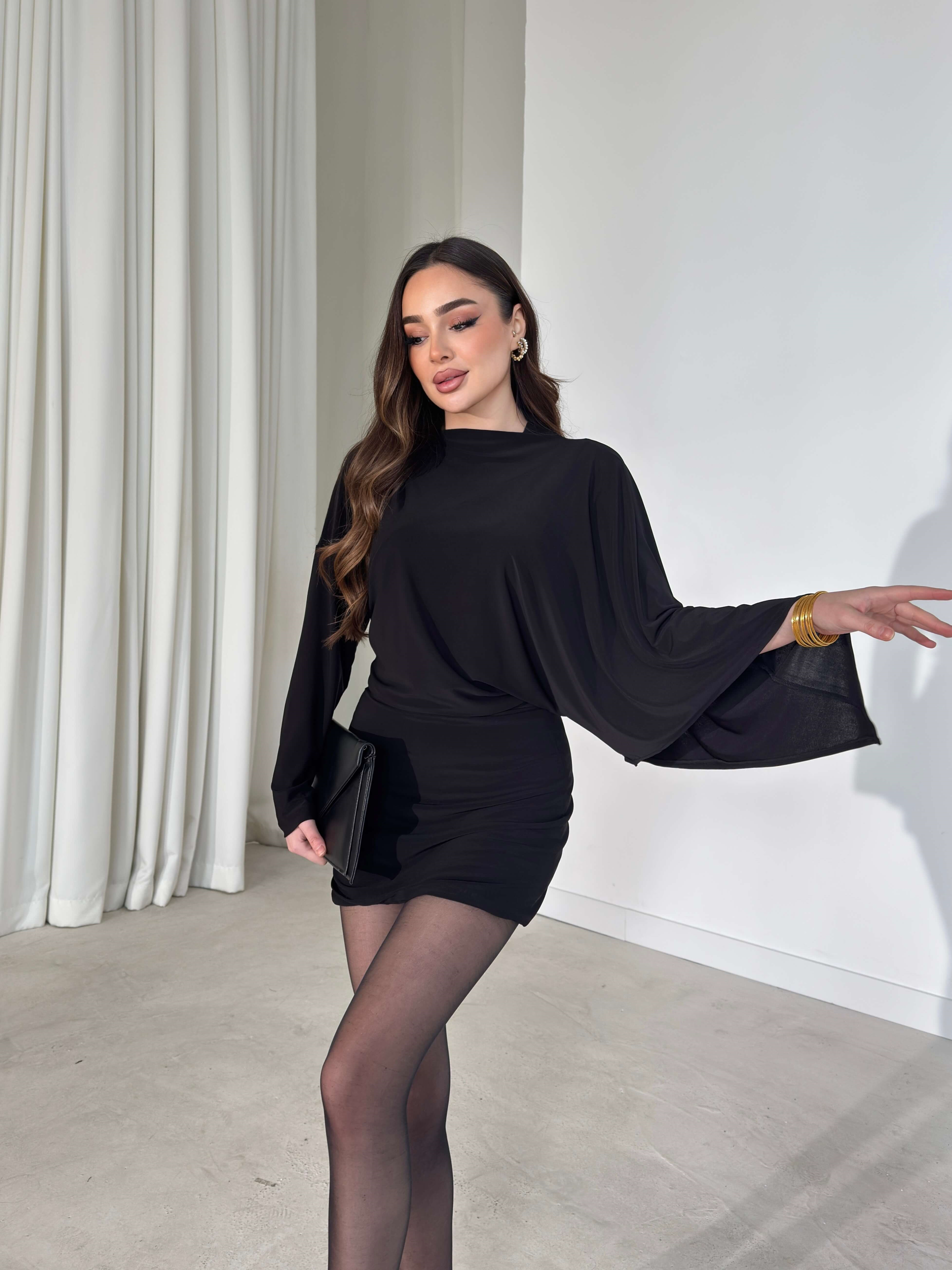 Yarasa Kol Belden Oturtmalı Varne Siyah Kadın Elbise 26Y094 (26Y094)