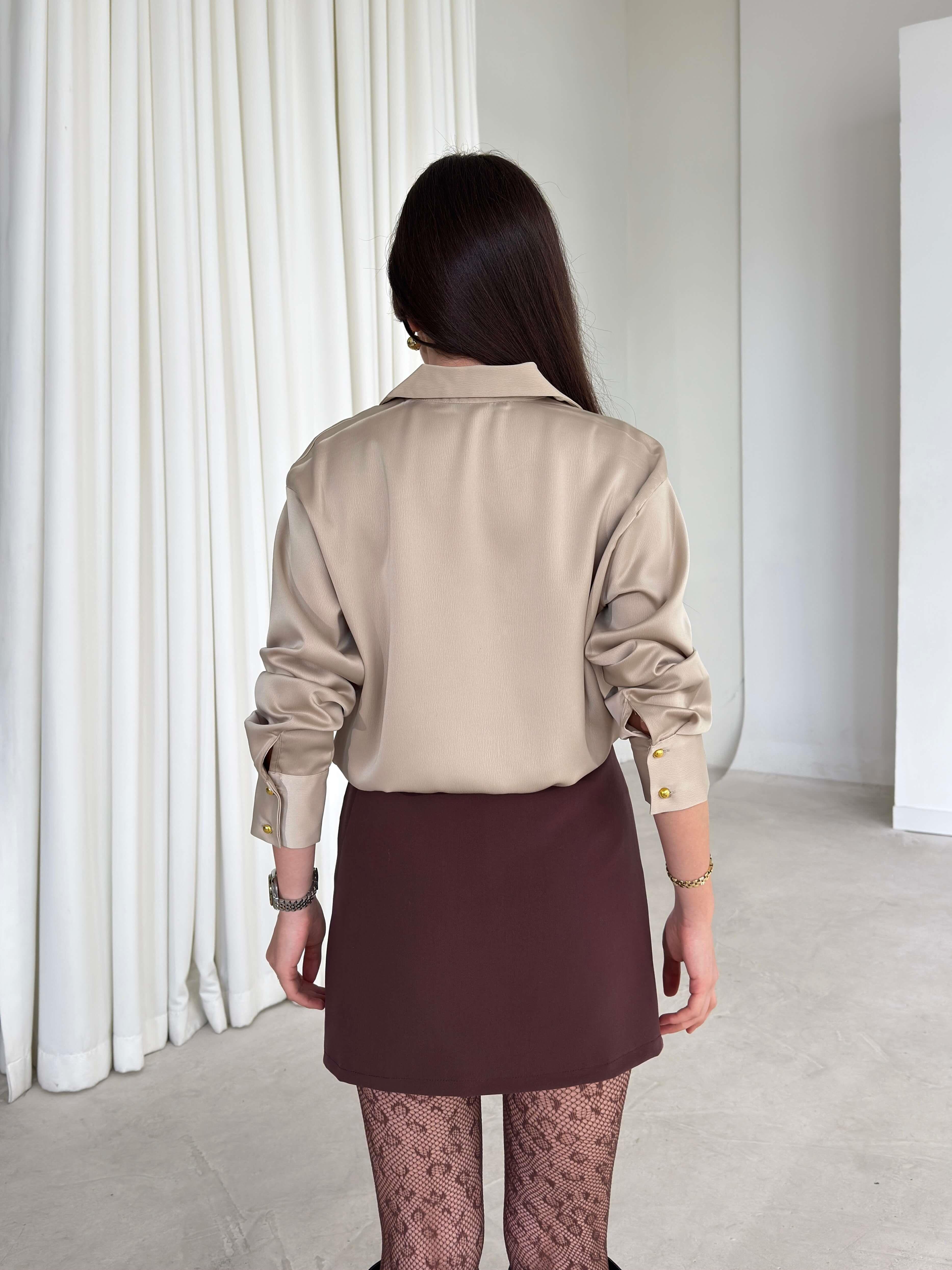 Yırtmaçlı Mini Arverna Kahve Kadın Şort Etek 26K384 (26K384)