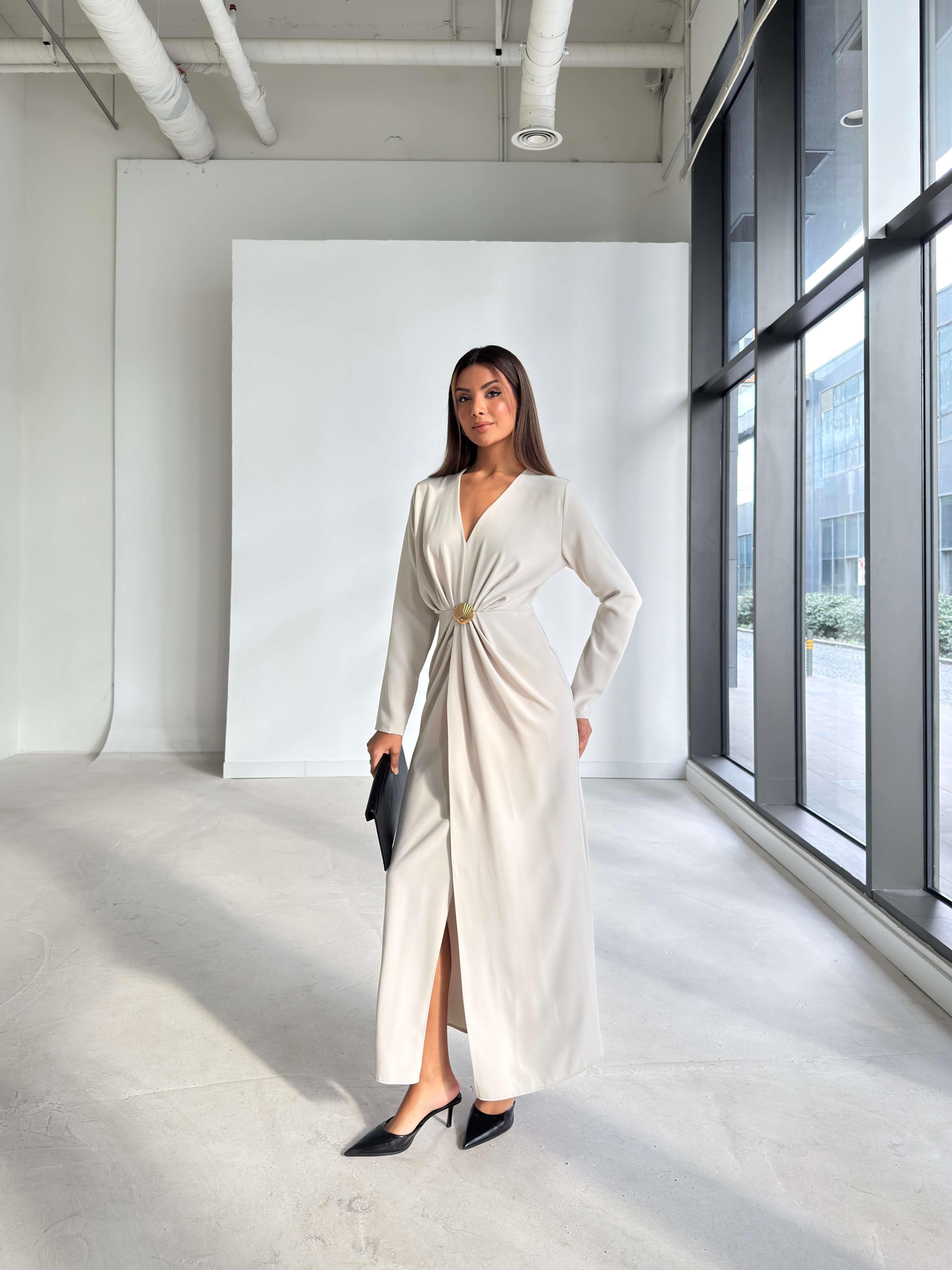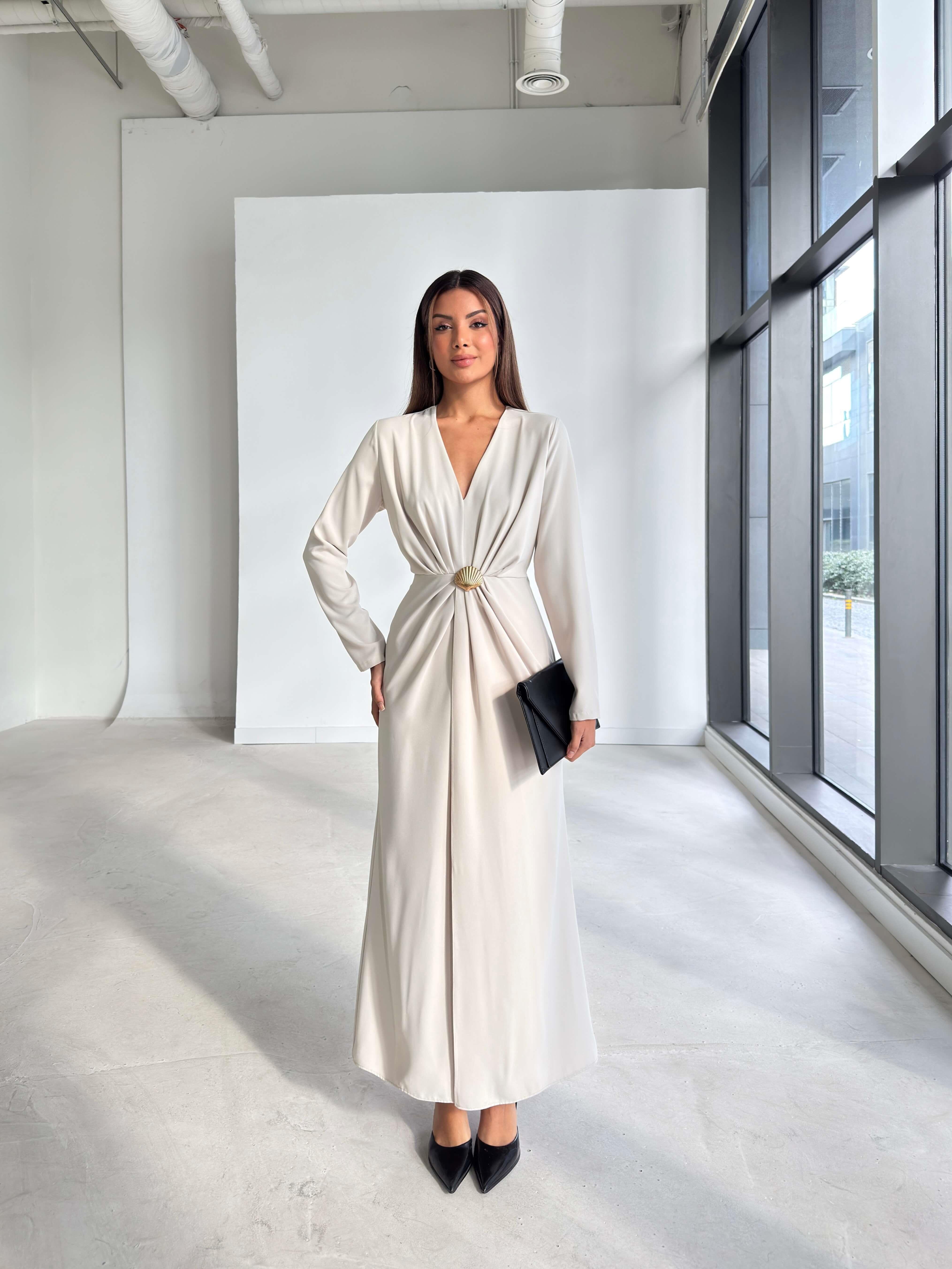 Aksesuarlı V Yaka Berila Taş Kadın Elbise 26K191 (26K191)