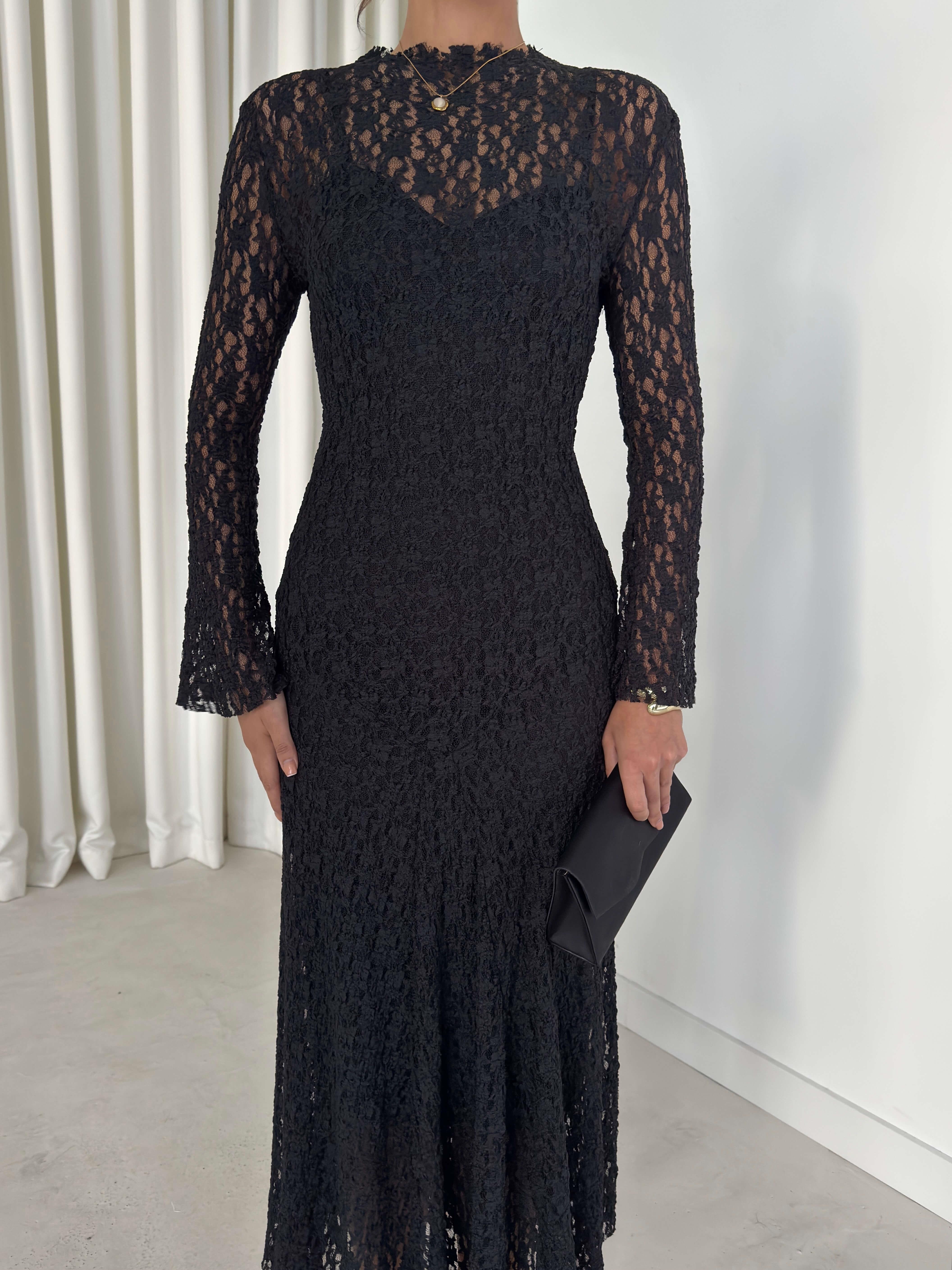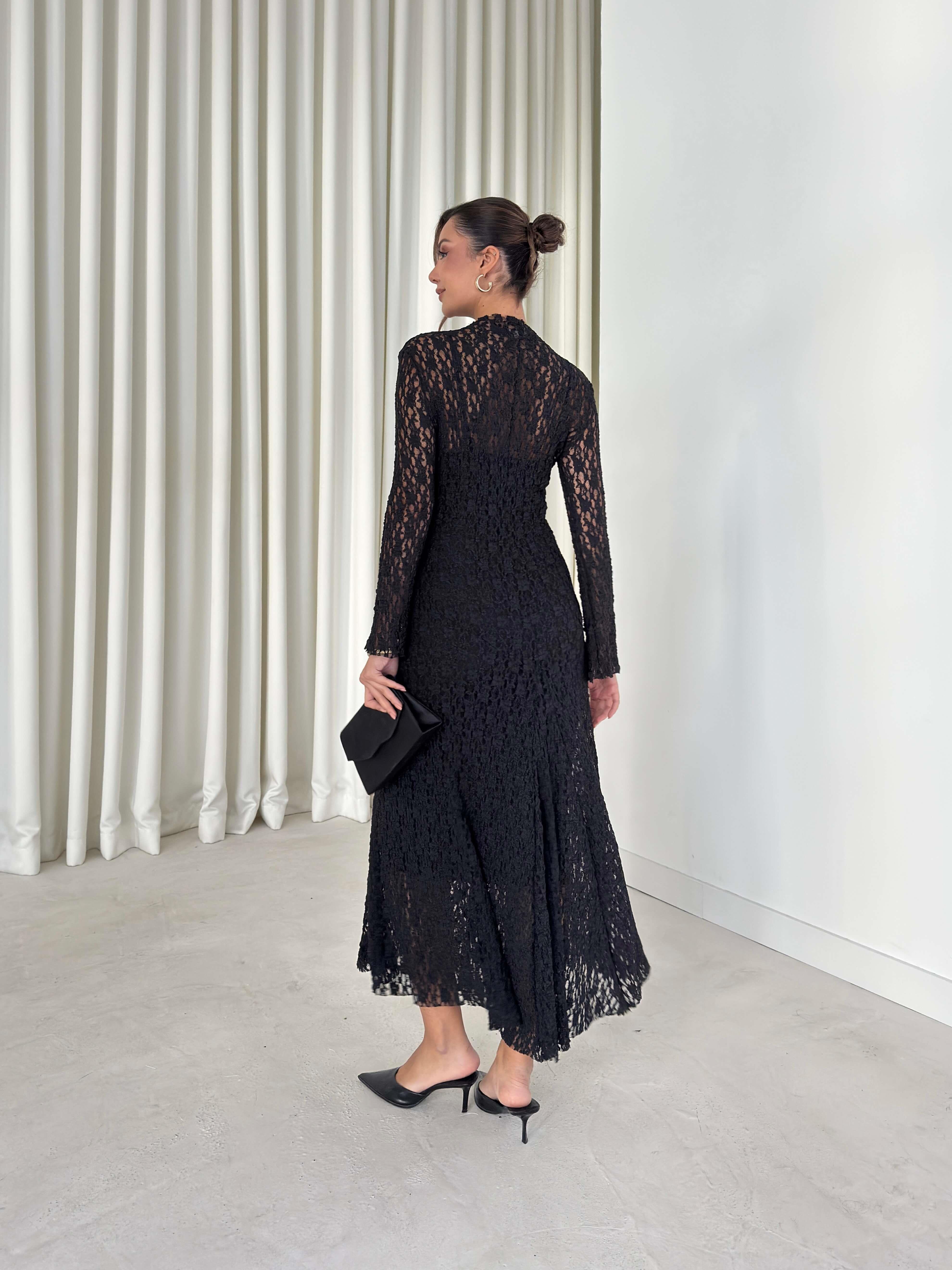 Astarlı Yelpaze Kol Jadon Siyah Kadın Dantelli Elbise 26K256 (26K256)