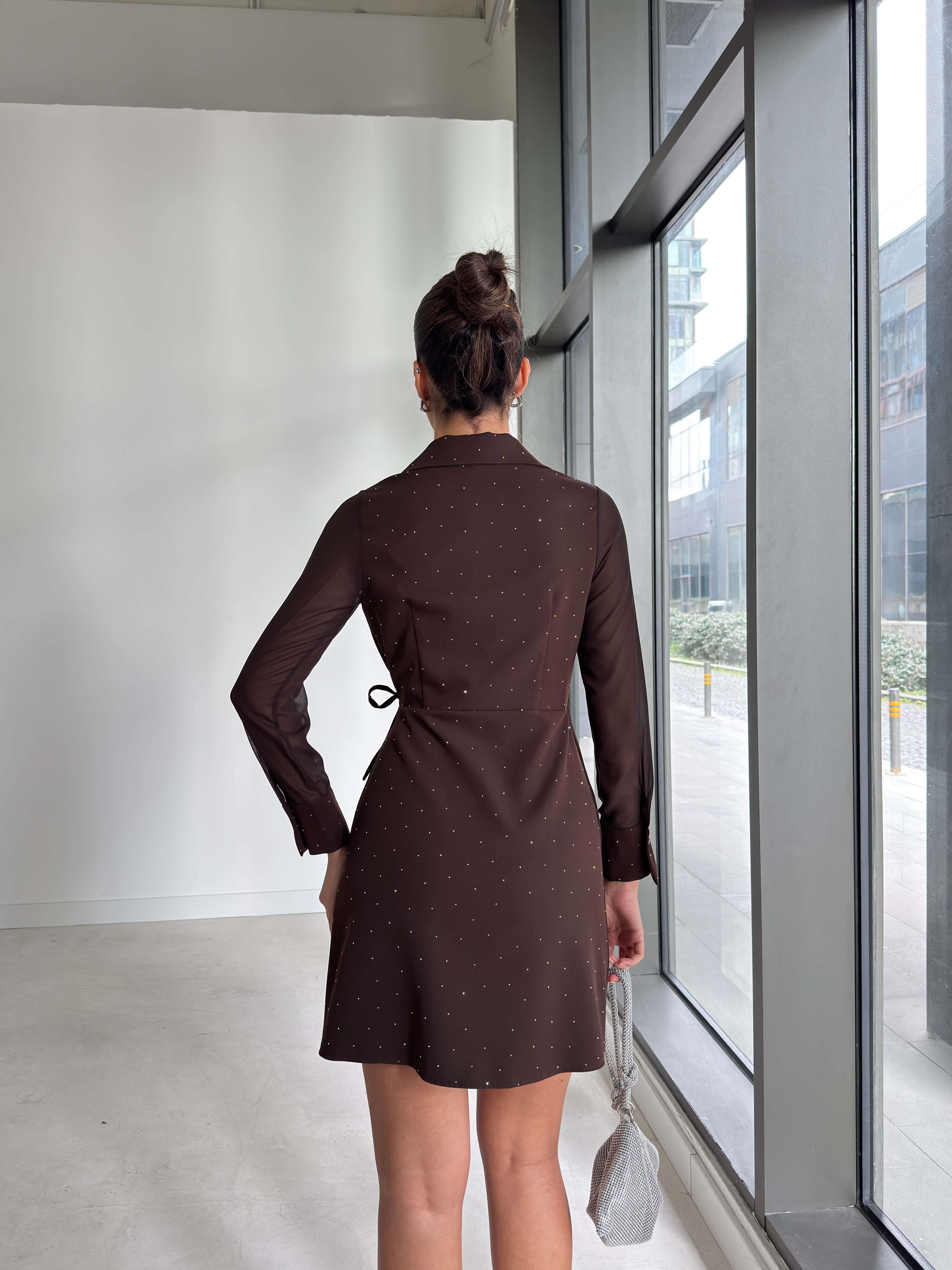 *Yandan bağlamalı, Taşlı, Kolları tül, Karuvaze yaka