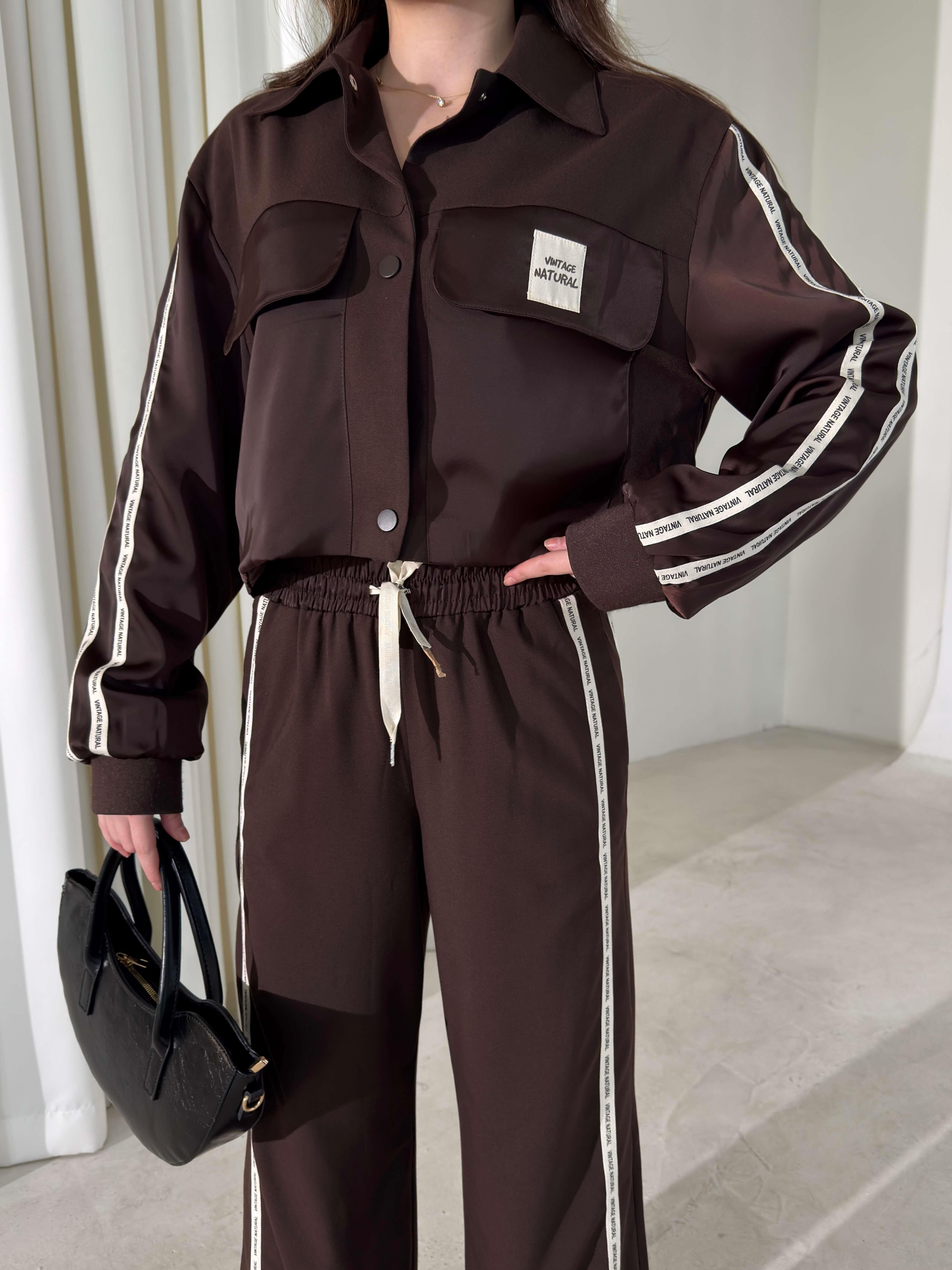 Cepli Yazı Detaylı Garnili Kahve Kadın İkili Takım 26K405 (26K405)