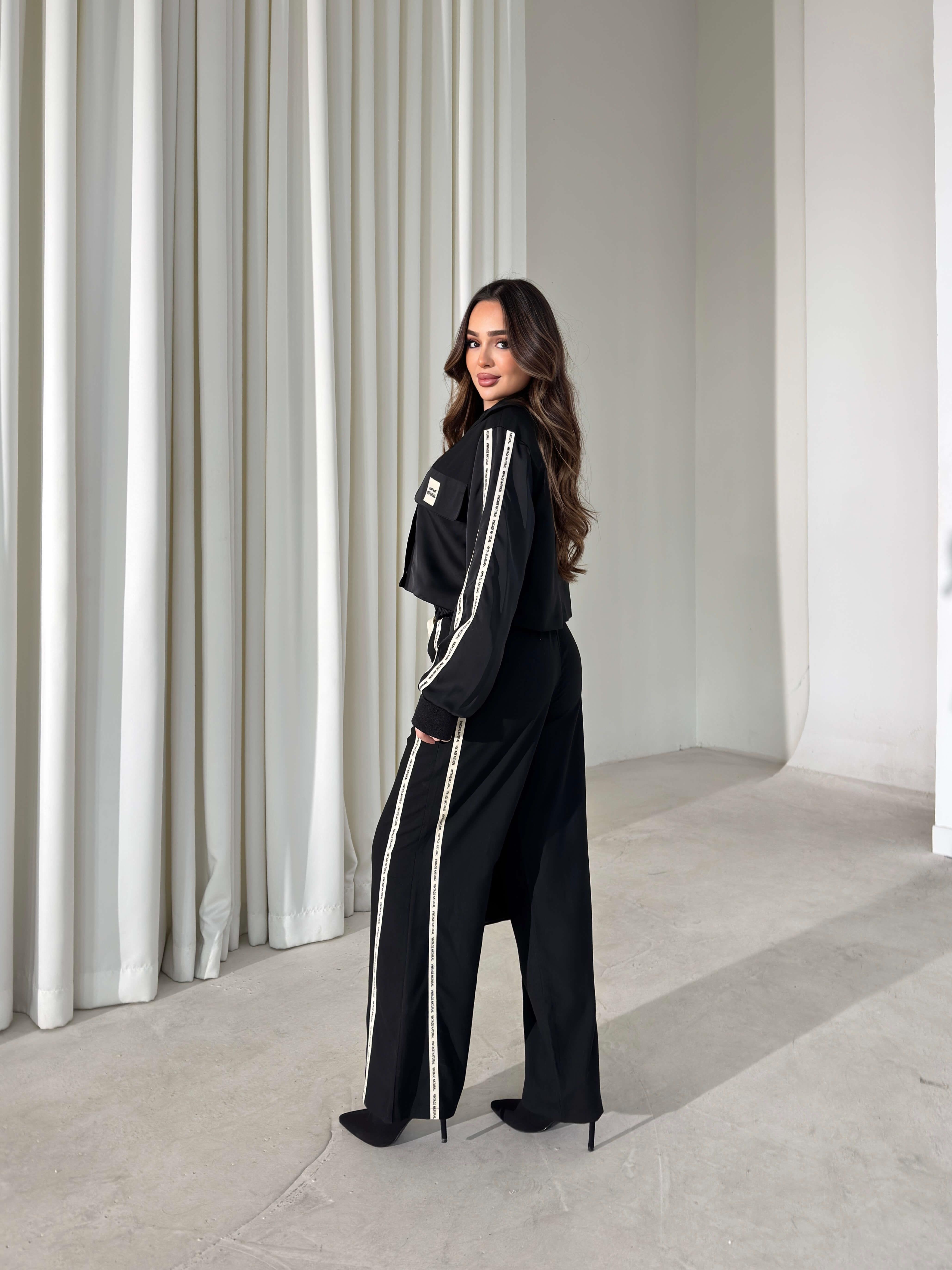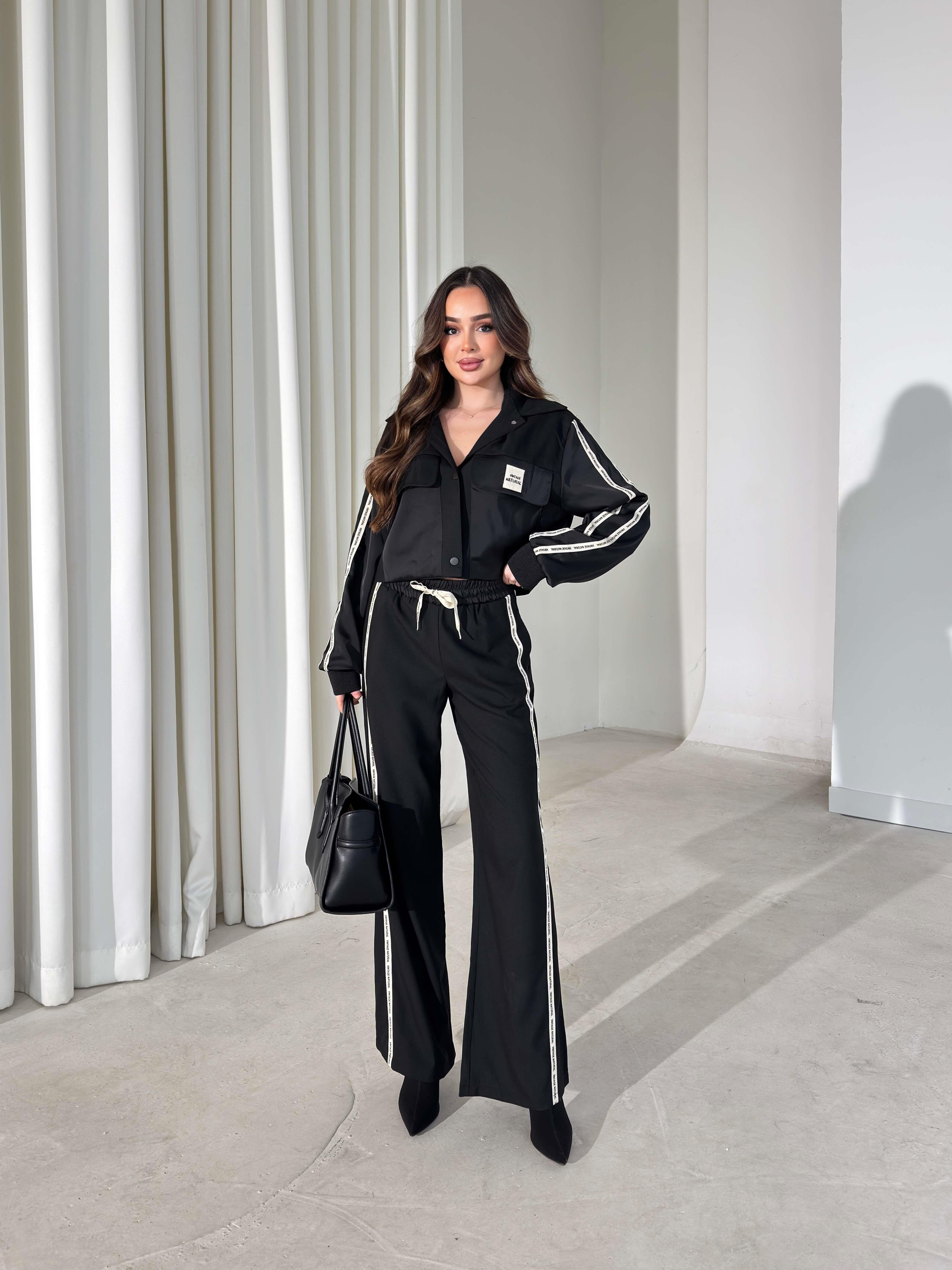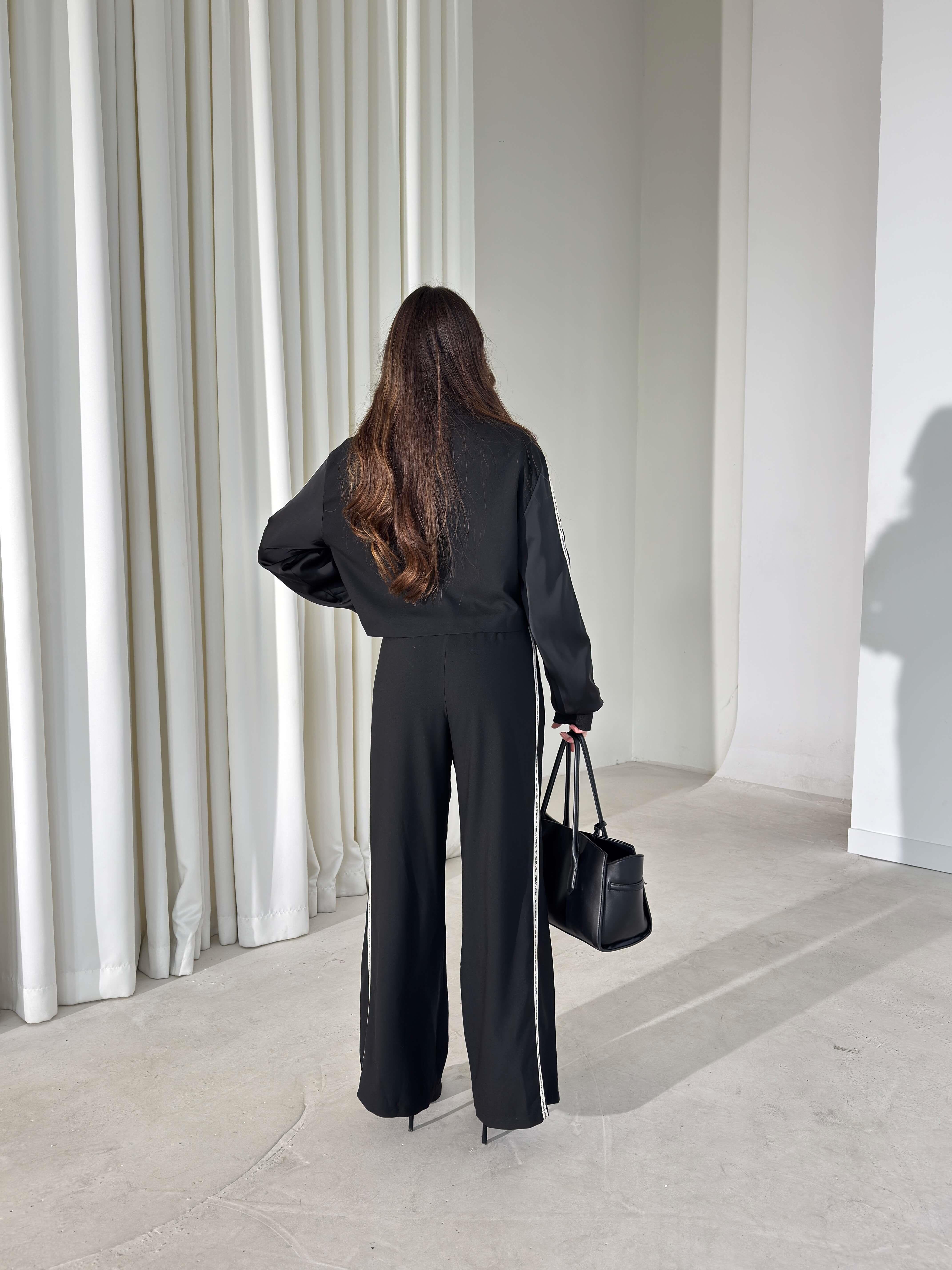 Cepli Yazı Detaylı Garnili Siyah Kadın İkili Takım 26K405 (26K405)