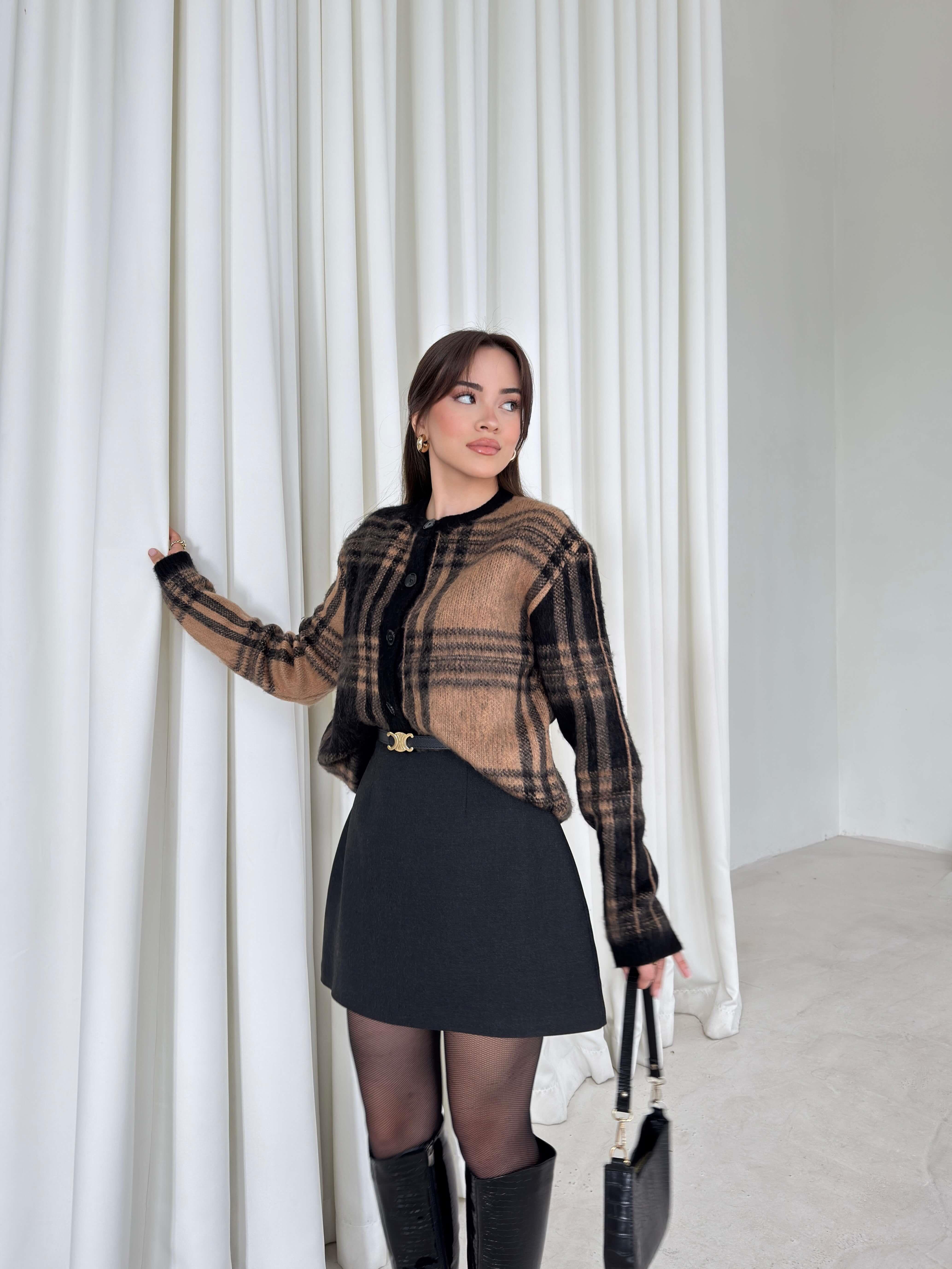 Desenli Önü Düğmeli Alvine Vizon Kadın Triko Hırka 26K206 (26K206)