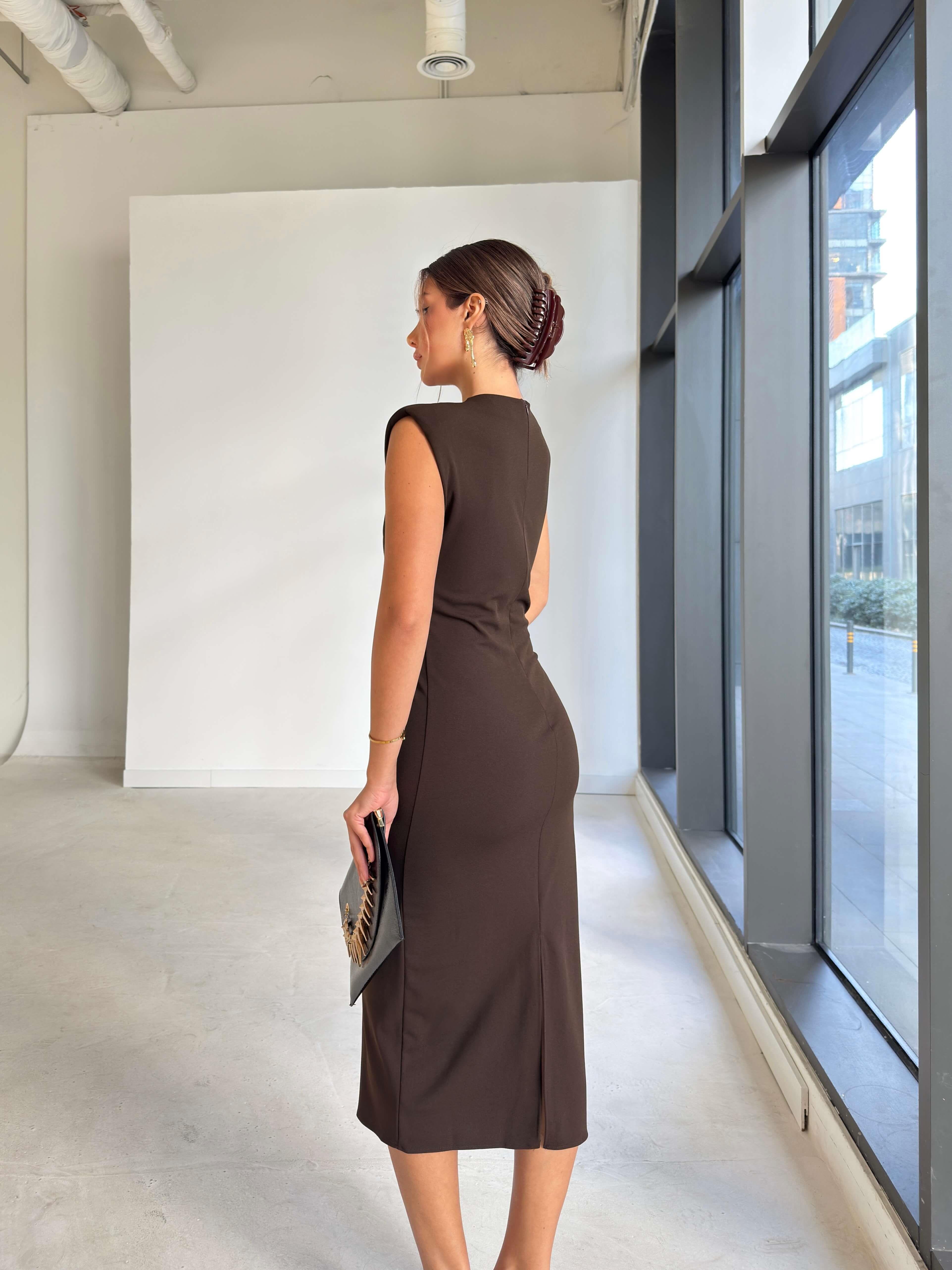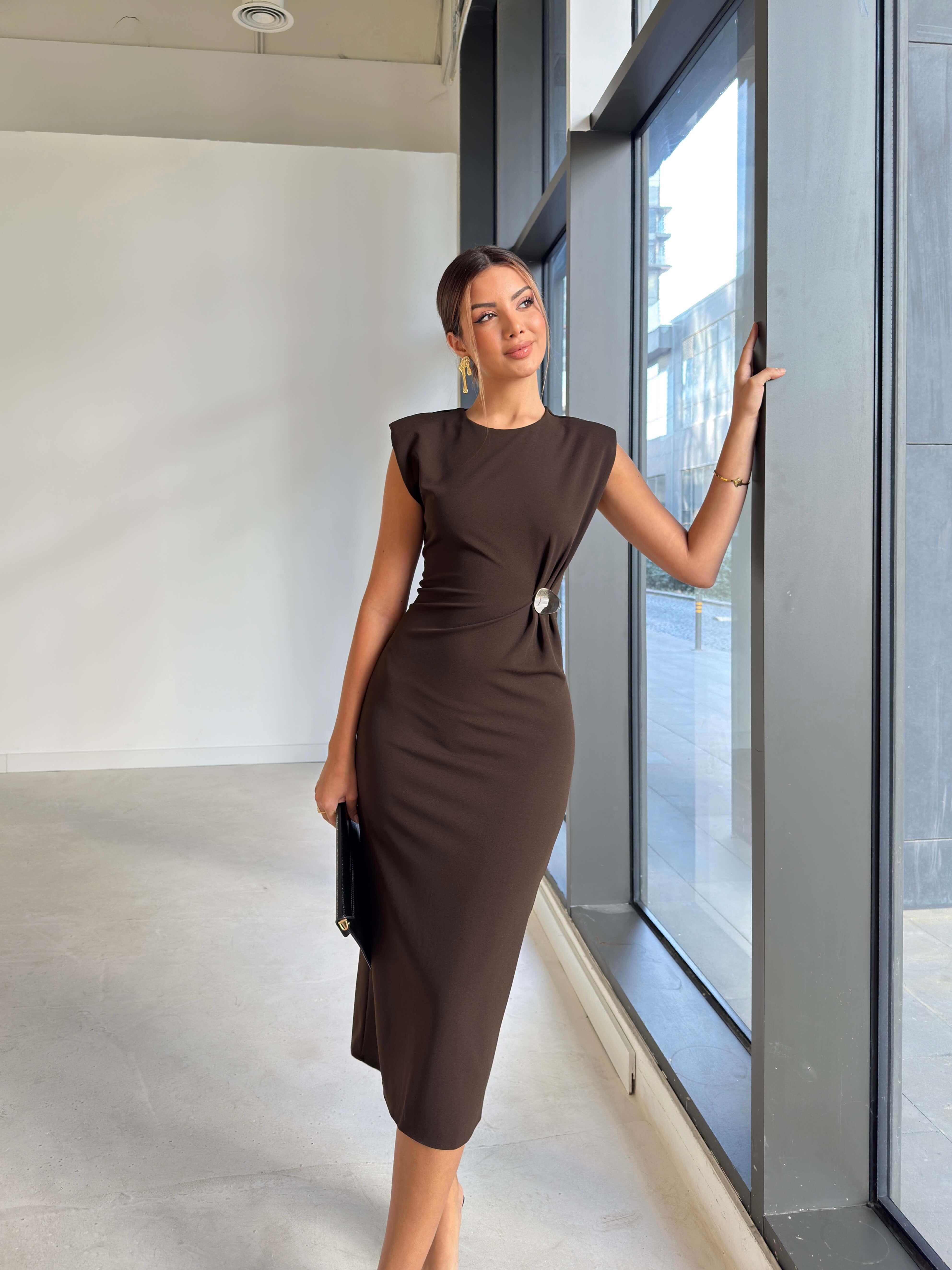 Drape Detaylı Kolsuz Galdia Kahve Kadın Tokalı Elbise 26K184 (26K184)