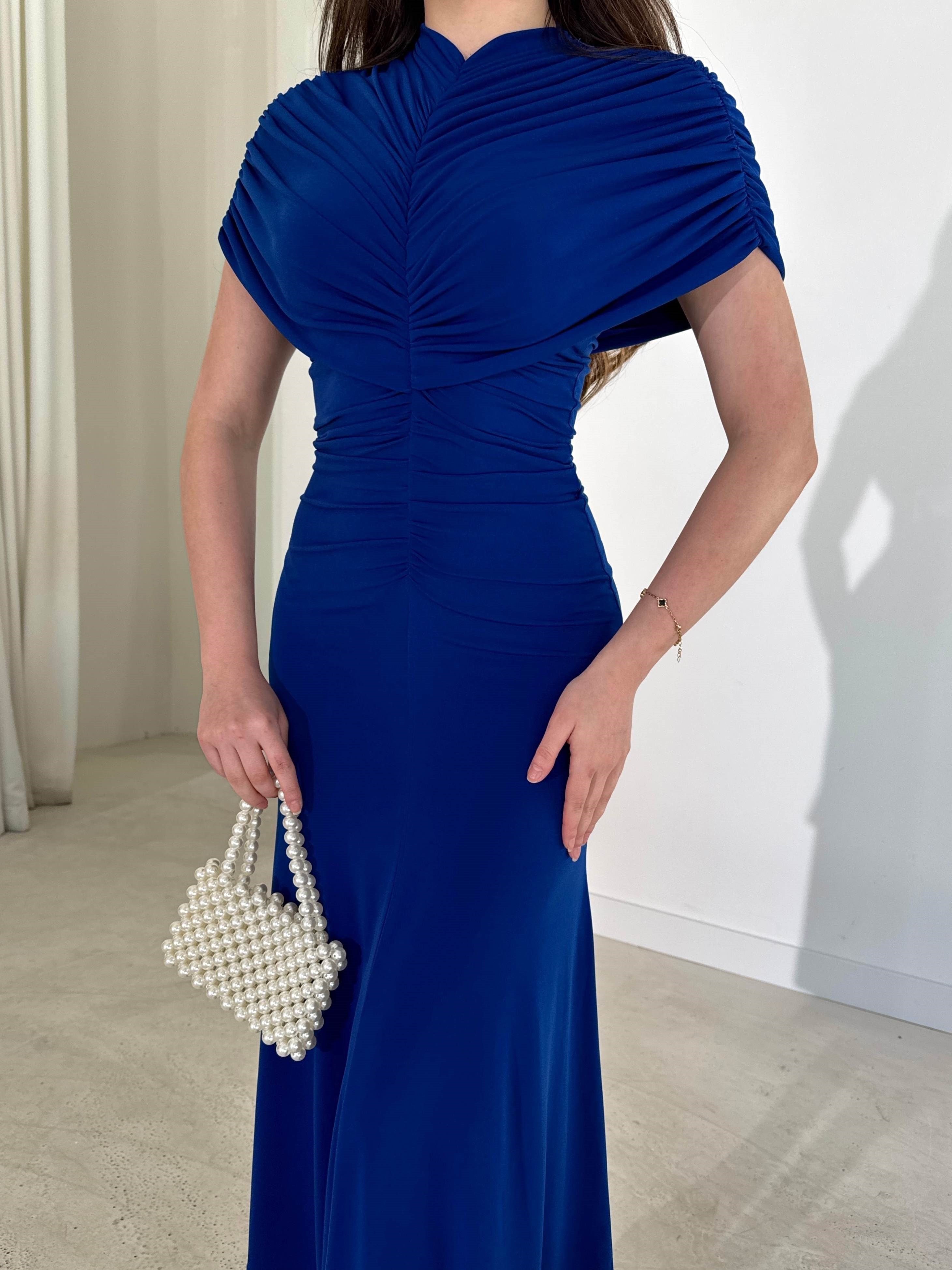Drapeli Pelerin Dikim Viner Saks Kadın Elbise 26Y003 (26Y003)