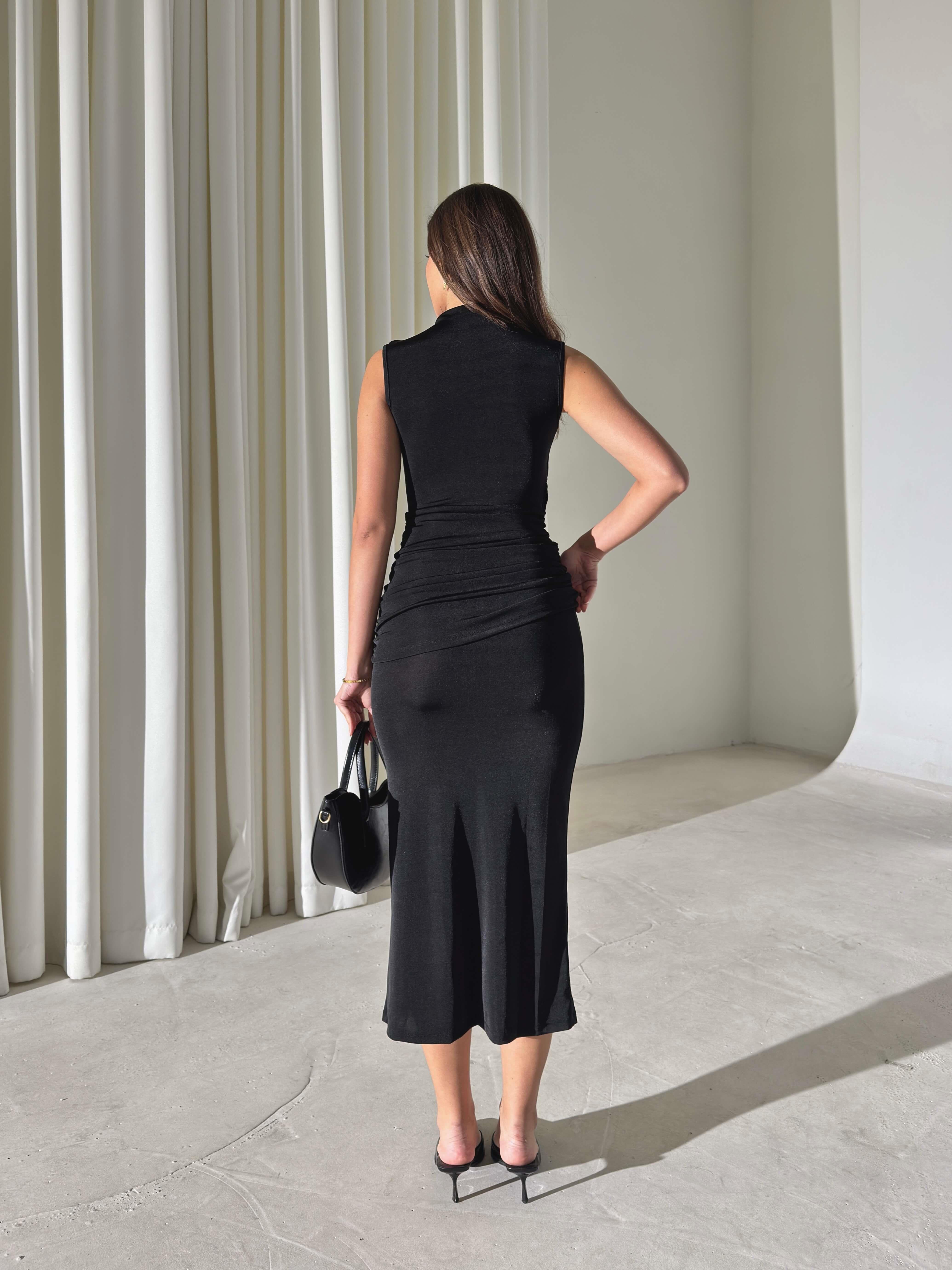 Drapeli Sıfır Kol Elnordi Siyah Kadın Elbise 26Y005 (26Y005)