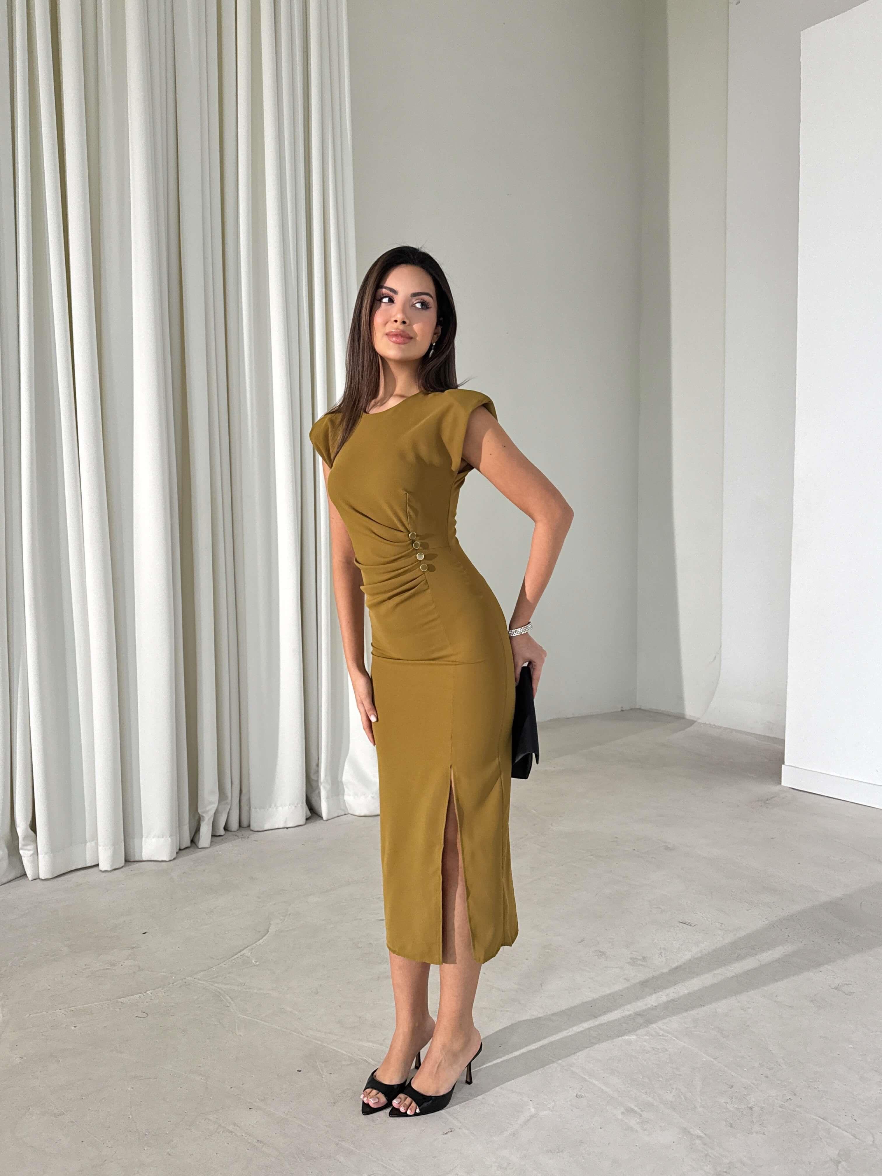 *Yırtmaçlı, Arkası fermuarlı, Düğme detaylı