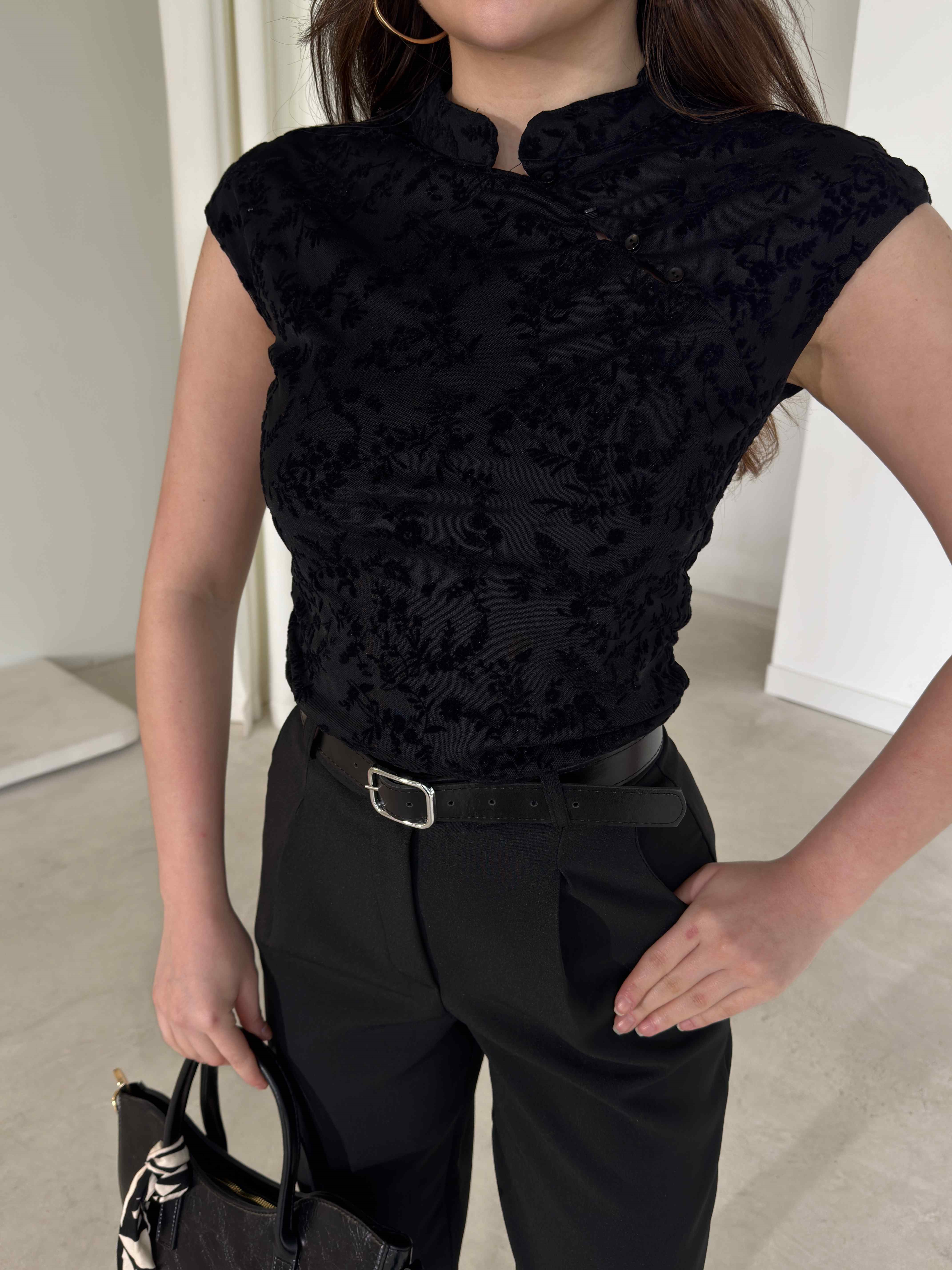 Düğme Detaylı Yanı Drape Detaylı Sıfır Kol Siyah Logan Kadın Bluz 26Y169 (26Y169)