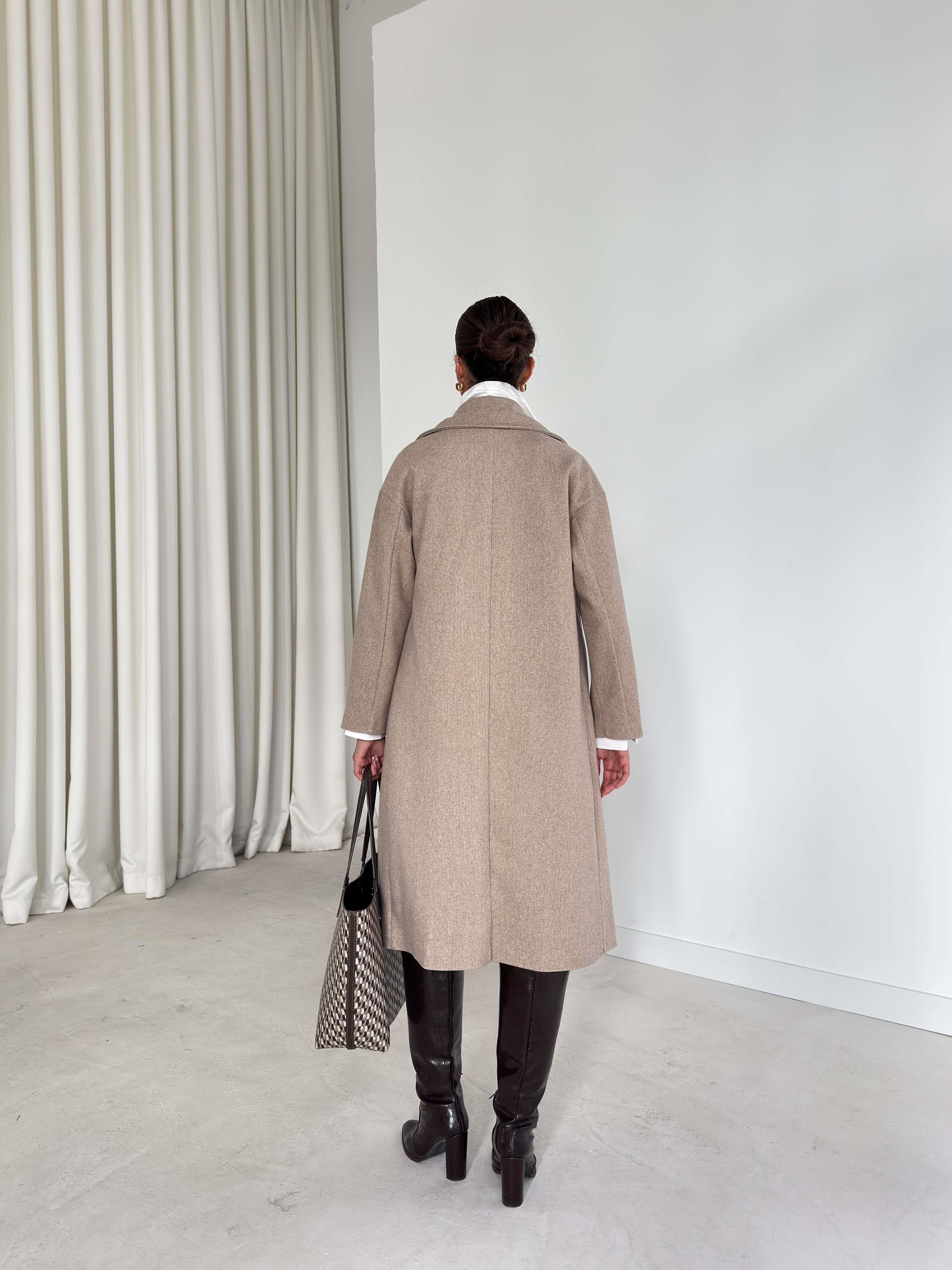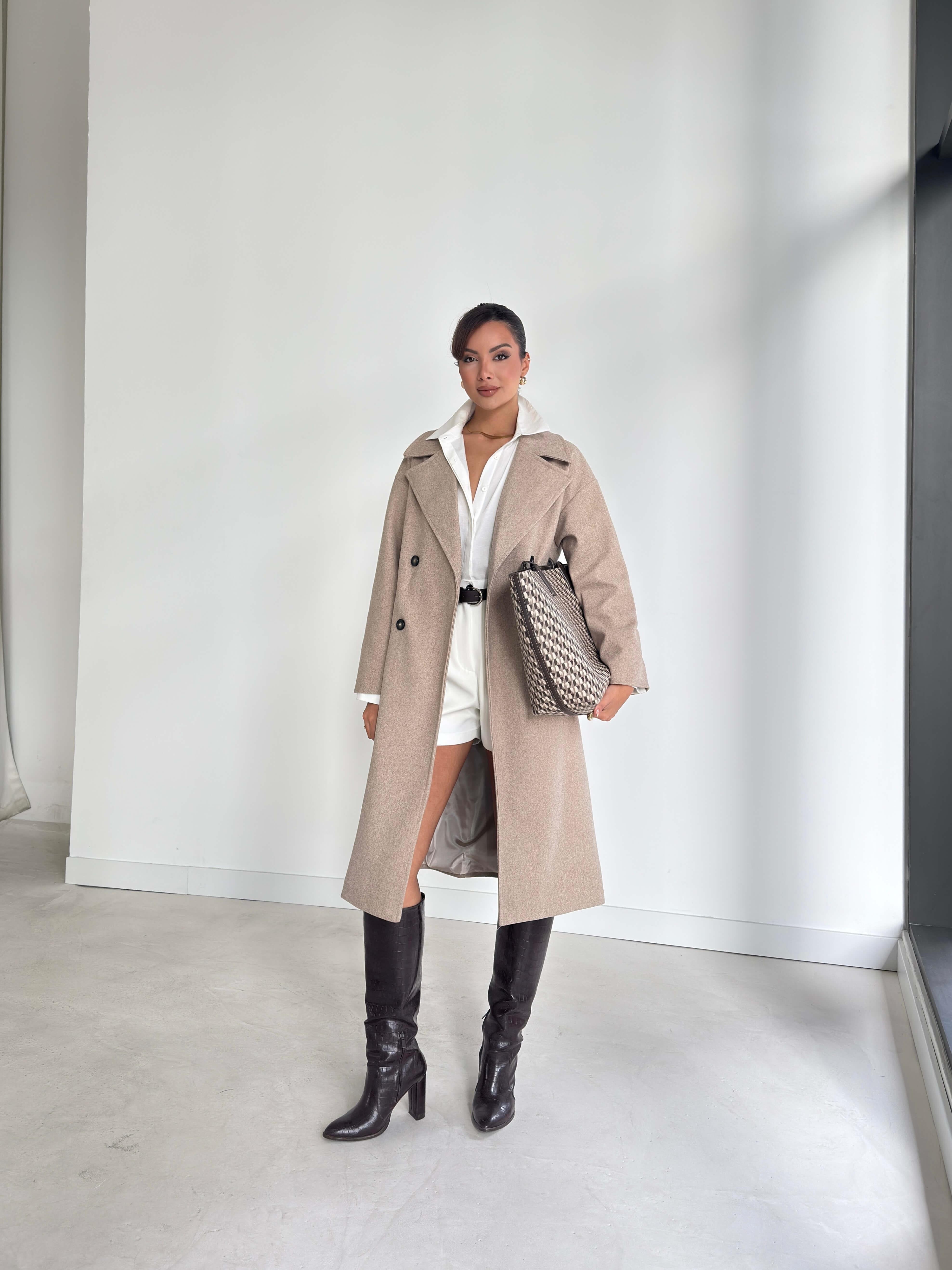 Düşük Omuz Kruvaze Yaka Helida Vizon Kadın Kaban 26K193 (26K193)