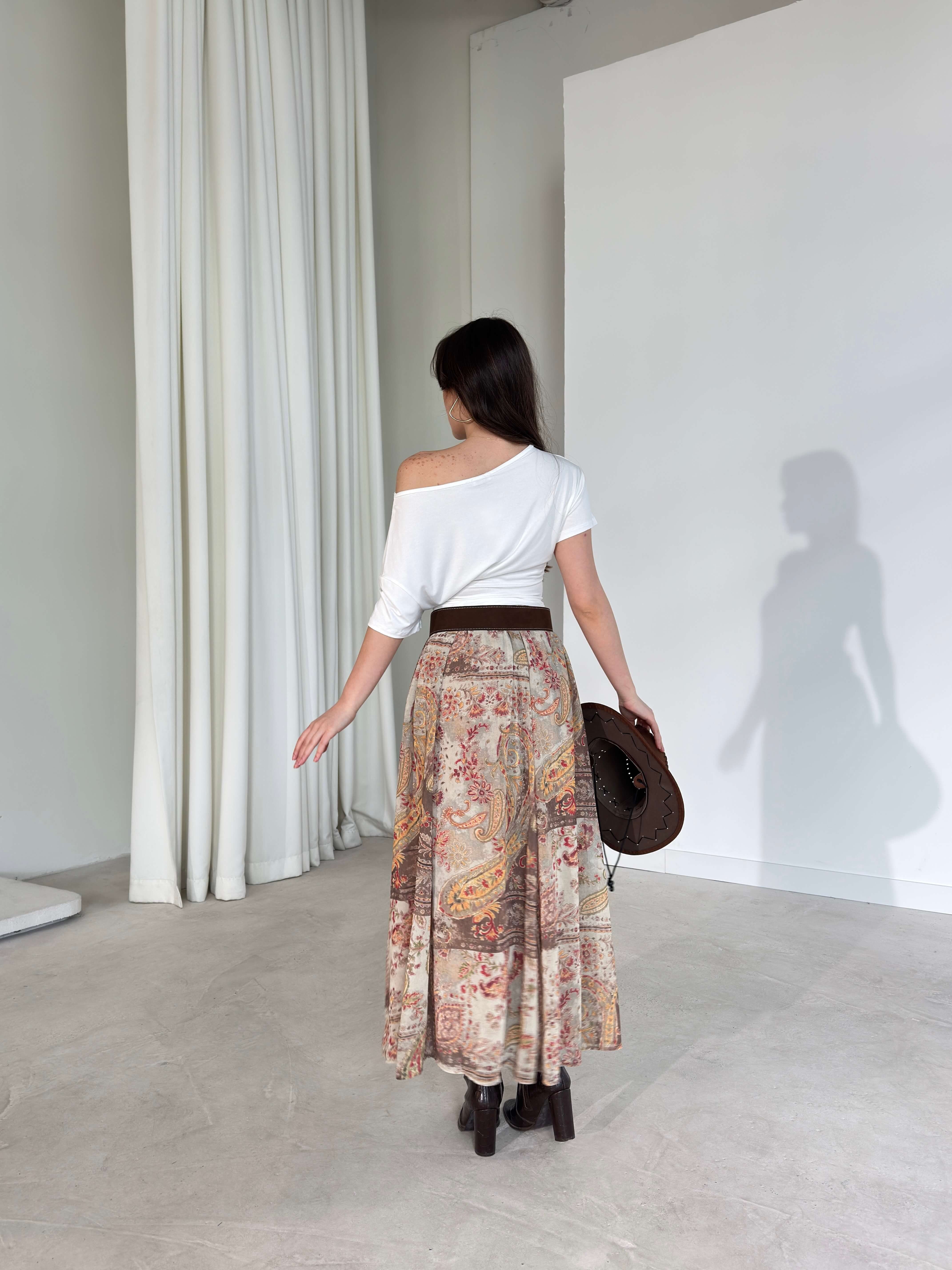 Düşük Omuz Yandan Drapeli Moven Ekru Kadın Bluz 26Y074 (26Y074)