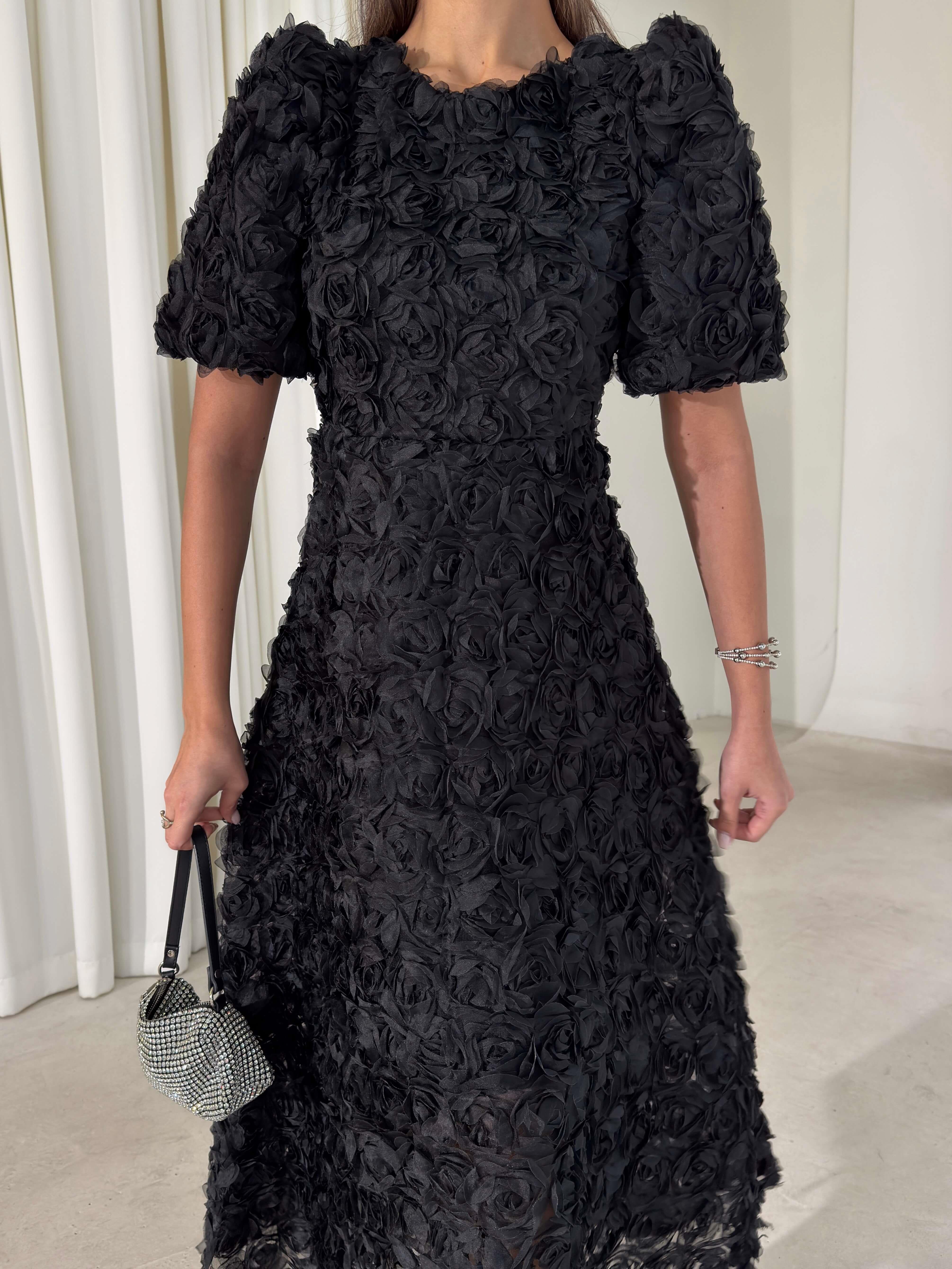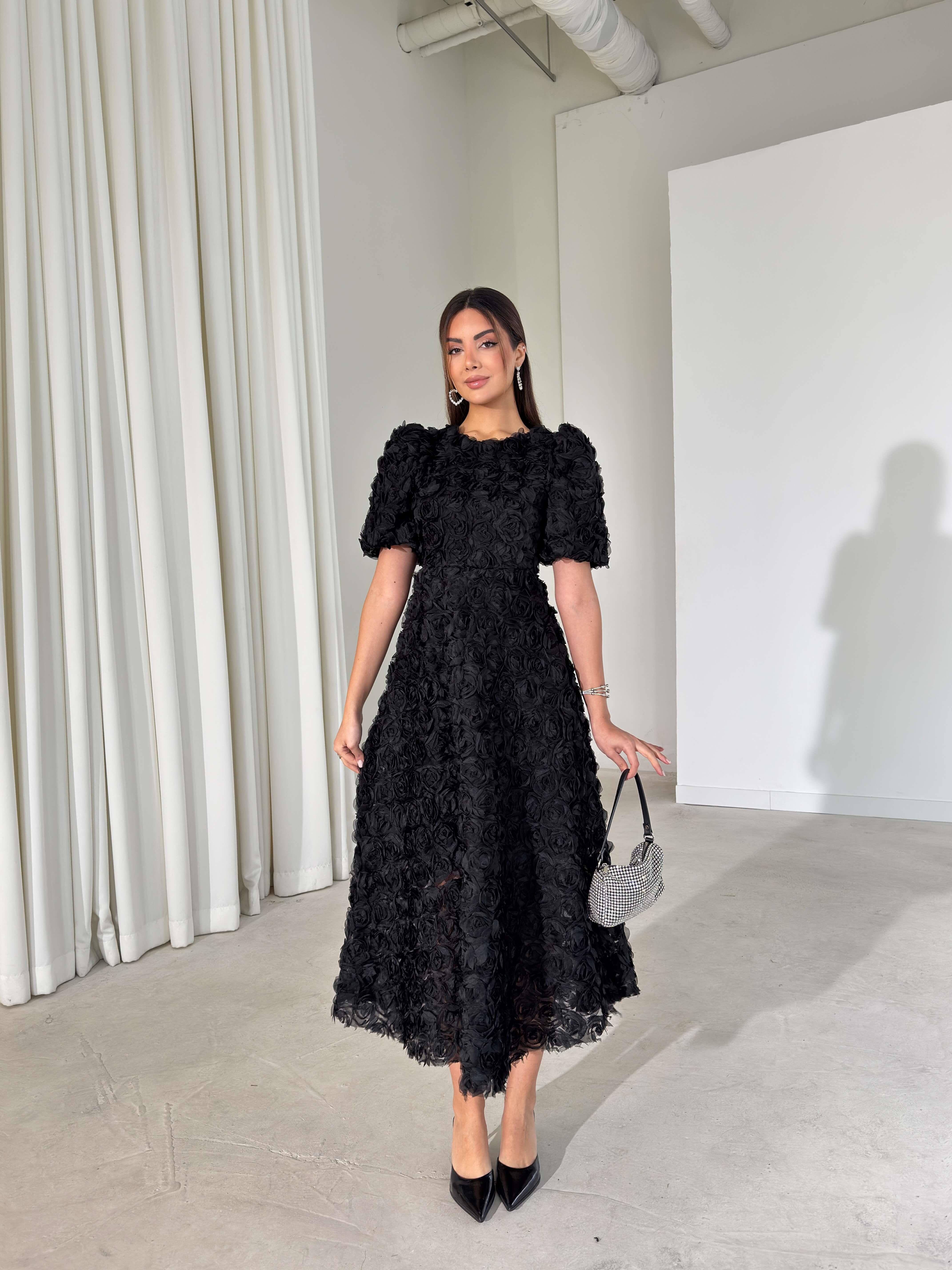 Gül Detaylı Astarlı Tül Ethereal Siyah Kadın Elbise 26K395 (26K395)